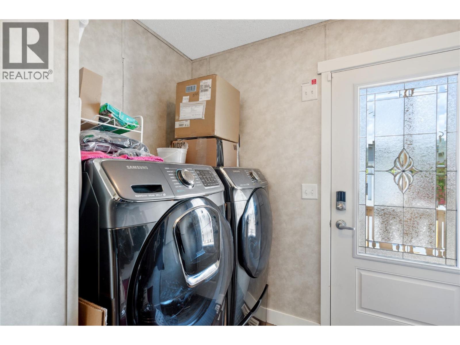 BELOW ASSESSMENT! GREAT LOCATION and very affordable 2017 Double Wide SRI Manufactured Home with 1650 sq feet of living space. Why rent when you can own this 3+ bedrooms and 2 bathrooms modern home on a no thru road in the centrally located and desirable Belaire Estates. This very well maintained and managed park has a rare secure 99 year lease(until 2114). As you walk in to the generous foyer you will notice the open concept living with a large kitchen, dining room, office/den, laundry and a bright living room. The kitchen has beautiful wood cabinets, LOTS of counter space, stainless steel appliances and even has a second built-in oven for hosting those family gatherings. The very spacious primary bedroom has a sitting area and a large 4 piece ensuite. Outside you will enjoy the large covered deck, carport, wheelchair ramp, extra deck for a hot tub, shed and a fenced in maintenance free yard with several planter boxes and irrigation. Water treatment includes a water softener, a built in charcoal filter and reverse osmosis. The house has a newer hot water on demand system and a natural gas forced air furnace along with heat pumps in the rear bedrooms to ensure maximum comfort. Belaire Estates has no age restrictions and is minutes to schools, shopping, breweries, the Rail Trail, beaches, wineries and more. Enjoy modern style living in this well built home with a great location, all at an affordable price! Don't wait, book your showing now! Priced to sell! (id:58842)