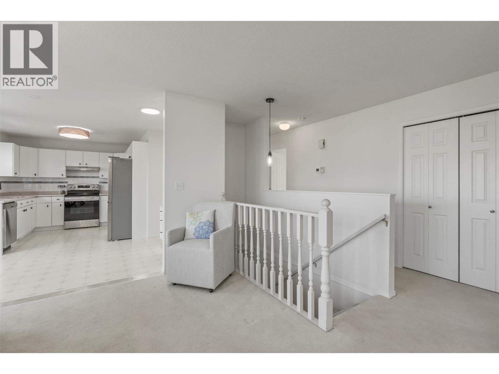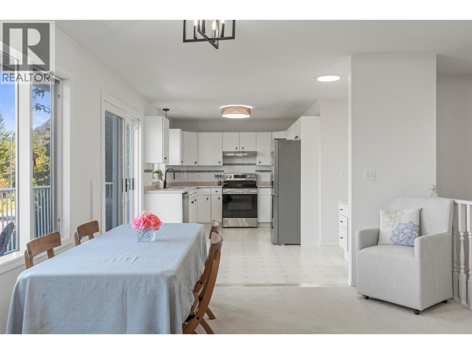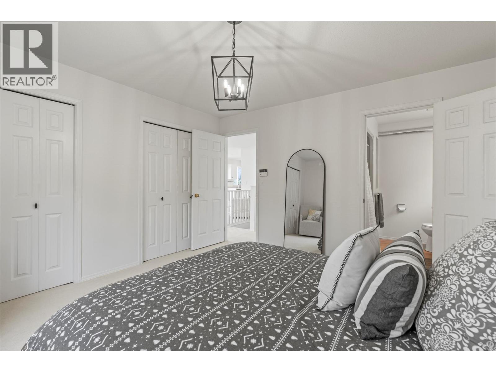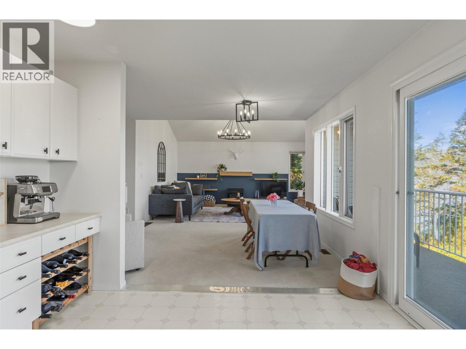 Lakeview, private with a mortgage helper! On a quiet no-through road, this two-story home offers exceptional tranquility and views of Okanagan Lake. The drive-through driveway provides convenience and ample parking, while the attached garage includes additional storage space with shelving. Inside, completely repainted, the upper-level boasts soaring vaulted ceilings and windows that frame the lake views. A cozy gas fireplace with floating shelves and updated lighting creates a warm, inviting atmosphere in the living area. The layout flows into a bright dining space with patio access where you can enjoy a morning coffee then through to the kitchen that features brand new appliances. The primary suite offers a private ensuite, double closet and lake views, while two additional bedrooms, a full bath, and laundry complete this upper level. Step outside to the private backyard, perfect for gardening, entertaining, or simply relaxing in a serene setting. The lower level hosts a self-contained one-bedroom, one-bathroom suite with its own separate entrance, fireplace and private laundry, ideal for guests (can be re-connected to main suite) or as a mortgage helper. Other updates in the home include: water on demand and roof in 2023 and the air conditioner and furnace were replaced in 2021. Located a short drive to Ellison Park, world-class golfing, bike to yacht club and local pub, and only 9 minutes from Vernon’s amenities (id:58842)