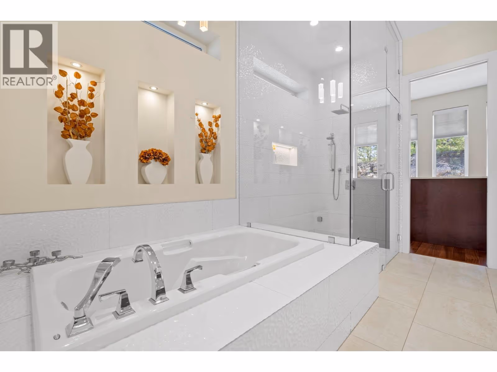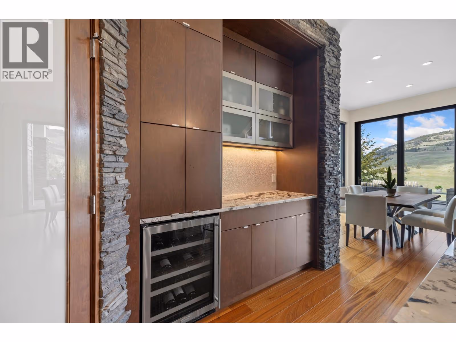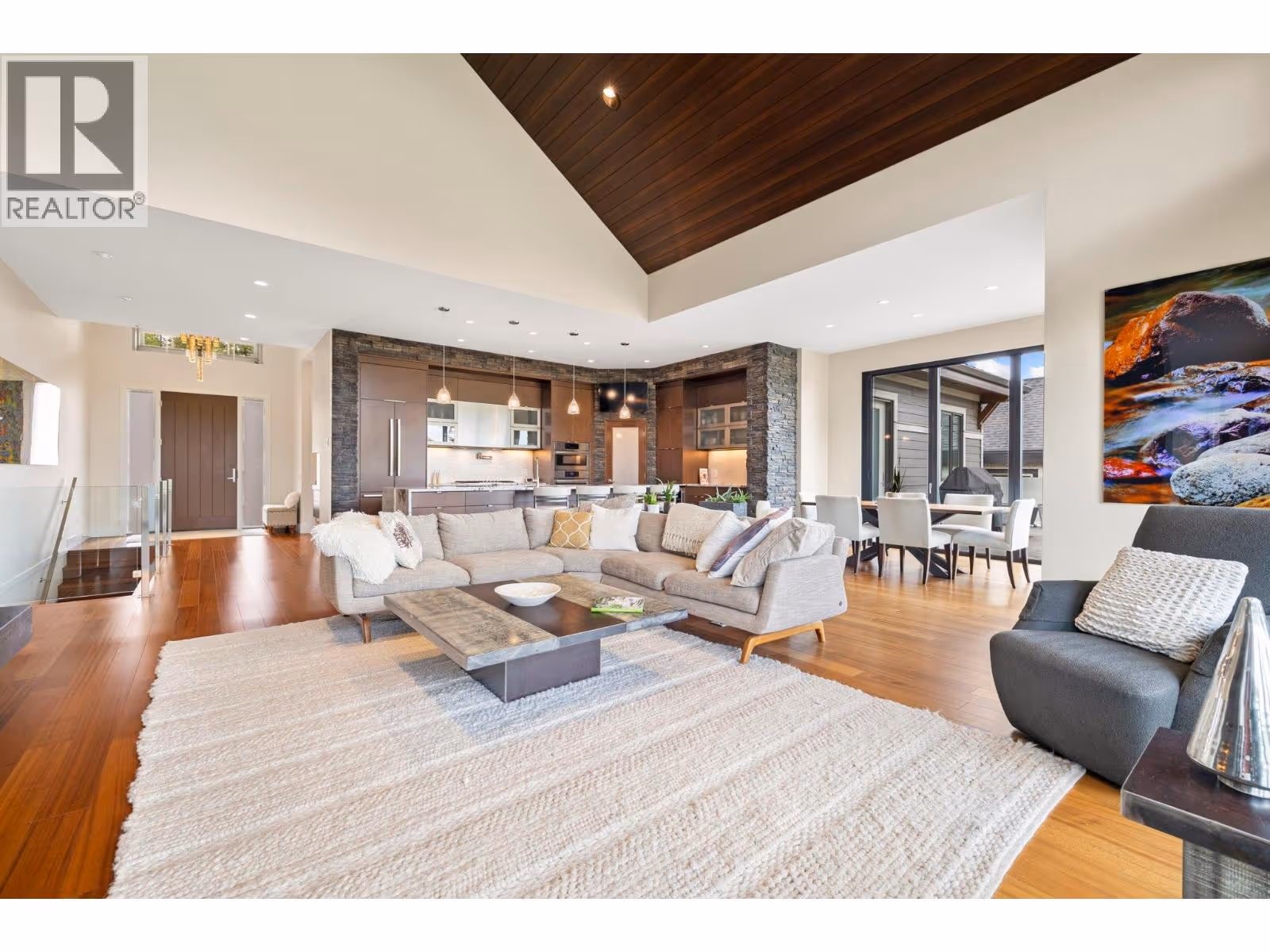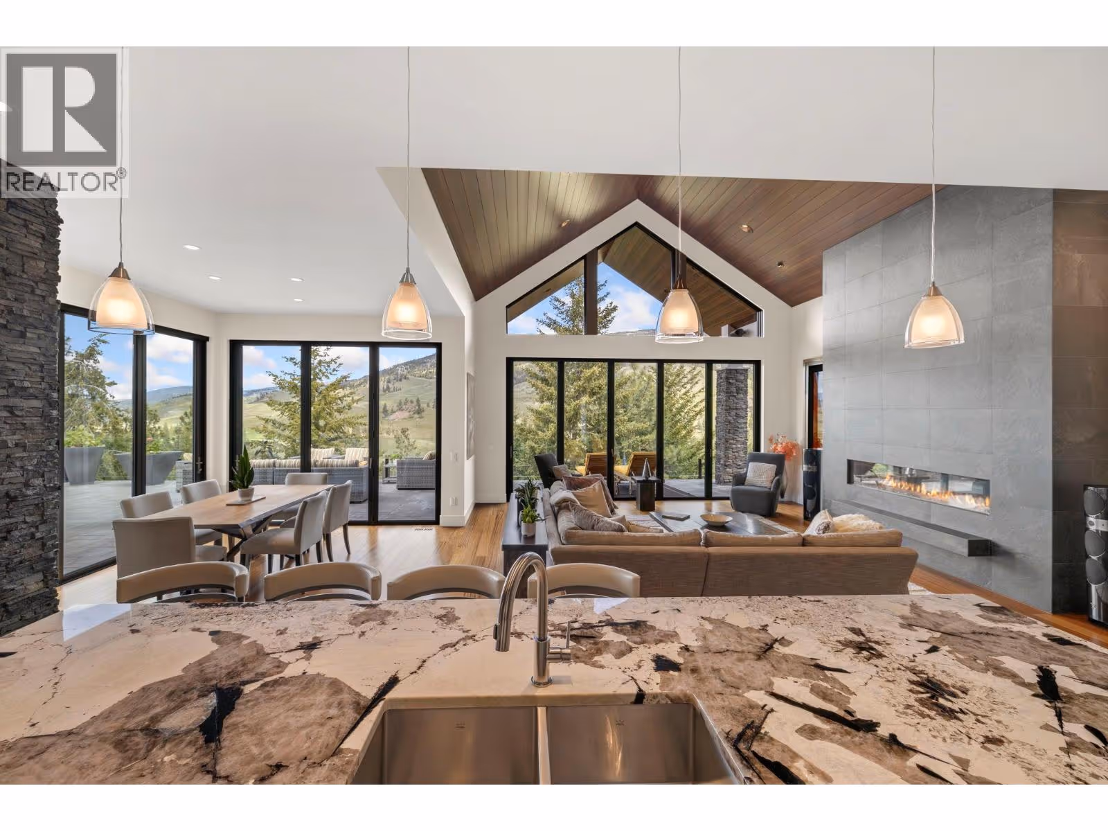 Experience unparalleled luxury and privacy in this 4,000+ sq ft, 4-bed, 3-bath masterpiece overlooking the golf course with sweeping mountain views and no front or rear neighbours. Superior in every detail, this home features spray foam insulation throughout, a fully engineered suspended garage slab with epoxy flooring and EV charging, and oversized decks considerably larger than most in the neighbourhood. Inside, 48 feet of Nano doors seamlessly blend indoor and outdoor living, highlighting vaulted ceilings with a 6-ft HeatnGlo fireplace with dual-vent system to warm the lower level or vent outside, Canadian-made Sapele hardwood, art lighting, and Lutron controls. The chef’s kitchen boasts an oversized granite waterfall island, walk-in pantry, pot filler, coffee station, and under-cabinet lighting. The primary suite offers Nano doors to the deck, a spa-like ensuite with heated floors, steam shower, custom tiling, and a granite-topped walk-in closet island. The lower level is built for entertaining with a theatre featuring a 110"" screen and tiered seating, a wine room, wet bar with dishwasher, office with barn doors, and walk-out to a private covered patio with hot tub, frameless glass railings, privacy screens, and outdoor speakers. Dual-zone HVAC, cork flooring, surround sound, heated bathroom floors, irrigation system, ultra-quiet garage openers, a water feature, and art lighting throughout complete this one-of-a-kind residence. (id:58842)