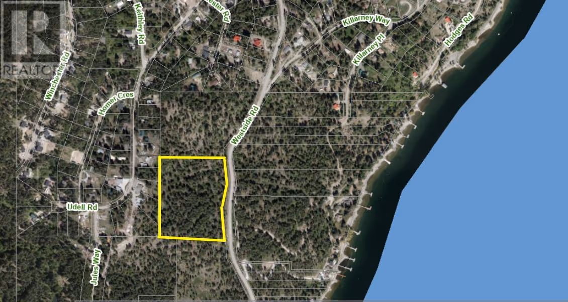 PANORAMIC LAKE View TEN acres with EASY ACCESS to Westside Road. . Build your HOME + BUSINESS, zoning allows WINERY, CIDERY, Agriculture, Accessory Home, Stables, Greenhouses etc. Mostly GENTLE SLOPES for easy build & able to make full use of all land. . . . .. . Zoning now includes a Secondary Suite up to 1076 sq ft within any home. . . Two previous wells marked, one shows above aquifer on GIS mapping. . . Just South of Killiney Beach with beautiful public beach, boat launch, community hall. Westshore Park 5 minutes North. 5 minutes drive from Fintry Provincial Park & campground. Food, drinks, groceries & entertainment at nearby La Casa Resort. Grocery Delivery available from Save-On-Foods. Burned trees removed. (id:58842)