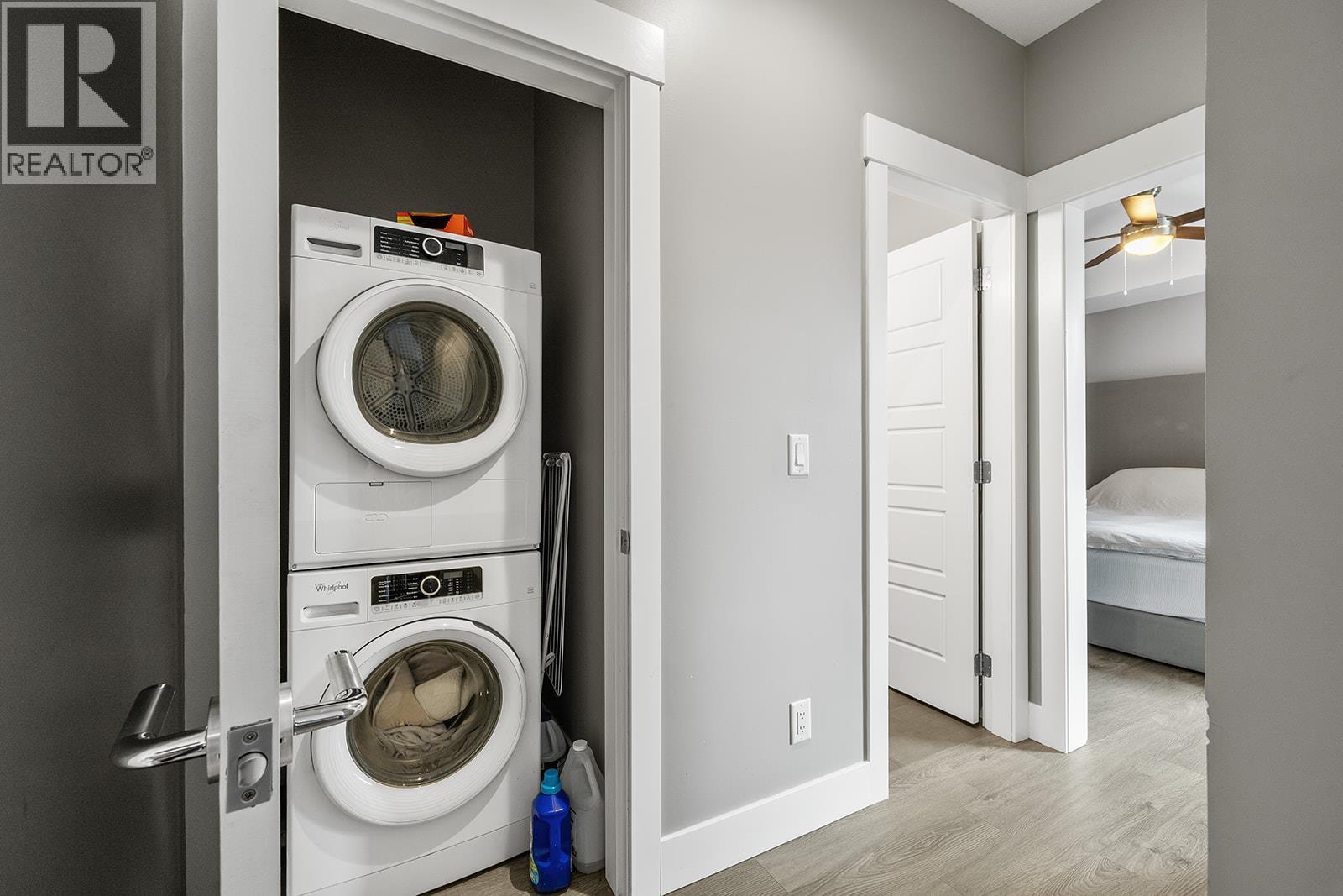 One of only 8 larger floorplans in this newer, modern building—this is a rare opportunity to secure extra space in a prime central location. Proudly offered by the original owner, this home has been gently lived in part-time and shows beautifully. The layout is functional and open, with generous room sizes throughout. Featuring 2 bedrooms (second bedroom includes a full closet, no window) and 2 full bathrooms, the space is ideal for a variety of living setups. The south-facing exposure brings in great natural light, complemented by mountain views that add to the overall feel. Thoughtful upgrades include additional in-suite storage and a storage locker. 2 parking stalls is also a rare find at this price point! Residents enjoy access to a well-equipped fitness room, social/games room, and outdoor space with BBQs—everything you need, right at home. Step outside and you’re minutes to downtown, beaches, parks, shopping, and dining. Walk or bike with ease—Ethel Street offers direct access to the Rail Trail, and you’re close to Capri Centre, Orchard Park, transit, and the Bennett Bridge. Pet-friendly (2 cats or dogs up to 25lbs, no dangerous breeds). (id:58842)