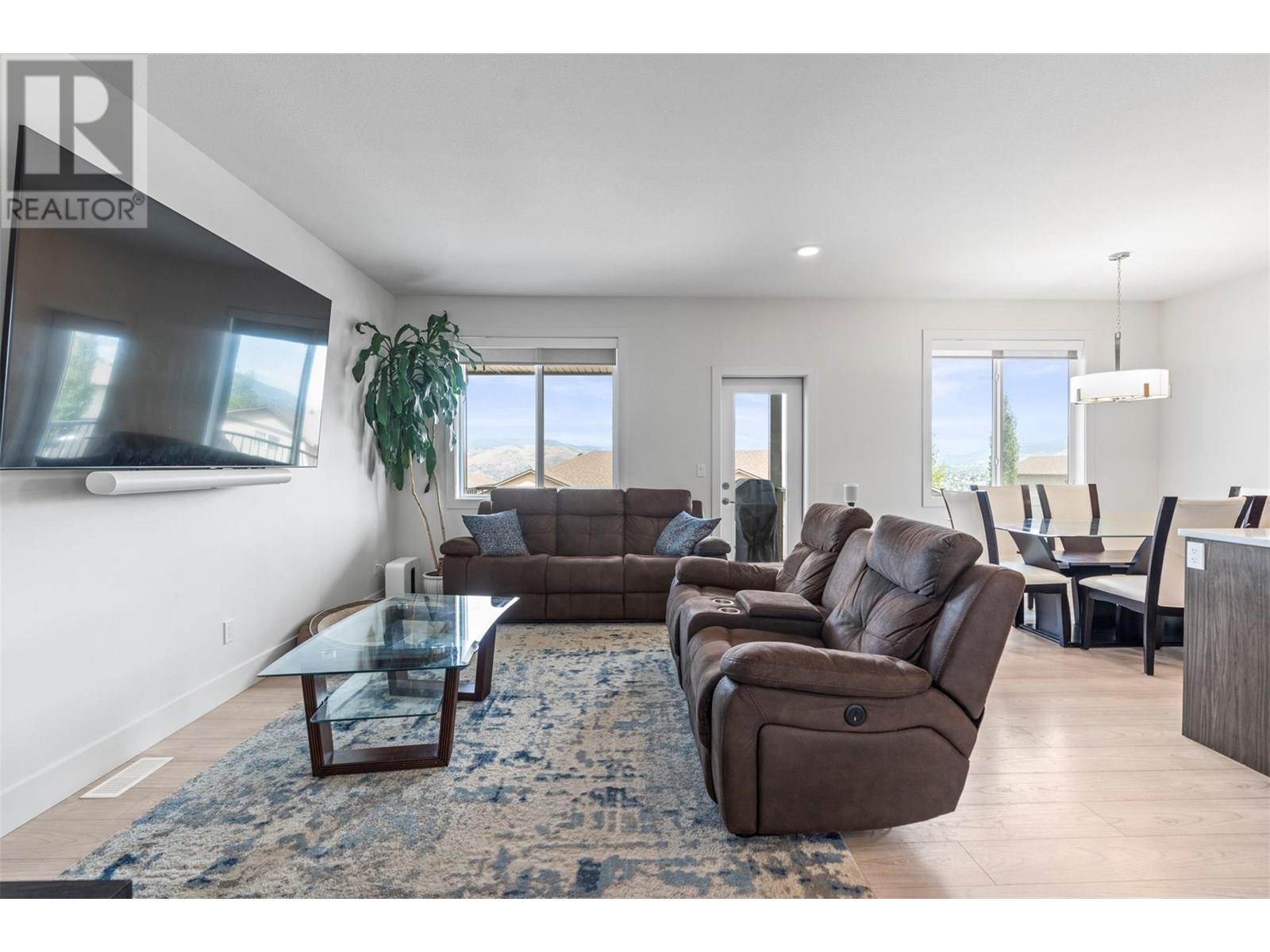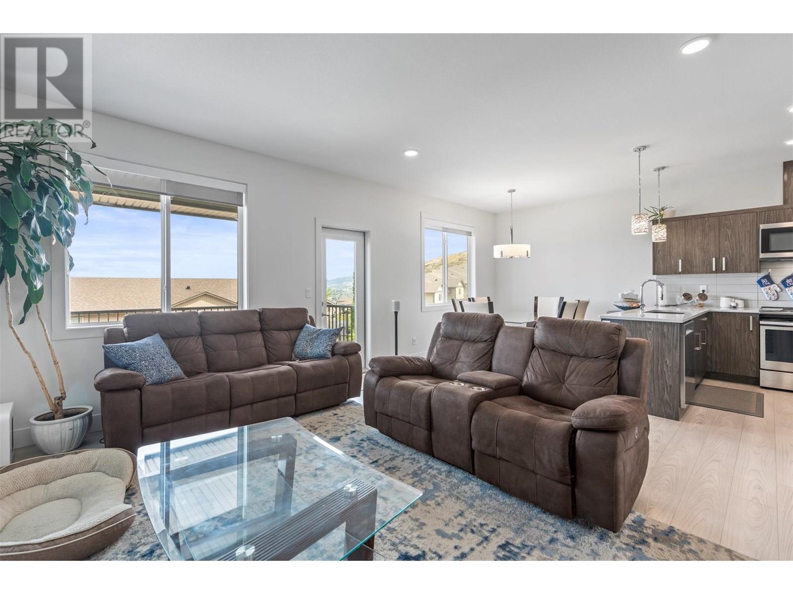 Stylish Townhome with views in The Vue on Middleton Mountain. Looking for space, style, and convenience? This rare in the complex 4-bedroom, 3.5-bathroom townhome has it all. Set in a peaceful, well-kept strata on Middleton Mountain with beautiful views of the city below, and access to nature with the Middleton walking trail system just steps away. The main floor offers open-concept living with a bright kitchen featuring stainless steel appliances and plenty of counter space. The dining and living areas flow seamlessly to the covered deck—perfect for morning coffee and evening sunsets. Upstairs, you’ll find a generous primary suite with a walk-in closet and 4-piece ensuite, along with two more bedrooms, a full bath, and a conveniently located laundry room. The finished basement includes a fourth bedroom, family room, another full bath, and walk-out access to a cozy, private patio. Pet-friendly strata, great neighborhood, and unbeatable access to walking trails, golf, Kalamalka Lake, shops, Hillview Elementary and VSS High School. A great find in a great location—come see it for yourself! Virtual Tour is available for your viewing convenience. (id:58842)