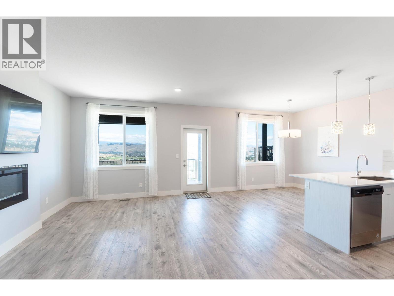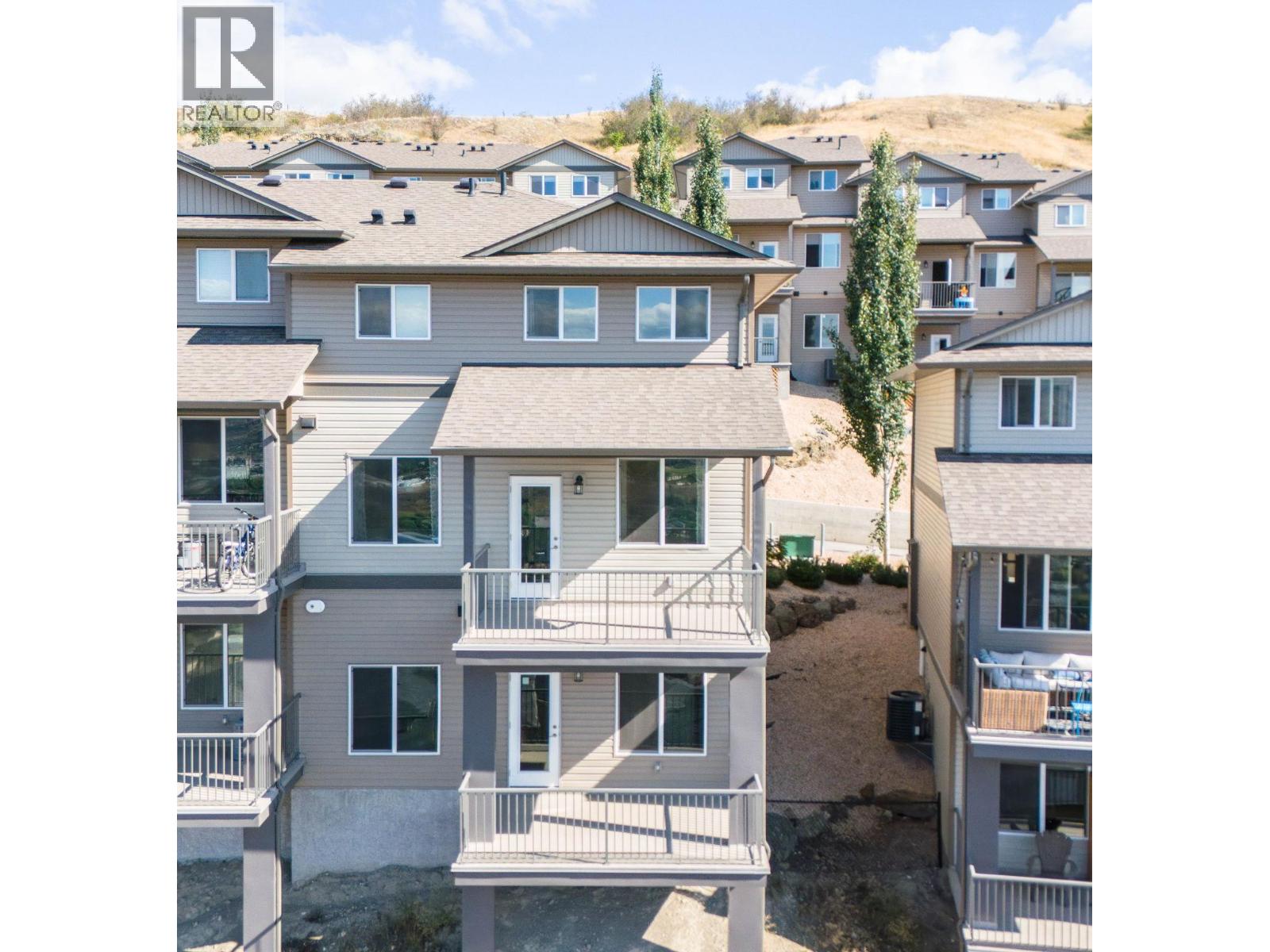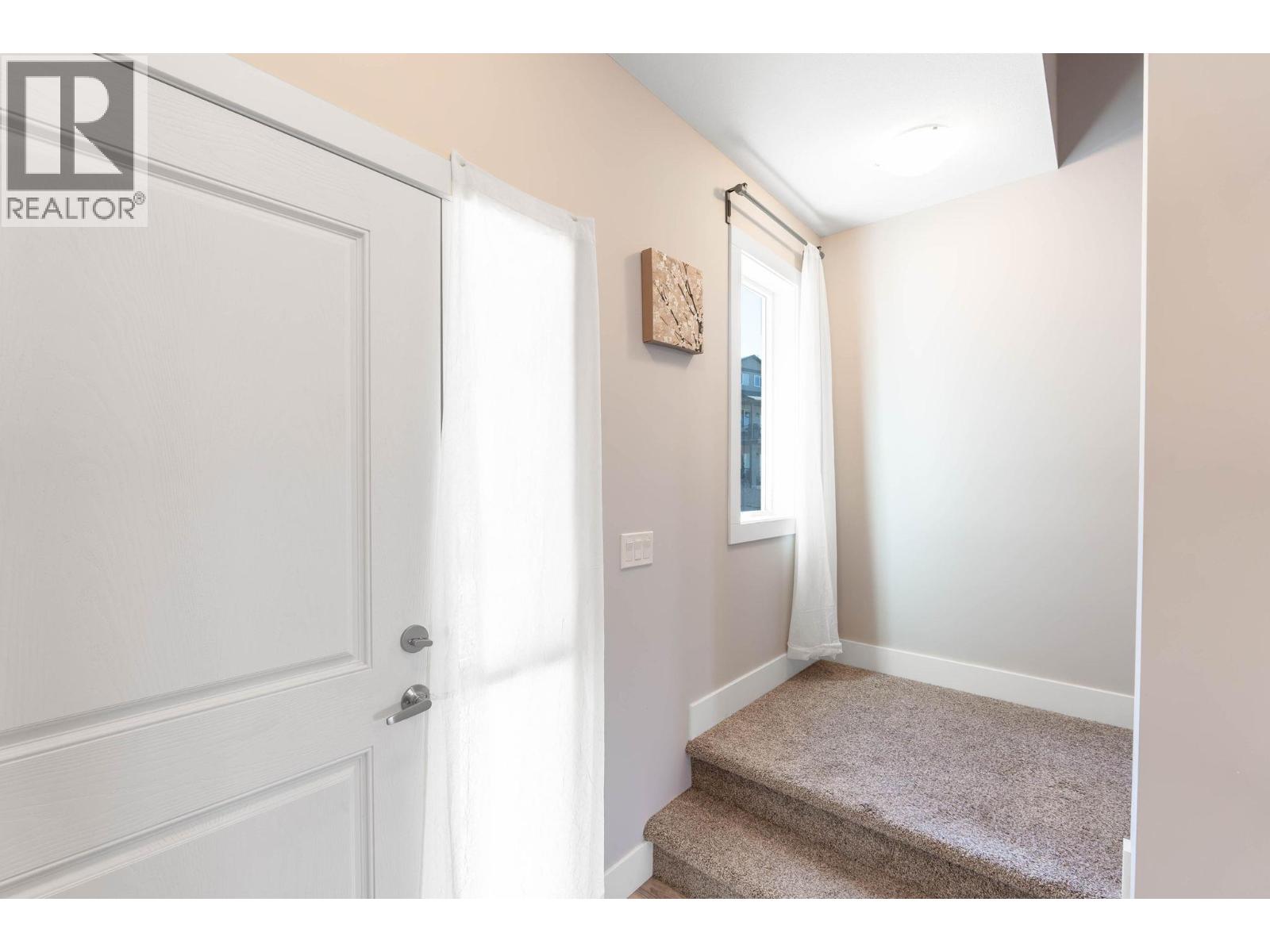 Immaculate 3-bedroom, 3-bath end unit townhome with spectacular valley, mountain, and Swan Lake views. Only used 1–2 months per year, this home is in like-new condition. The bright, open-concept main floor features a modern kitchen with stone countertops, premium Whirlpool appliances, soft-close cabinets, and a large pantry. Enjoy a spacious living and dining area that opens to a large covered deck—perfect for year-round entertaining. Upstairs includes 3 generous bedrooms, including a primary suite with walk-in closet and ensuite, plus a full bathroom and laundry room. Extra-wide staircase enhances accessibility. The lower level offers 600 sq ft of undeveloped space with roughed-in plumbing for a 4th bathroom and a covered patio. Single-car attached garage with room for 2 more vehicles in the driveway. Walking distance to Middleton Mountain Park and Morningview Playground. Minutes from Kalamalka Lake, Vernon Golf & Country Club, and downtown amenities. (id:58842)