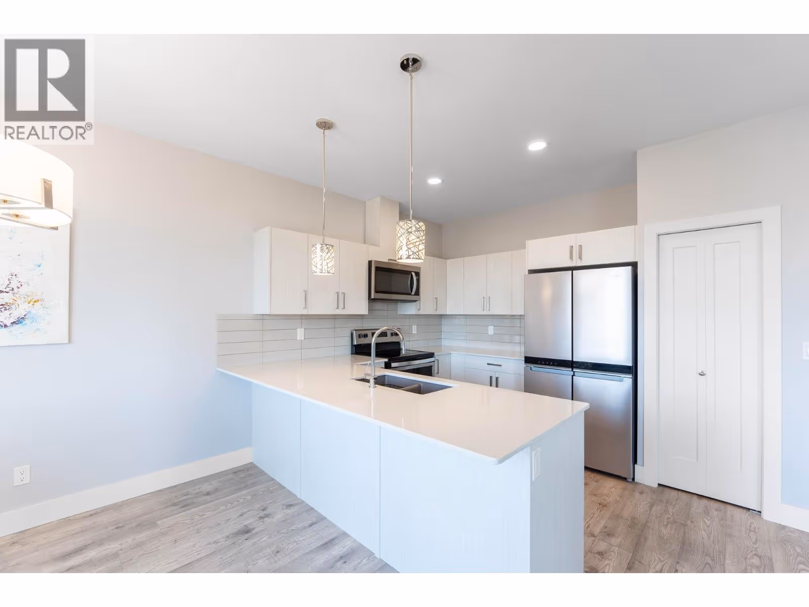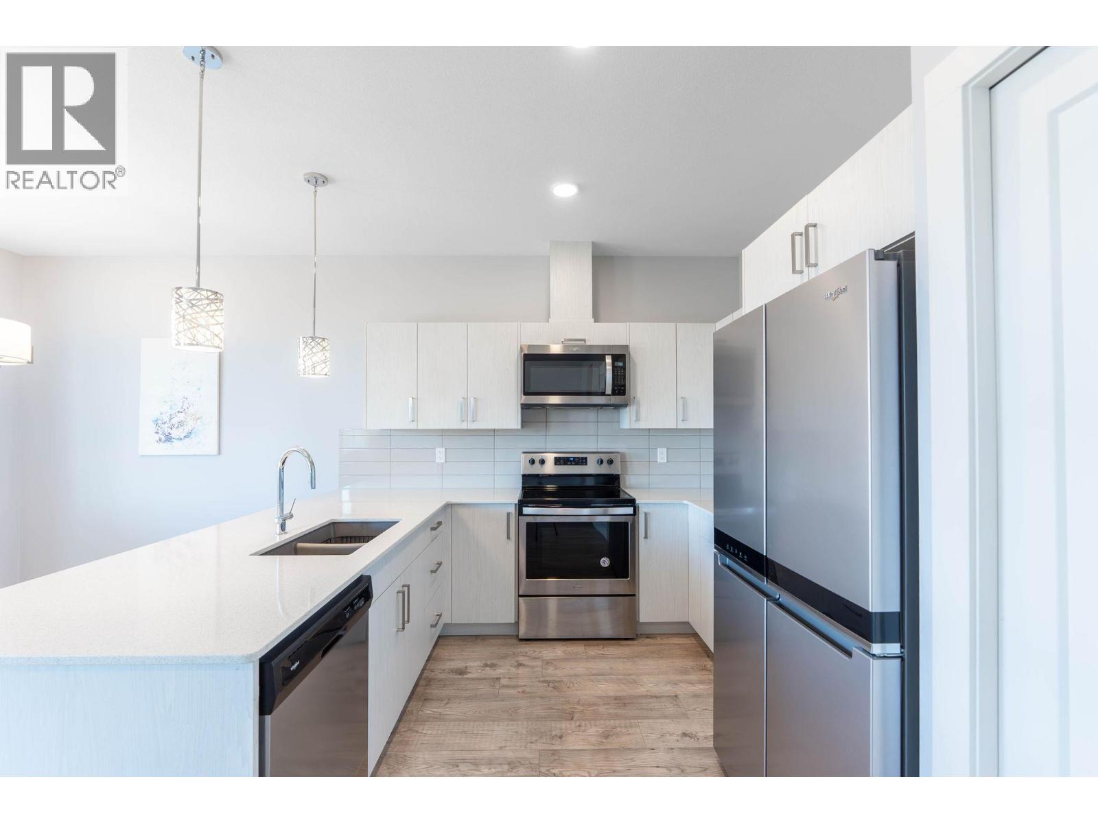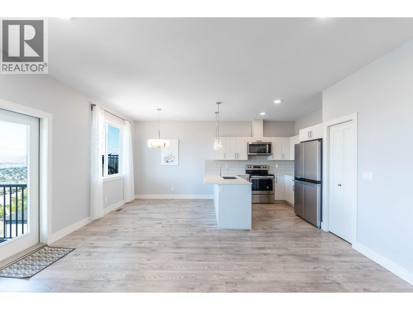 Immaculate 3-bedroom, 3-bath end unit townhome with spectacular valley, mountain, and Swan Lake views. Only used 1–2 months per year, this home is in like-new condition. The bright, open-concept main floor features a modern kitchen with stone countertops, premium Whirlpool appliances, soft-close cabinets, and a large pantry. Enjoy a spacious living and dining area that opens to a large covered deck—perfect for year-round entertaining. Upstairs includes 3 generous bedrooms, including a primary suite with walk-in closet and ensuite, plus a full bathroom and laundry room. Extra-wide staircase enhances accessibility. The lower level offers 600 sq ft of undeveloped space with roughed-in plumbing for a 4th bathroom and a covered patio. Single-car attached garage with room for 2 more vehicles in the driveway. Walking distance to Middleton Mountain Park and Morningview Playground. Minutes from Kalamalka Lake, Vernon Golf & Country Club, and downtown amenities. (id:58842)