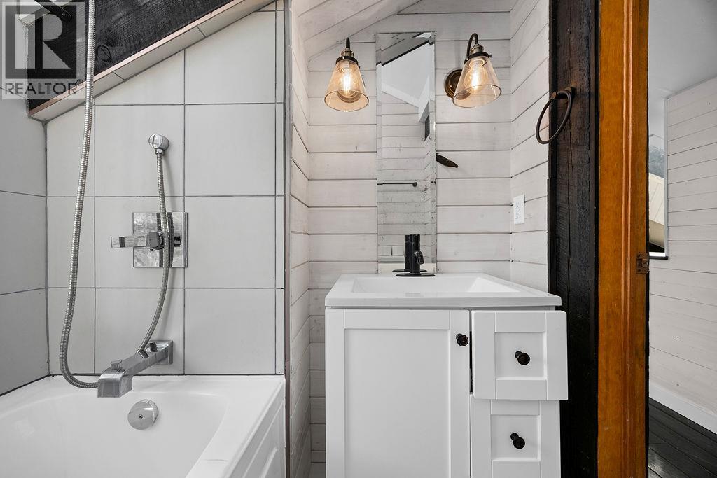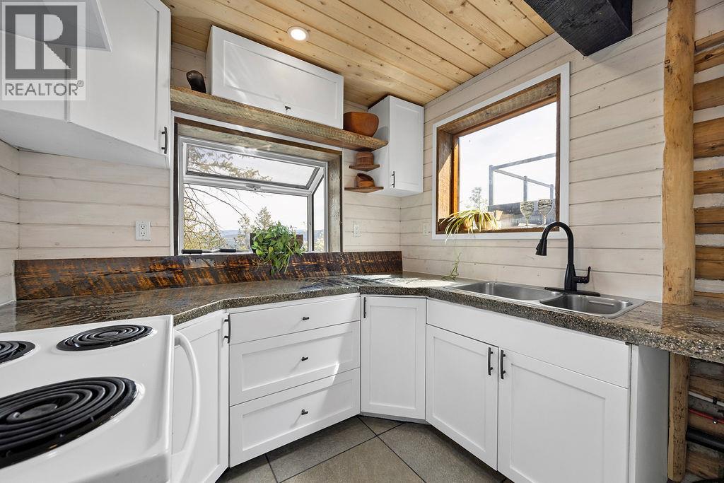 Open House Sunday, April 26, 12-3pm. YES... You read the price right! MILLION DOLLAR VIEWS, absolutely stunning and unbelievable from the deck, there are a couple comfy chairs for you to really soak it in if you want, no wine supplied. One of the coolest properties you will see for a very long time, it feels like Neil Young should be writing songs here on a regular basis. The coziest post and beam/ log cabin that will instantly take you back to the simple, easy times. Real 3/4 ash hardwood floors with Italian tile entrance and kitchen, concrete counter tops with fern inlay pattern, ultra cute live edge sitting bar/island, and the cutest little wood stove that fits so perfectly for those cozy nights. One of a kind fir/stained glass door off the living room to the private lower deck for those morning coffees overlooking the lake, open vaulted ceiling to upper level with custom funky juniper hand rail that leads to you the upper floor with small office space/family room, bright open bedroom, king sized bed and 4 piece bathroom with really cool details. The composite deck will blow your mind! Views from Armstrong to Kelowna, plan your showing around sunset and please, try not to stay 3 hours. Conventional financing not an option hence the really, really good price! Ask your realtor, see rep remarks. (id:58842)