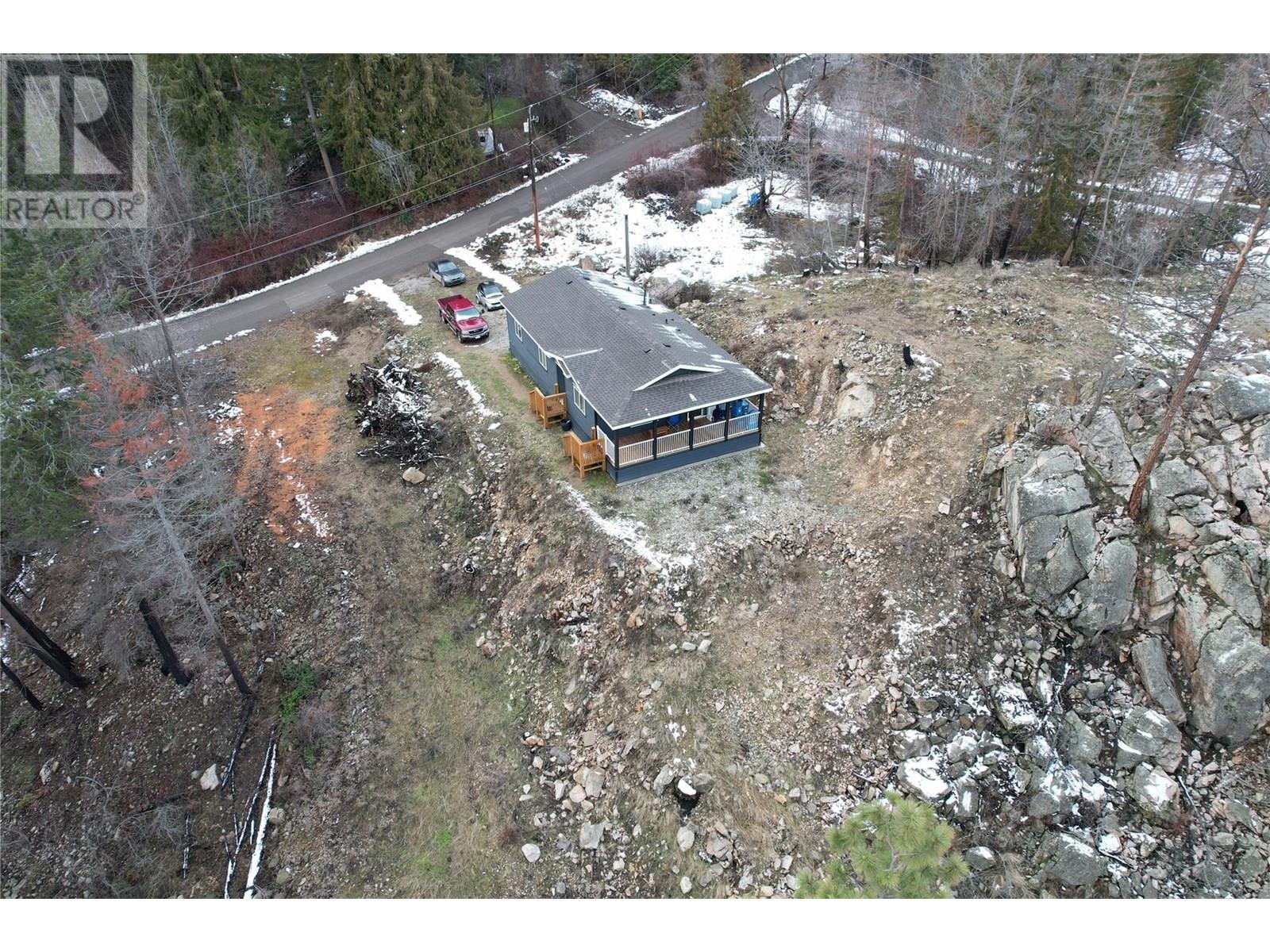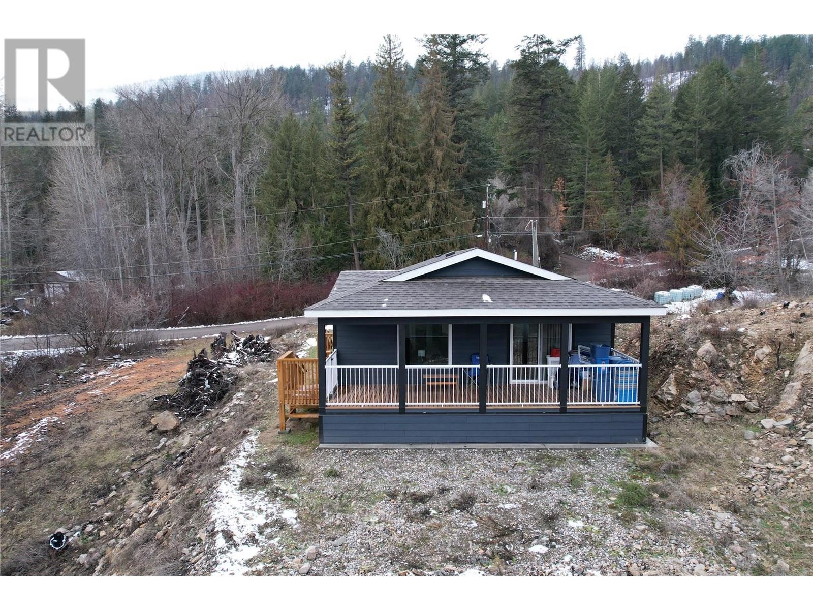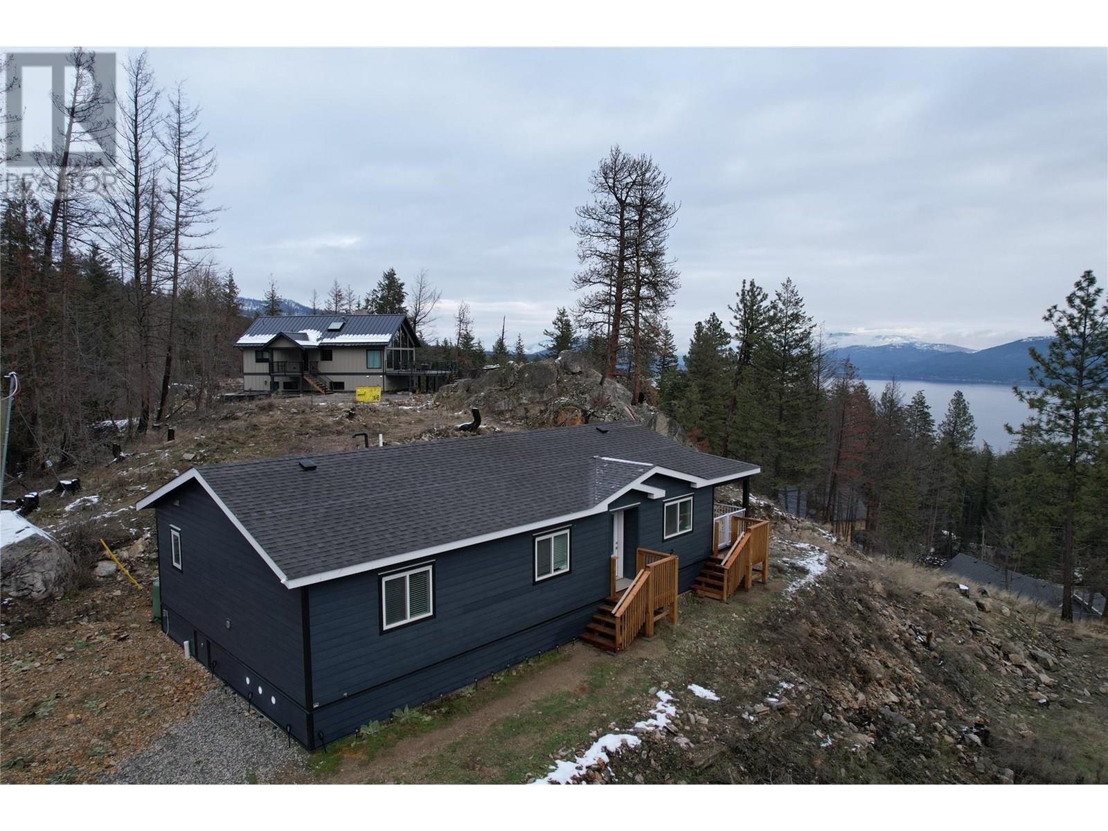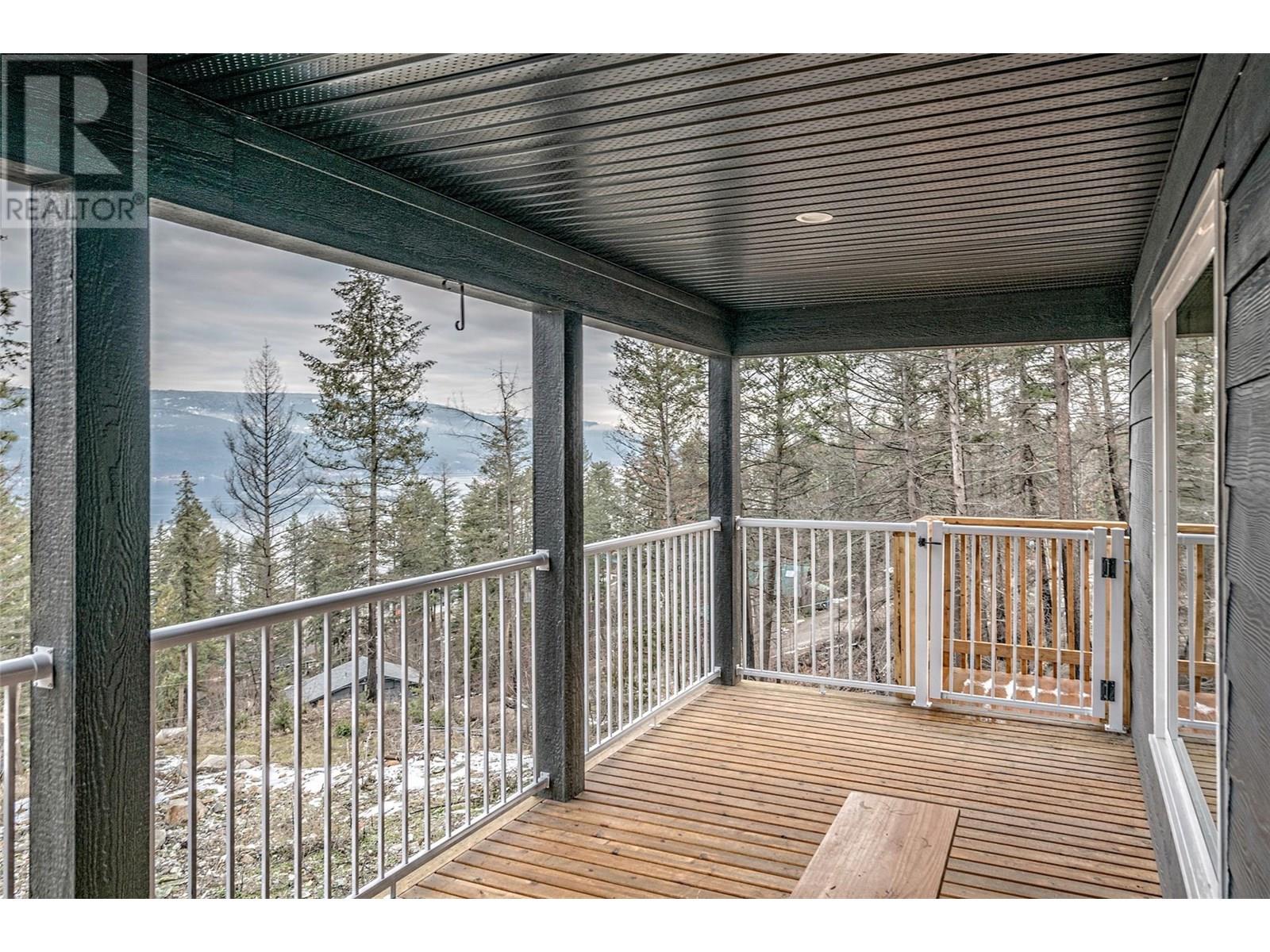 This 2 bedroom plus den, 2 bathroom, one story home was newly built in 2022. It features an open floor plan with the kitchen, living and eating space combined and access to the covered deck from the dining room. Rounding out the house is a handy laundry/storage room and a flexible den space. Enjoy some privacy from the covered deck and take in some incredible views of Okanagan Lake. The home sits on just under one acre of land that is low maintenance and offers great outdoor adventures right in your backyard. The home is an approximate 30-minute drive to Vernon and just 12 minutes to Fintry Provincial Park. (id:58842)