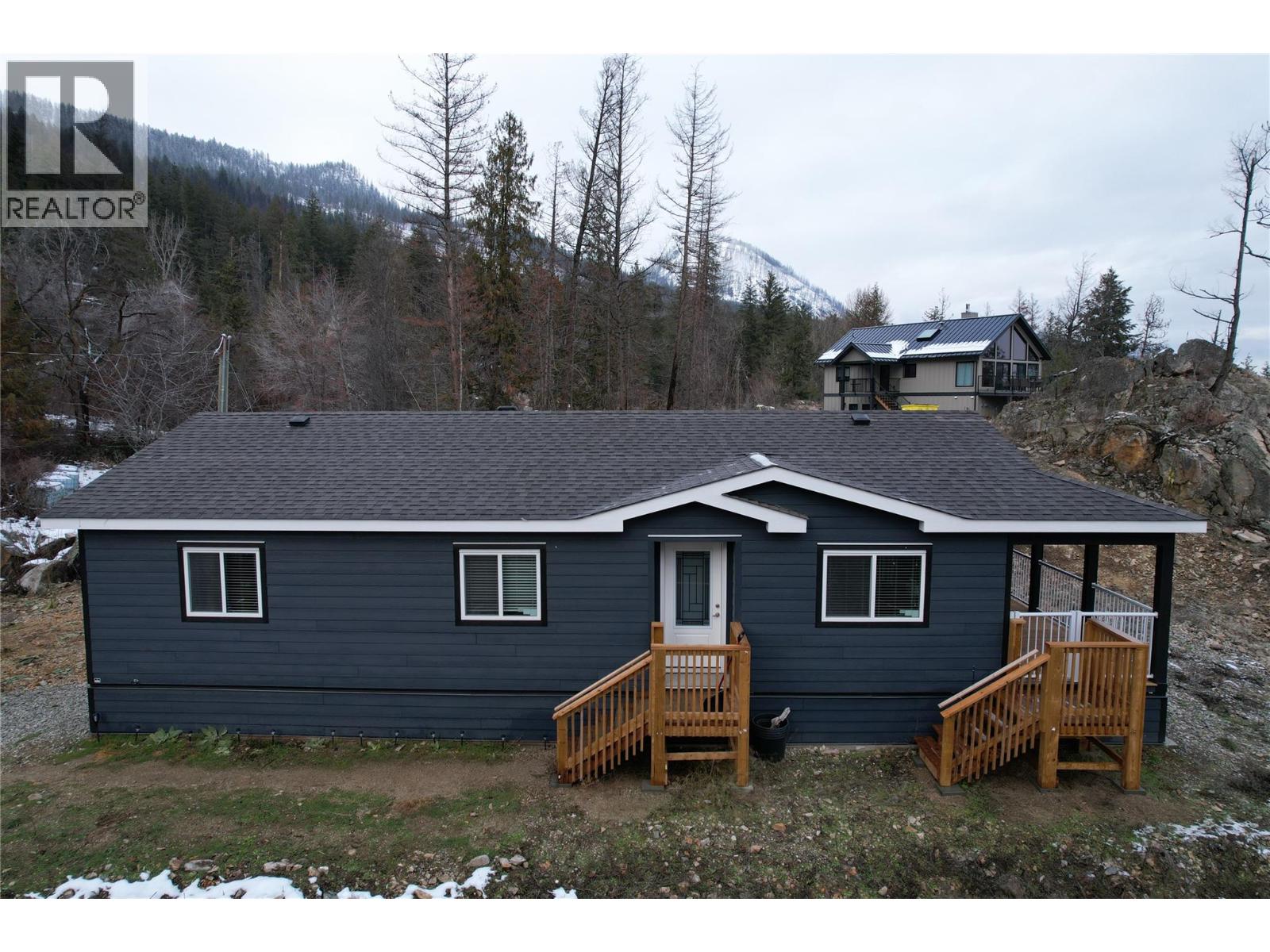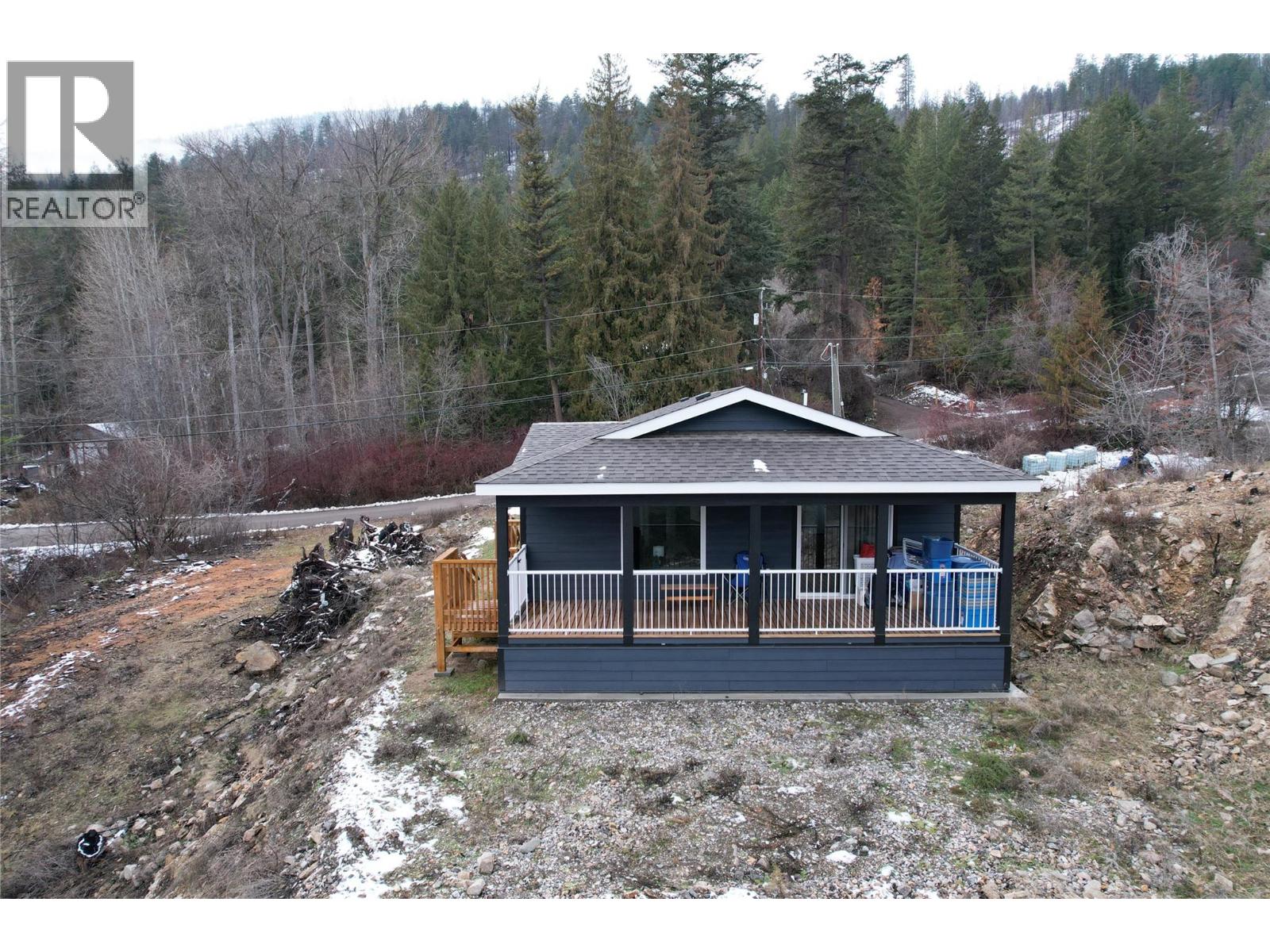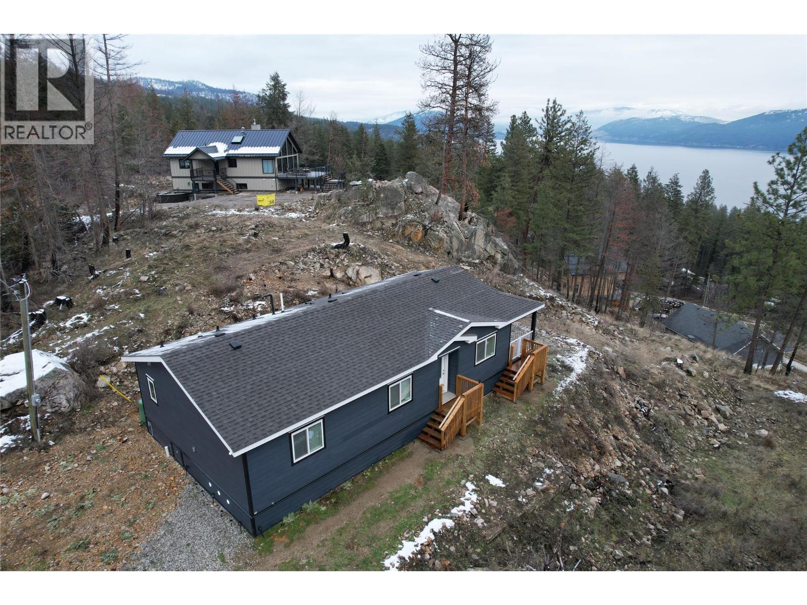 This 2 bedroom plus den, 2 bathroom, one story home was newly built in 2022. It features an open floor plan with the kitchen, living and eating space combined and access to the covered deck from the dining room. Rounding out the house is a handy laundry/storage room and a flexible den space. Enjoy some privacy from the covered deck and take in some incredible views of Okanagan Lake. The home sits on just under one acre of land that is low maintenance and offers great outdoor adventures right in your backyard. The home is an approximate 30-minute drive to Vernon and just 12 minutes to Fintry Provincial Park. (id:58842)