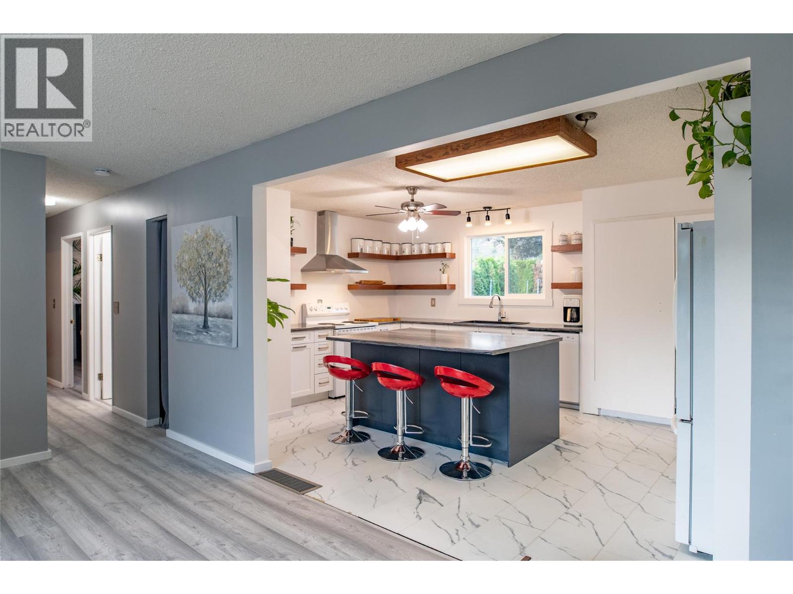 Welcome to 955 Hickory Rd, your next place to call home! This beautifully updated four bedroom plus den offers the perfect blend of comfort style and functionality all nestled in the heart of a desirable and centrally located South Rutland neighbourhood. Step inside to discover a bright, open concept main floor featuring brand new laminate flooring, fresh paint and a renovated kitchen that is sure to impress! The kitchen offers ample counter space, a large island with extra storage and seating, the island even includes an automatic sweeper connected to the central vacuum system for added convenience. The main floor also includes a spacious primary bedroom with two piece en suite, two additional bedrooms and the main floor bathroom. Downstairs you’ll find more space for the whole family, a large family room perfect for movie nights and games, the fourth bedroom and den, great for guests or a home office, and a three-piece bathroom and cold room for extra storage. Enjoy year-round comfort with a newer furnace, central air conditioning, hot water tank and roof. Outside the home continues to impress with the large fully fenced yard that is perfect for gardening, kids or pets, has 3 storage sheds and a covered patio, there is also ample parking, including RV parking with a 30 amp hook up. Easy to suite as there is water available and 220 receptacle for a stove off the family room. All this located close to schools, shopping, transit and beautiful Mission Creek trails. (id:58842)