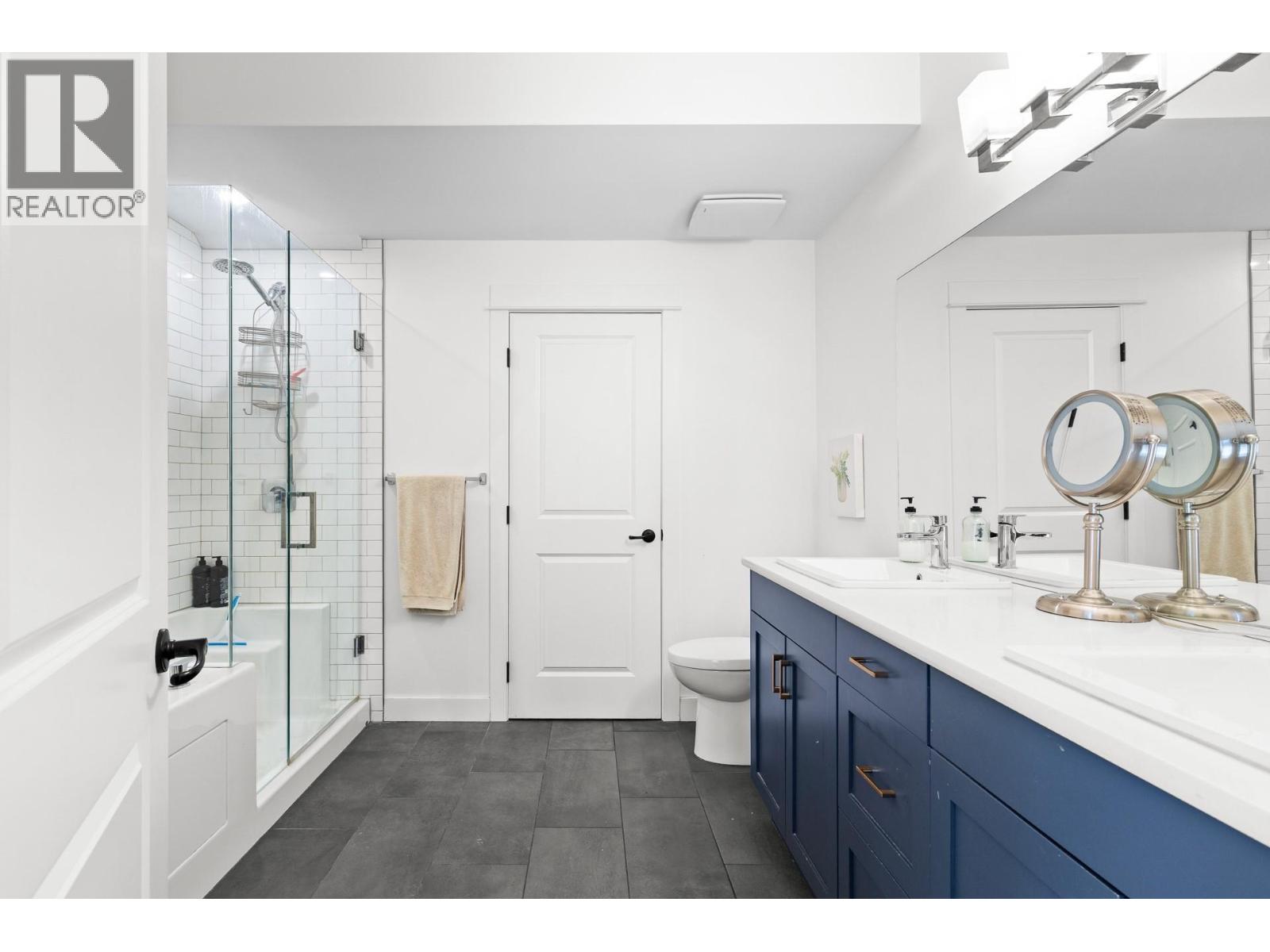 Welcome to 401 – 9563 Jensen Road, a stunning three bedroom plus den, three bathroom modern end-unit townhouse in Winfield Place, located in the heart of Lake Country. This bright, two-storey home offers an open-concept floor plan with high ceilings, expansive windows, and only three units per building for added privacy. The inviting living room features a cozy gas fireplace and stylish feature wall, flowing seamlessly into the contemporary kitchen complete with a quartz island with bar seating, stainless steel appliances, a gas stove, abundant cabinetry, and a separate walk-in pantry. The spacious primary suite is a true retreat with a walk-in closet and a luxurious ensuite featuring dual sinks, heated floors, a tiled shower, and a separate soaker tub. Two additional bedrooms plus a versatile den provide flexibility for families or those working from home. Enjoy outdoor living on the private back patio, along with the convenience of a spacious double garage. Ideally situated within walking distance to groceries, shops, schools, and amenities, and just minutes to beaches, wineries, and Kelowna International Airport, this home offers the perfect blend of comfort, style, and Lake Country lifestyle. (id:58842)
