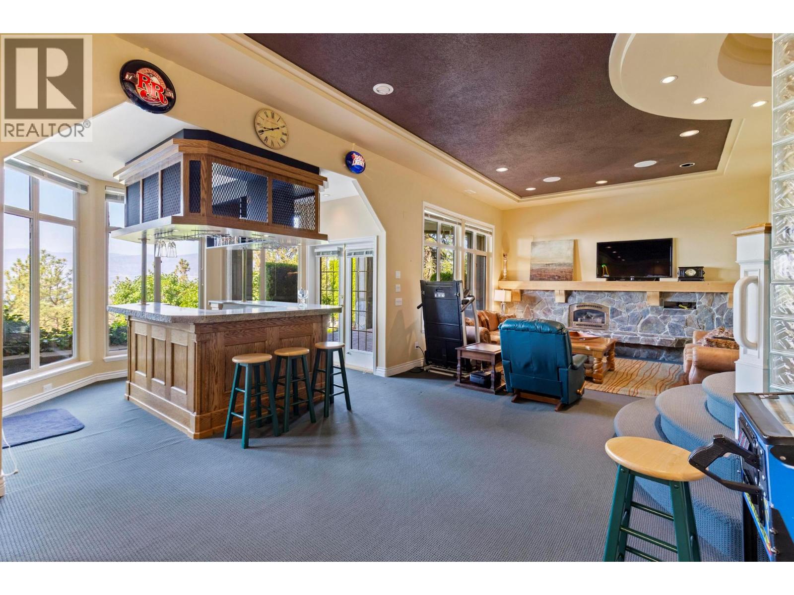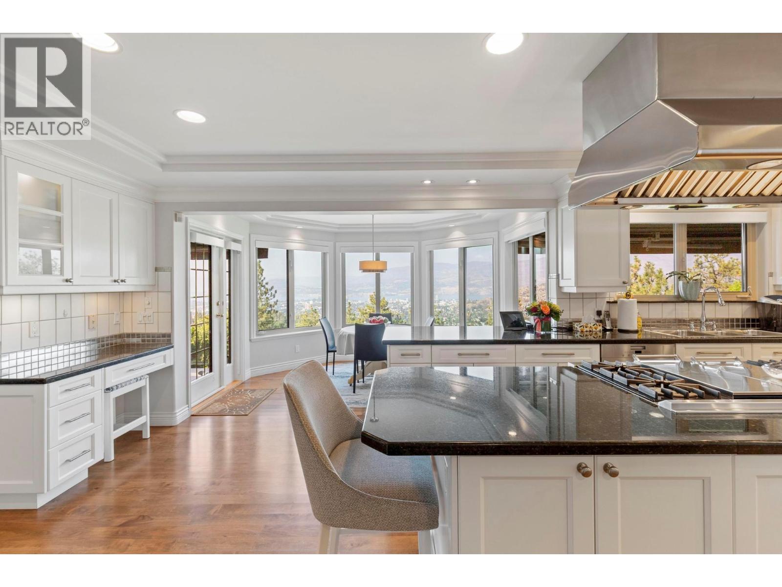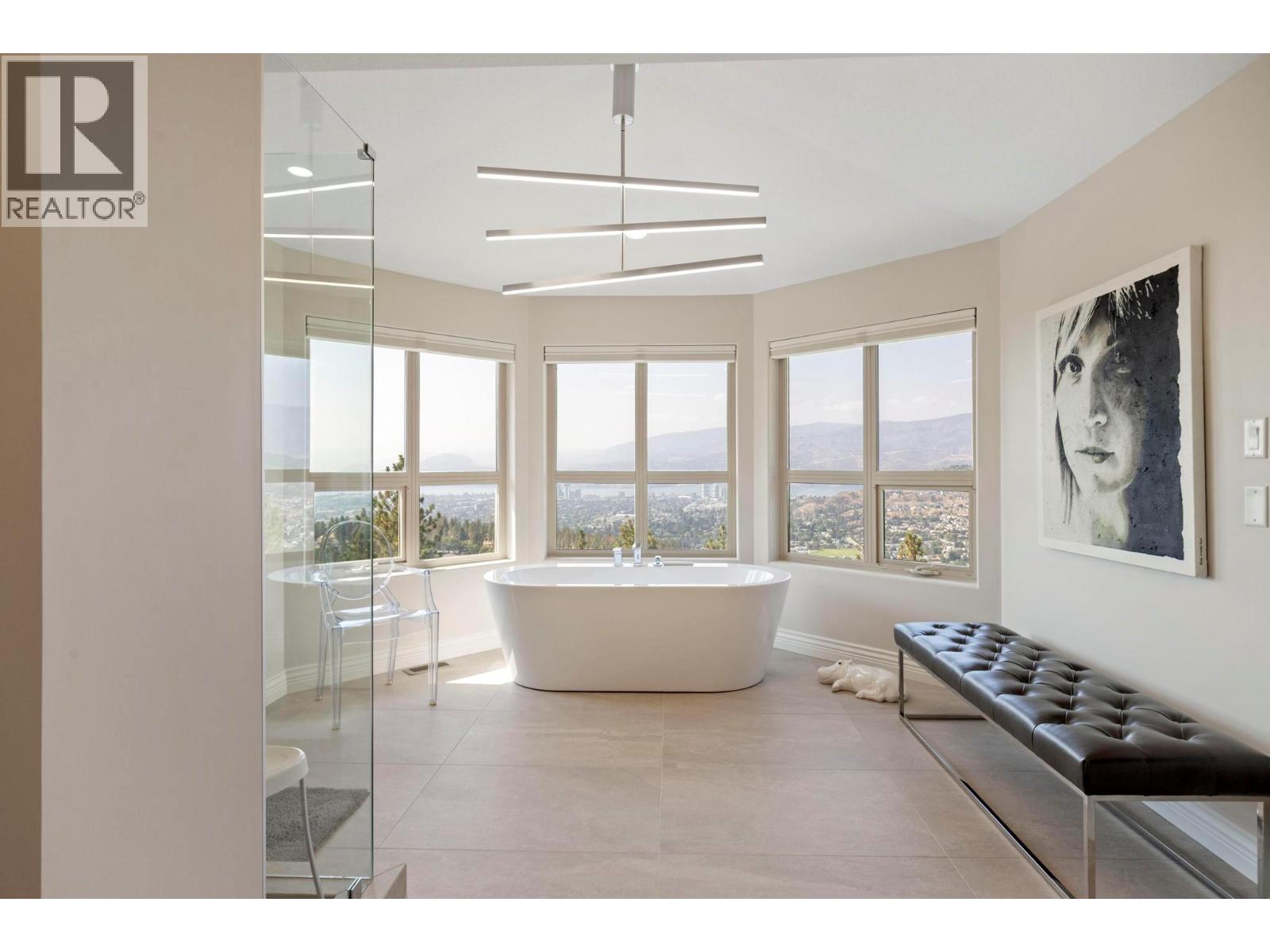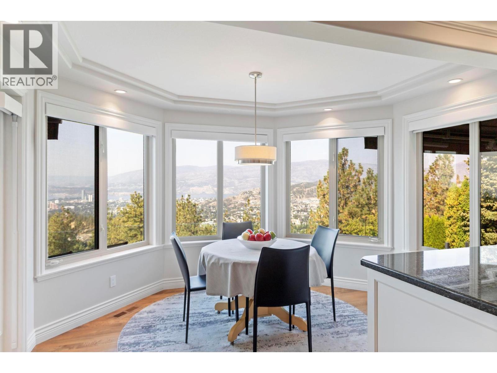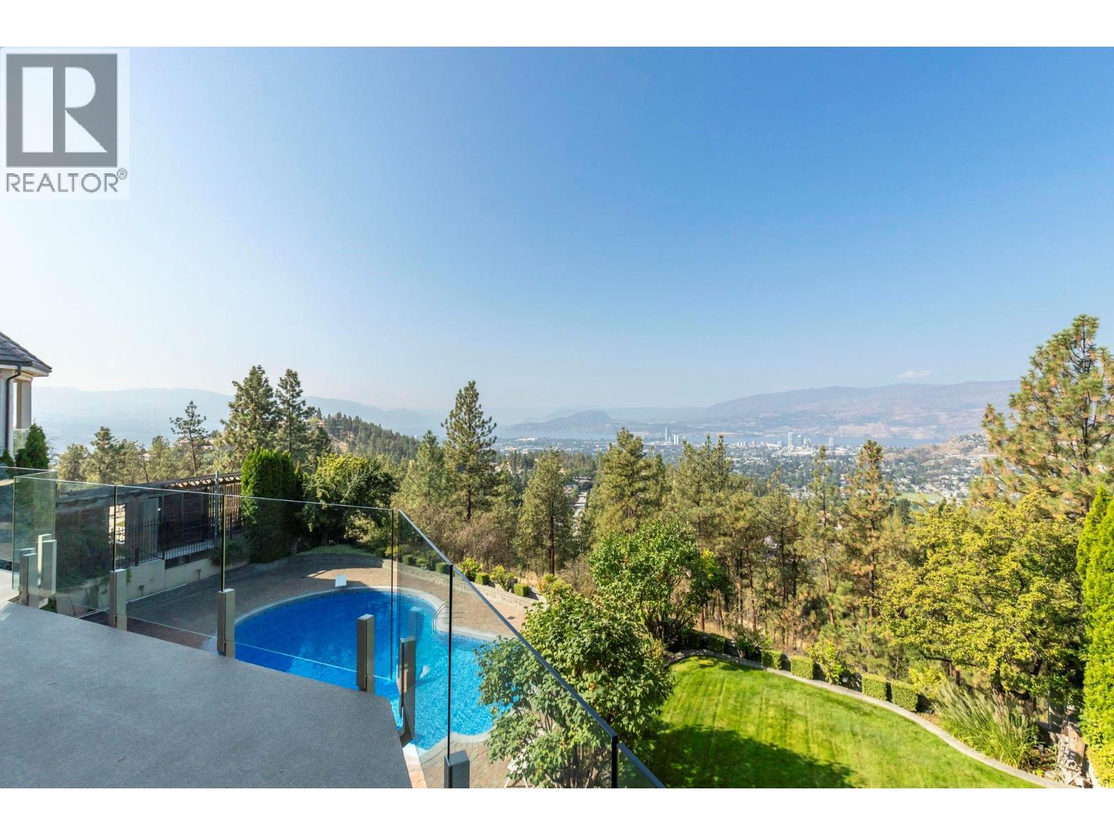 Prestige, scale, and breathtaking views define this custom-built estate on one of Kelowna’s most coveted streets atop Dilworth Mountain. Originally built as the builder’s dream home, every detail reflects quality and timeless design. With over 6,300 sq. ft., 6 bedrooms plus a den, and 5 bathrooms, this residence showcases exceptional craftsmanship with tray and coffered ceilings, crown moldings, and superior finishes. The main level welcomes with a stone-floored foyer and curved staircase, leading to a vaulted living room with a double-sided fireplace, an elegant dining room, and a chef’s kitchen featuring granite counters, Viking range, Sub-Zero/Miele refrigeration, and a bright breakfast nook with lake views. A family room, private office, powder room, and seamless walkout to covered decks complete the floor. Upstairs, four spacious bedrooms include a luxury 1,050+ sq. ft. primary retreat with incredible views, sitting area with fireplace, dual walk-in closets, and a spa-inspired ensuite with soaker tub. The lower floor boasts 11-ft ceilings, a recreation room with wet bar, additional beds and baths, and a separate entrance with suite potential. Outdoor living includes a pool with brick surround, built-in hot tub, expansive decks for entertaining, spectacular sunsets, and manicured grounds with sweeping lake views. A gorgeous brick-paved driveway leads to the heated garage. Homes on this stretch of Skeena Drive rarely come to market, a once-in-a-lifetime estate opportunity! (id:58842)