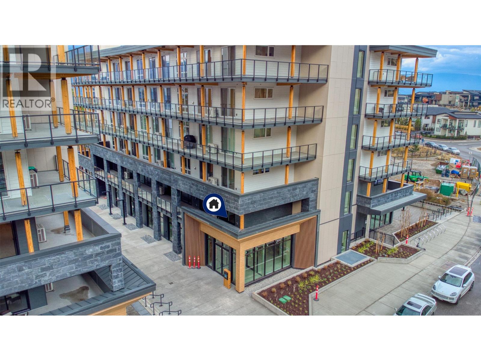 Mountain-View Corner Unit with Wrap-Around Deck! Welcome to Unit 201 at ZARA, Lakestone – a brand-new corner unit offering stunning mountain views. Located in the award-winning Lakestone community, this home combines luxury, functionality, and access to resort-style amenities. The open-concept layout is perfect for entertaining, featuring a gourmet kitchen with rich cabinetry, gas stove, built-in wine bar, and Fisher-Paykel refrigerator. Sun-filled living and dining areas flow seamlessly to a corner wrap-around deck, ideal for relaxing or hosting guests while enjoying the scenic mountain backdrop. This home offers 2 bedrooms and 2 bathrooms, including a primary suite with balcony access, mountain views, walk-in closet, and spa-inspired 5-piece ensuite. The second bedroom also features a full ensuite, providing comfort and privacy for guests or family. Includes 1 parking stall and a storage locker. ZARA allows short-term rentals in up to 30% of the building—an excellent opportunity for both lifestyle buyers and investors. Future resort-style amenities include an infinity-edge pool, year-round hot tub, restaurant with patio, steam room, sauna, co-working space, and fitness centre. Steps from 28 km of trails, 5 minutes to shopping and wineries, and 15–20 minutes to Kelowna International Airport, Downtown Kelowna, and UBCO. Experience the ultimate mountain-side lifestyle in this move-in ready corner unit. GST applicable (id:58842)