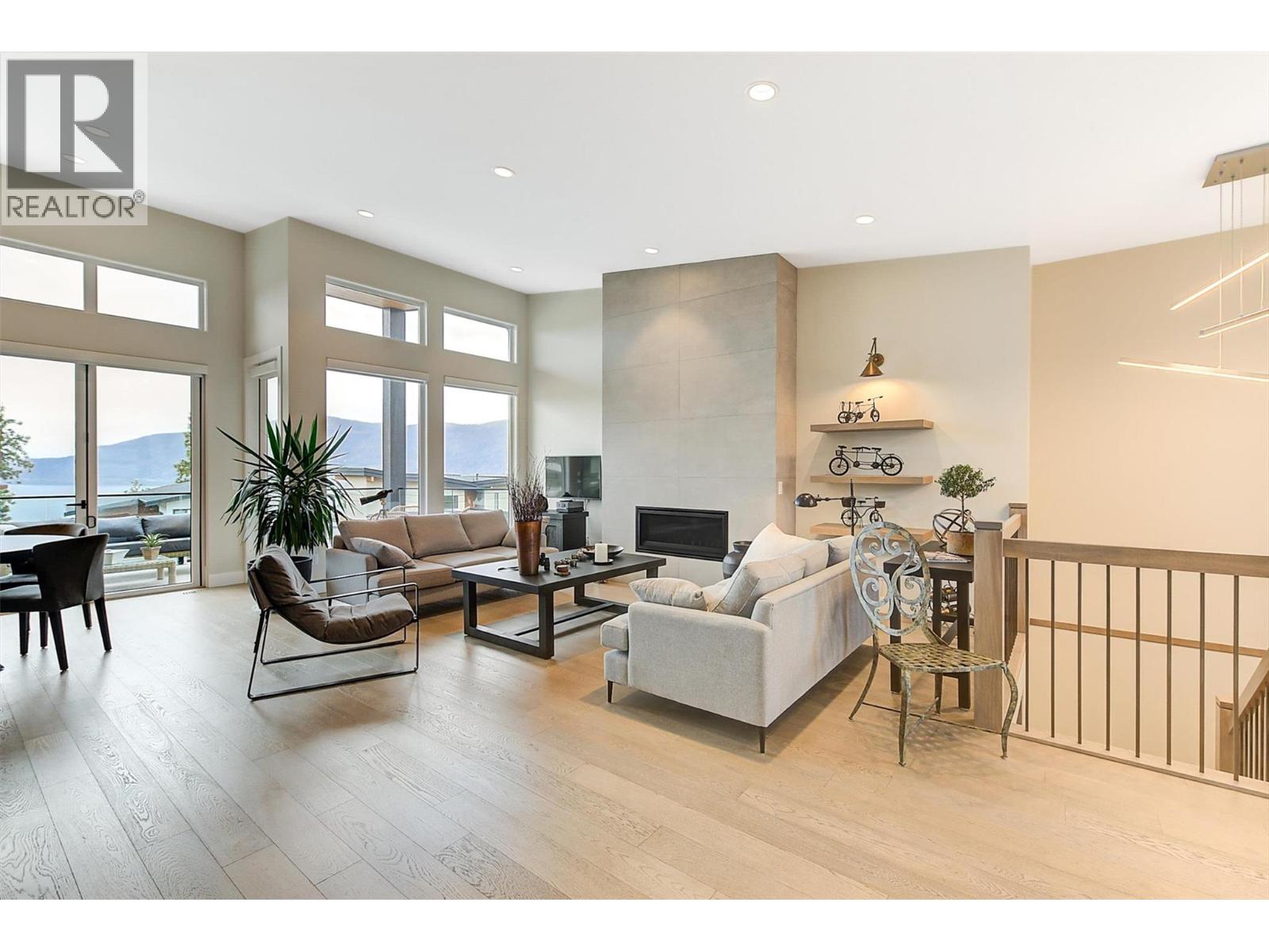 Experience luxury living at 9728 Centrestone Crescent, a stunning West Coast Contemporary walk-out rancher in the prestigious Lakestone community. Meticulously maintained, this residence delivers a refined open-concept design that blends elegance, comfort, and exceptional indoor-outdoor living. The main level features soaring 10+ ft ceilings, expansive windows & abundant natural light, all perfectly positioned to capture the lake, mountain, and bridge views, with seamless access to a covered deck ideal for entertaining or relaxing. High-end finishes include hardwood flooring throughout the kitchen, dining & living areas, primary bedroom & den, complemented by flat-panel cabinetry & quartz countertops. Tile flooring enhances the bathrooms & laundry room. The primary suite is a private retreat with a spa-inspired ensuite and generous walk-in closet. Also on the main level are a stylish office/den, powder room, and a thoughtfully designed mudroom with laundry and sink, conveniently located off the garage. The walk-out lower level offers a spacious recreation room, 2 additional bedrooms, a full bathroom, and access to a patio - perfect for guests or extended family. Low maintenance landscaping. Lakestone residents enjoy exclusive access to 28 km of walking trails, multi-sport courts, and The Lake Club & Centre Club, featuring pools, hot tubs, fitness facilities, and more. This is Okanagan living at its finest, where every day feels like a vacation. (id:58842)