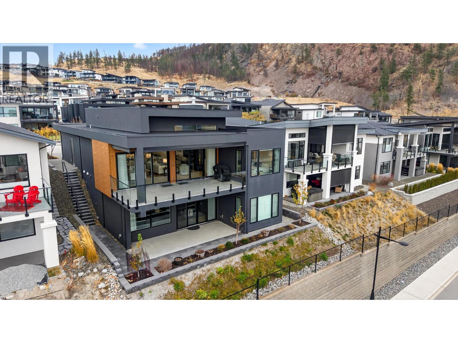 This elegantly curated 3 Bed + Den lake view home in the sought after Lakestone must be seen! First time on market, this walk out rancher home is MINT and was thoughtfully designed and crafted featuring opulent touches ordinarily reserved for $2M+ homes. From the moment you walk in you will be captivated by soaring ceilings and the lake views through the grand bi-pass glass door and enraptured by the warm designer tones, textures, and quality finishes. The bright open concept living space is inviting and warmed by a stunning 3-sided fireplace. The chef inspired kitchen leaves no-one wanting with large island, pro quality appliances, and butler pantry. Indoor-outdoor living at it's finest here - you can embrace the Okanagan lifestyle while dining on the screened and heated deck. Exceptional flow with no space wasted. Lower level reflects same level of finish with hardwood floors, well outfitted wet bar, high ceilings, fireplace, and an open plan that offers lots of room to gather, relax, and enjoy the time alone with music or game time with friends. In-floor radiant heating down stairs ensures comfort for all with independent room controls, and is supplemented by a high efficiency gas furnace, AC, and HRV Air Circulation. Modest HOA fee affords you access to both the Lake Club and Centre Club with Pools, hot tubs, gyms, yoga studio, and pickle ball / tennis courts steps from your door. Also enjoy miles of hiking trails plus a swim dock and semi-private beach. 3-D Tour & Video. (id:58842)