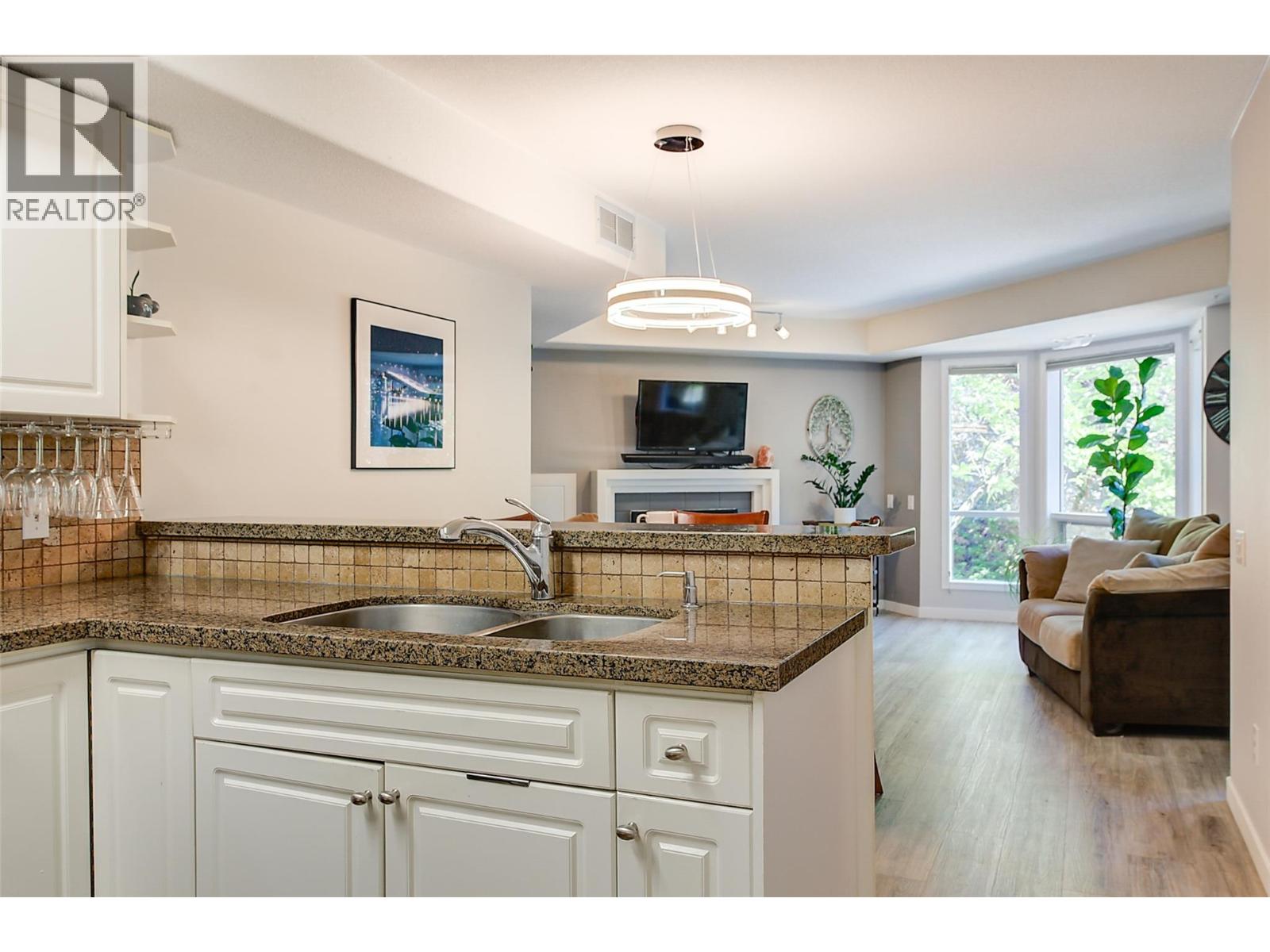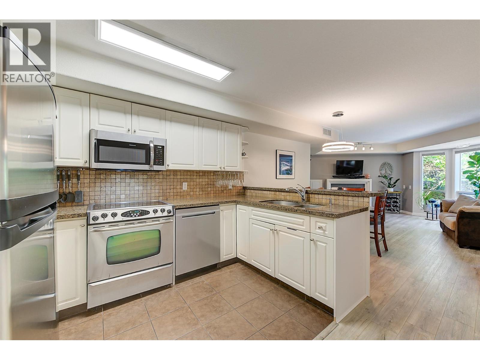 Nature out your window, the city at your doorstep—welcome to Cascade Falls! The perfect blend of location & lifestyle, this 2-bedroom, 2-bathroom condo offers a thoughtfully designed layout with approximately 1,018 sqft of living space. Located on the quiet side of the building, the open-concept kitchen features granite counters, stainless steel appliances, ample cabinet storage & a sit-up bar for two with extensive vinyl plank flooring. A formal dining area flows seamlessly into a cozy living room with a gas fireplace & access to a covered balcony—perfect for morning coffee or summer BBQs with friends & family! The oversized primary bedroom includes balcony access, a generous walk-in closet & a 4-piece ensuite. The second bedroom is smartly outfitted with a built-in desk & wall bed, ideal for guests or a home office setup & is adjacent to the main 4-piece bathroom. You'll also find a dedicated laundry/pantry room off the kitchen with freezer for added convenience & storage. This condo comes complete with 1 secure underground parking stall, 1 large storage locker & has a new furnace/AC unit (2024)! The pet-friendly strata features mature landscaping & is just steps from Dilworth Soccer Park & nature trails. Live above the city, but never far from it—Dilworth Mountain is located in the heart of Kelowna just 10-15 mins to everything you need—UBCO, YLW Orchard Park Mall, groceries, restaurants, big box stores, the Okanagan Rail Trail, Glenmore & more! Move in & enjoy this fall! (id:58842)
