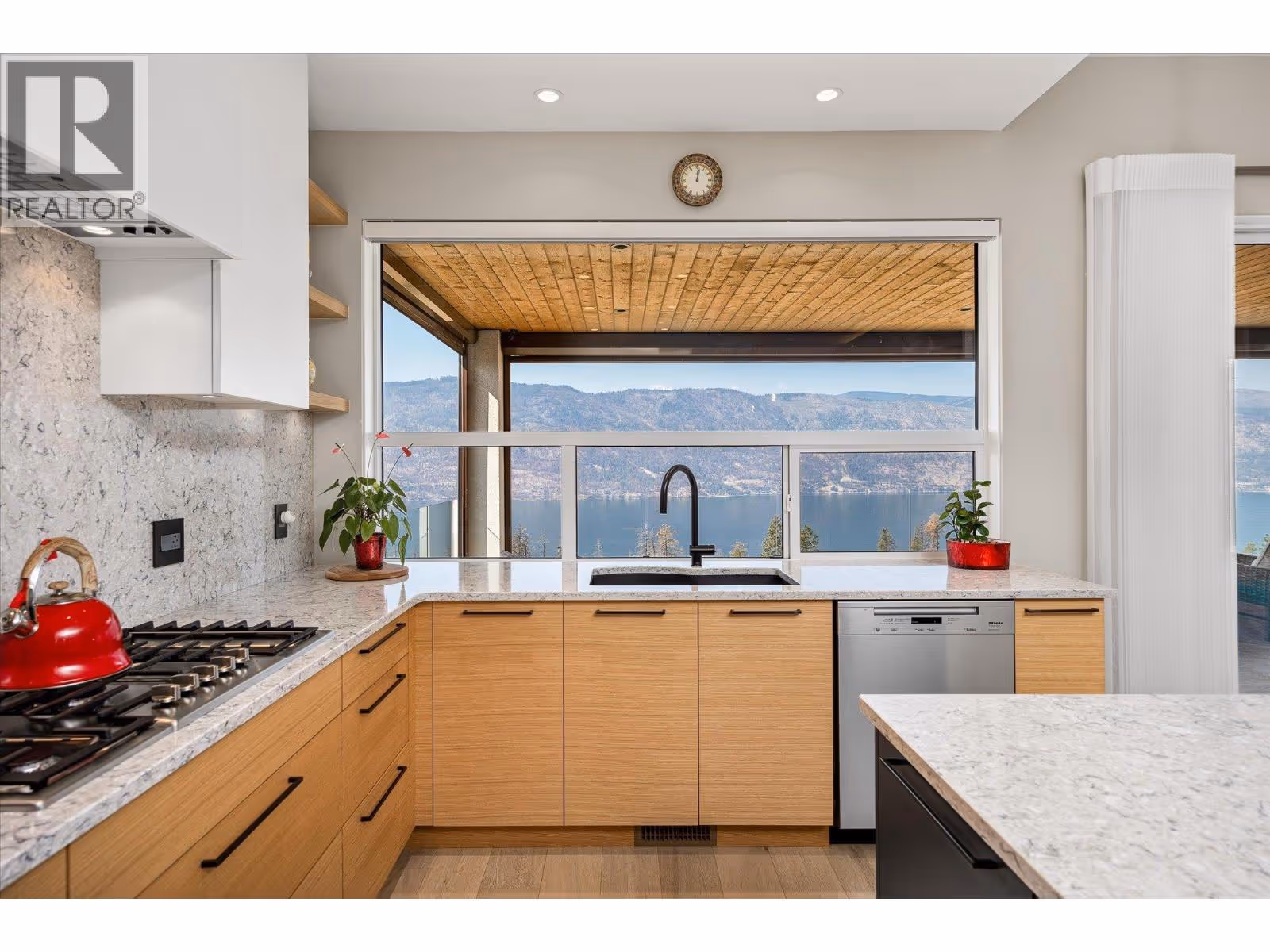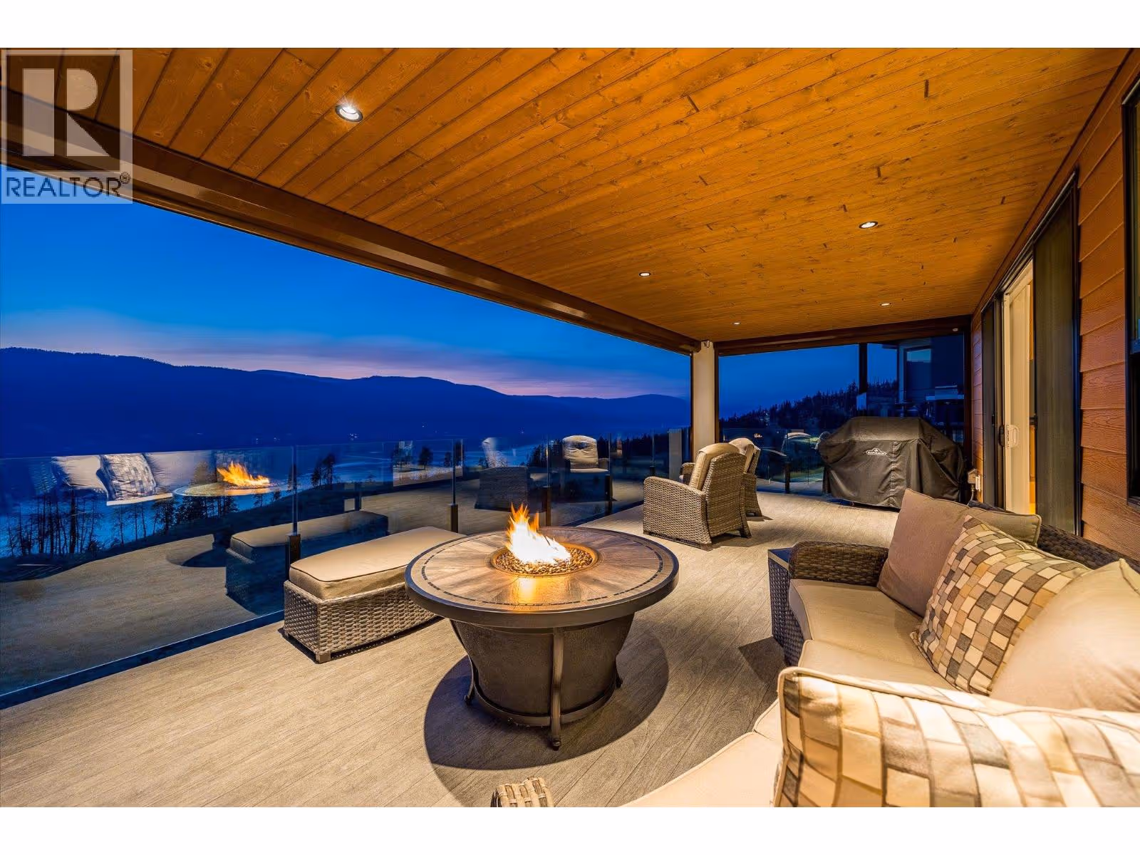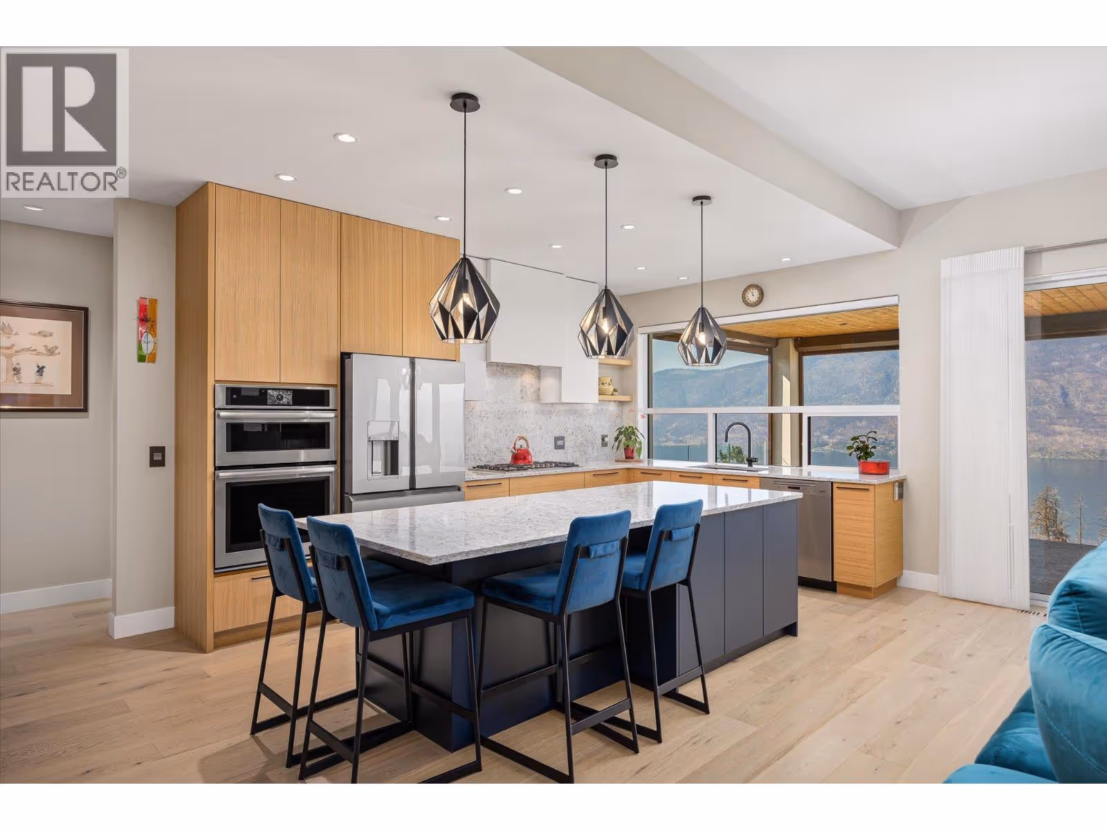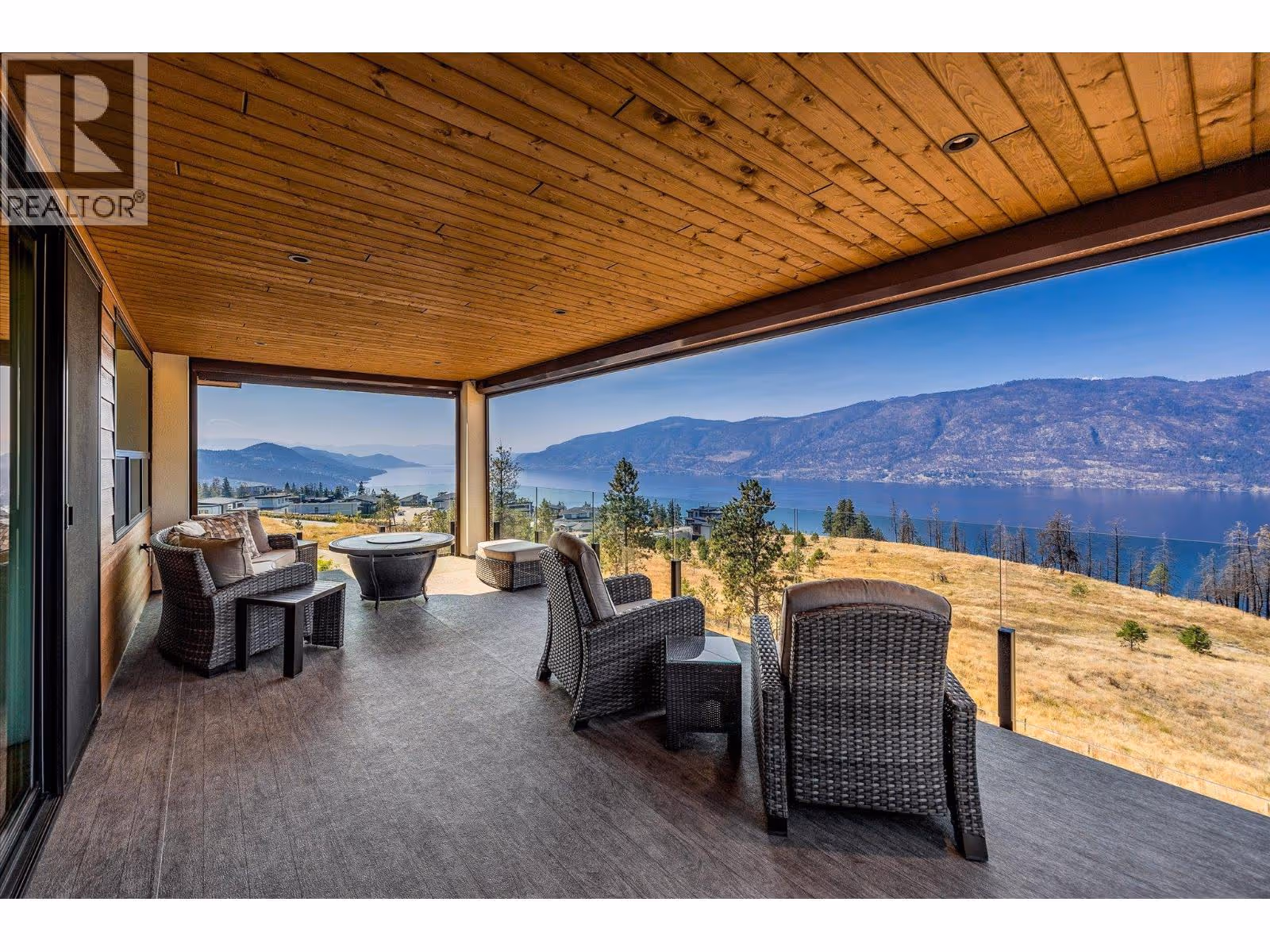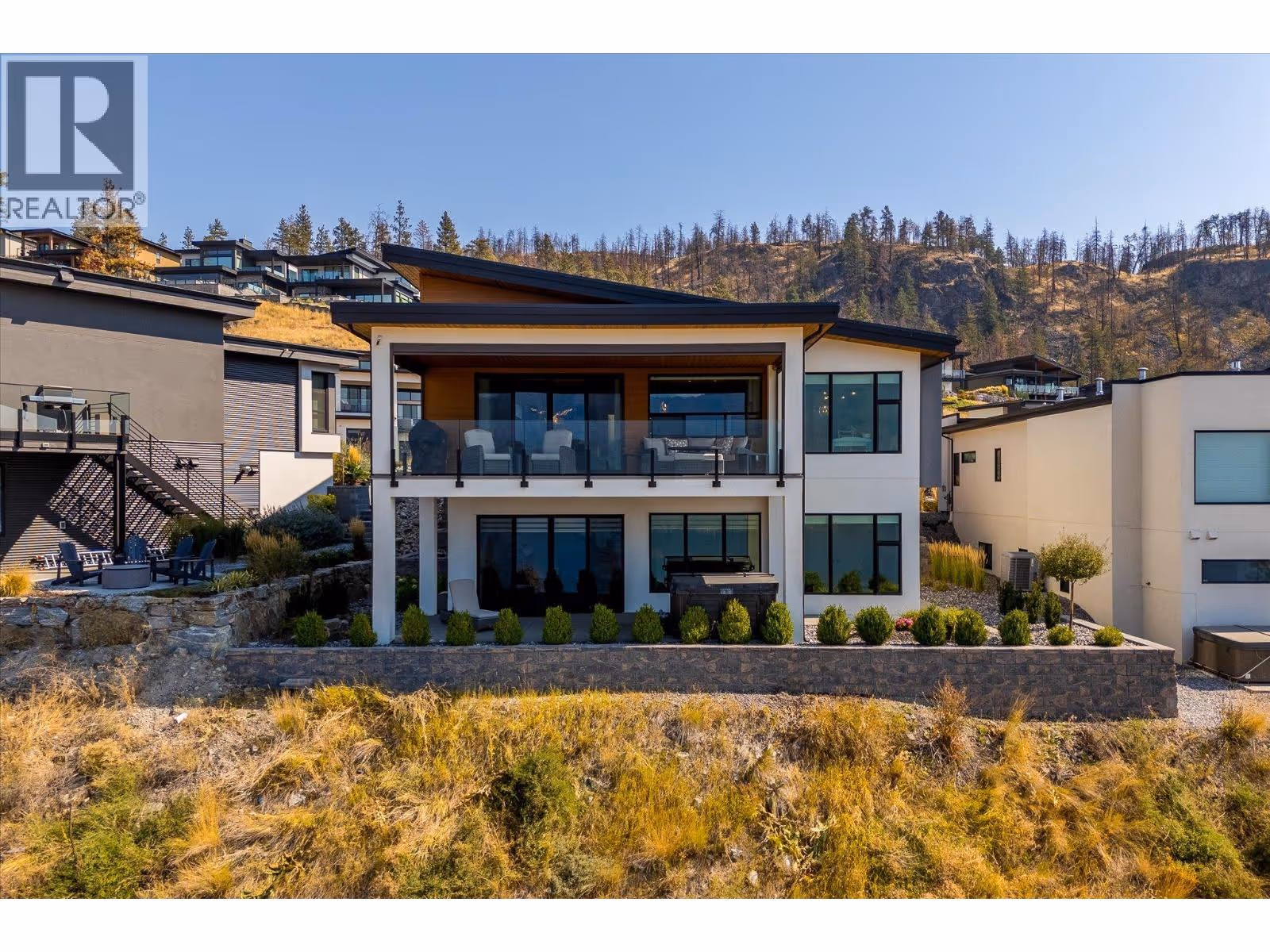 Introducing 9814 Beacon Hill Drive, a stunning contemporary residence in the prestigious Lakestone community of Lake Country, BC. Thoughtfully designed for modern luxury living, this home captures breathtaking panoramic views of Okanagan Lake from nearly every room. Seamlessly blending elegant architecture with refined finishes, the open-concept layout features soaring ceilings, expansive windows, and seamless indoor-outdoor transitions that invite natural light and create an airy, sophisticated atmosphere. The gourmet kitchen is appointed with high-end appliances, custom cabinetry, and a waterfall island perfect for entertaining. The primary suite offers a serene retreat with a spa-inspired ensuite and private balcony overlooking the water, while additional bedrooms provide comfort and flexibility for family or guests. Outside, the expansive patio and landscaped yard create a private oasis ideal for al fresco dining or simply enjoying the sunset over the lake. Residents of Lakestone enjoy access to exclusive community amenities, including a private clubhouse, fitness centre, outdoor pools, tennis courts, and scenic walking trails along the shoreline. Perfectly situated just minutes from award-winning wineries, golf courses, and Kelowna International Airport, this exceptional property embodies the ultimate Okanagan lifestyle. Experience the harmony of luxury, comfort, and natural beauty at 9814 Beacon Hill Drive—your lakeview sanctuary awaits. (id:58842)