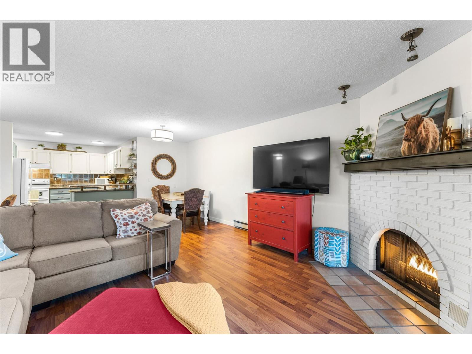 Move in ready. This bright and inviting home combines charm, comfort, and a prime location within walking distance to the beach, City Park, restaurants, cafes, and boutique shops. Step inside this generous floor plan that offers a large kitchen, updated bathroom, and a spacious primary bedroom with access to a private covered balcony. The living area features a cozy brick gas fireplace and a second balcony that fills the home with natural light, creating an effortless indoor outdoor connection. Recent updates include a new hot water tank (June 2025), new bedroom carpet, new interior doors, and updated baseboards. The home also includes in suite laundry with extra cabinet storage. Set in a quiet, established West Coast style building known for its larger suites and welcoming atmosphere, this residence appeals to a mix of young professionals, families, and long time residents. The building allows two pets, a rare find in the downtown core, and includes a covered parking stall, individual storage unit, and strata fees that cover natural gas for the fireplace, outdoor BBQ hookup, and water. With its friendly, connected community, complete with an optional group chat for residents, and an unbeatable location close to everything downtown has to offer, this condo delivers the perfect blend of lifestyle, comfort, and convenience. (id:58842)