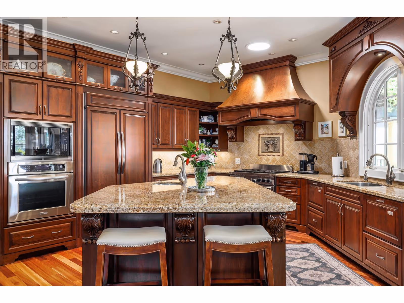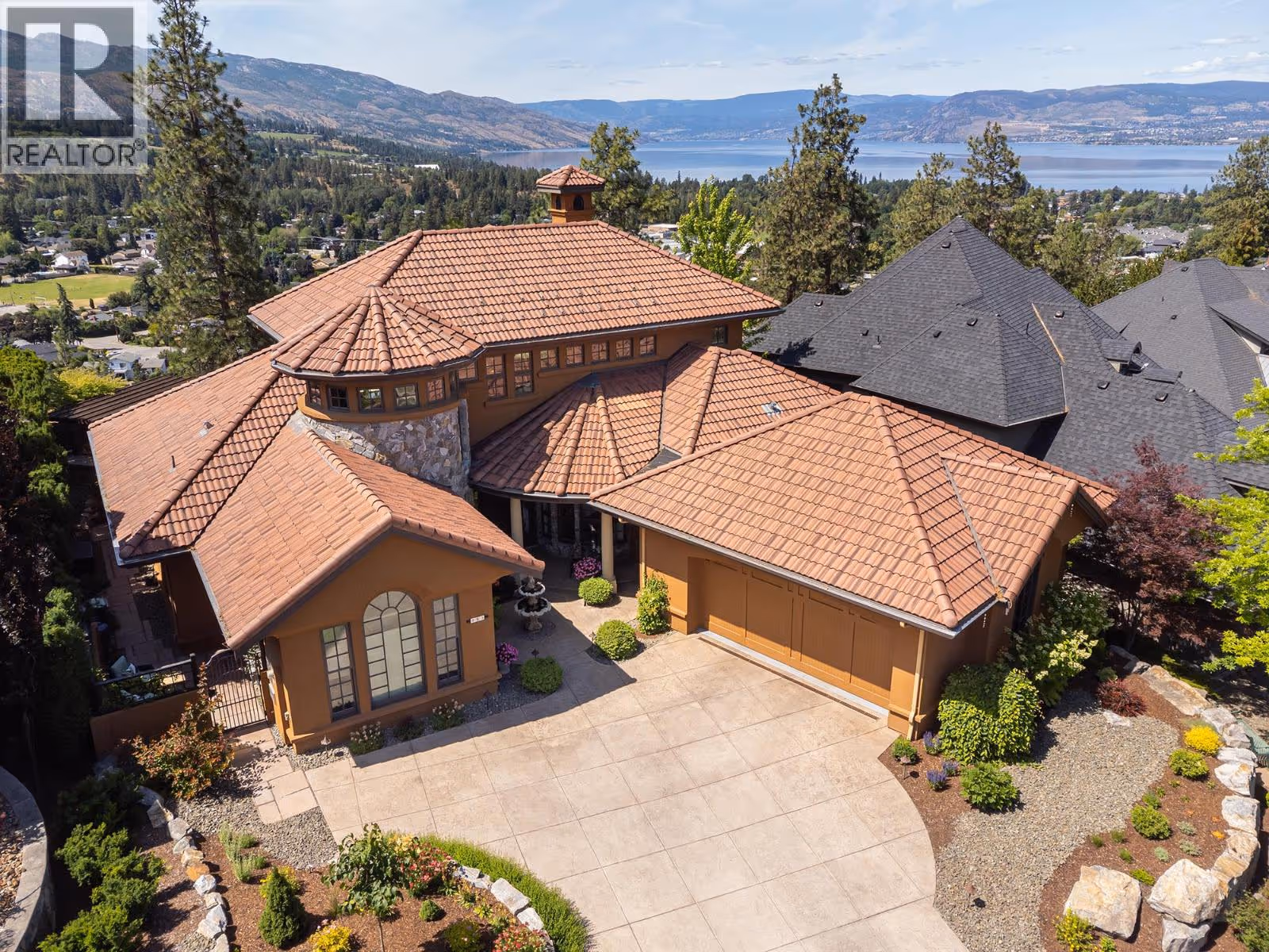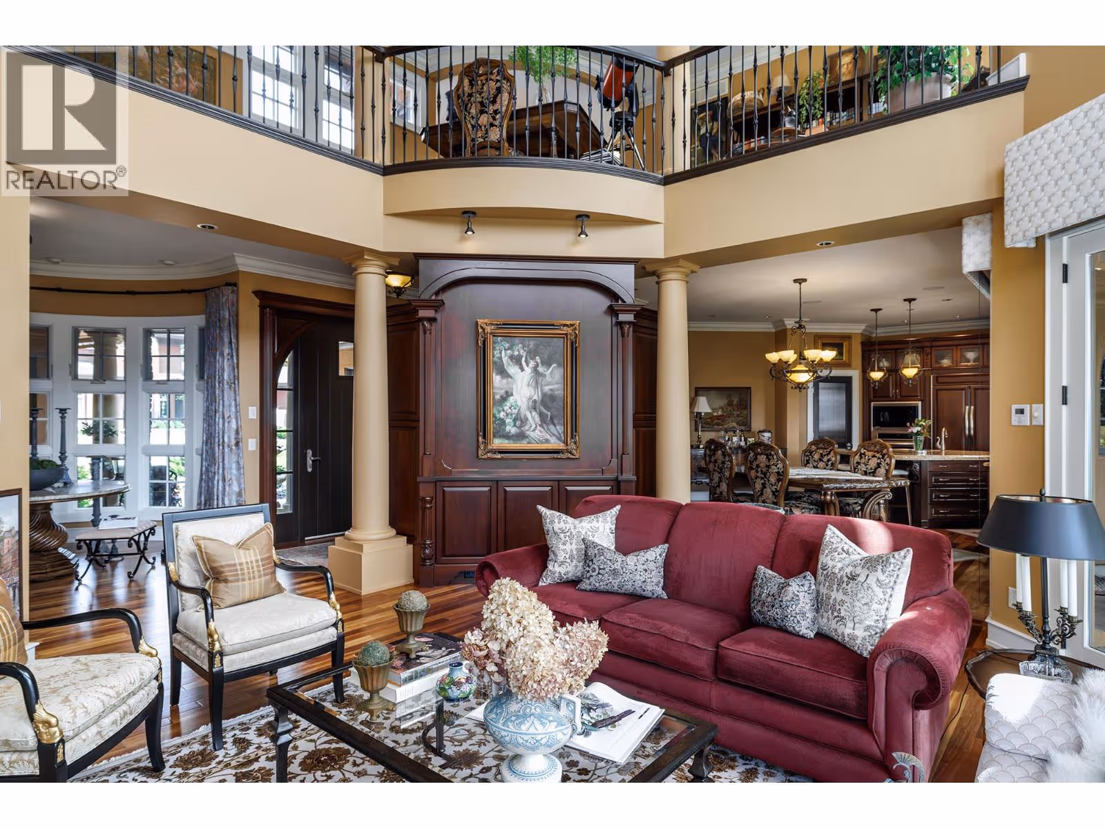 Welcome to this stunning Italian Tuscan villa—an exceptional custom estate blending timeless elegance with modern comfort. Privately tucked away just minutes from the beach and shopping. This home is on a very desirable street full of beautiful homes & offers grand entertaining spaces and peaceful corners for daily living. A resort-style outdoor area features a saltwater infinity pool, cascading waterfall, lush gardens, arbors, and expansive views. The large patio is ideal for al fresco dining with a built-in BBQ, outdoor bathroom and shower, plus private lake views that will enhance your life. Inside, Brazilian cherry wood floors, vaulted ceilings, and oversized windows fill the home with natural light. The chef’s kitchen, with granite counters and high-end appliances, flows into open living and dining spaces. The main-floor primary suite offers a spa-inspired ensuite and custom walk-in closet, while a second bedroom ( office) with ensuite and private deck is perfect for guests. A spacious laundry/mudroom leads to a heated garage, and a private elevator provides access to all three levels. Upstairs features a loft-style office/library with half bath. The lower level is an entertainer’s dream with a theatre room, wet bar, wine room, lounge, pub-style games area, two bedrooms, 2 full baths , gym, and storage. Geothermal heating/cooling, electronic blinds,2 fireplaces, and an EV charger complete this exceptional lifestyle home. (id:58842)