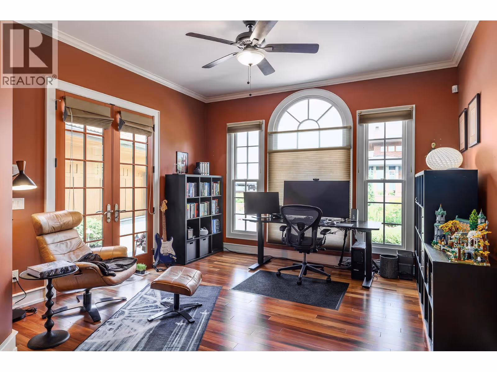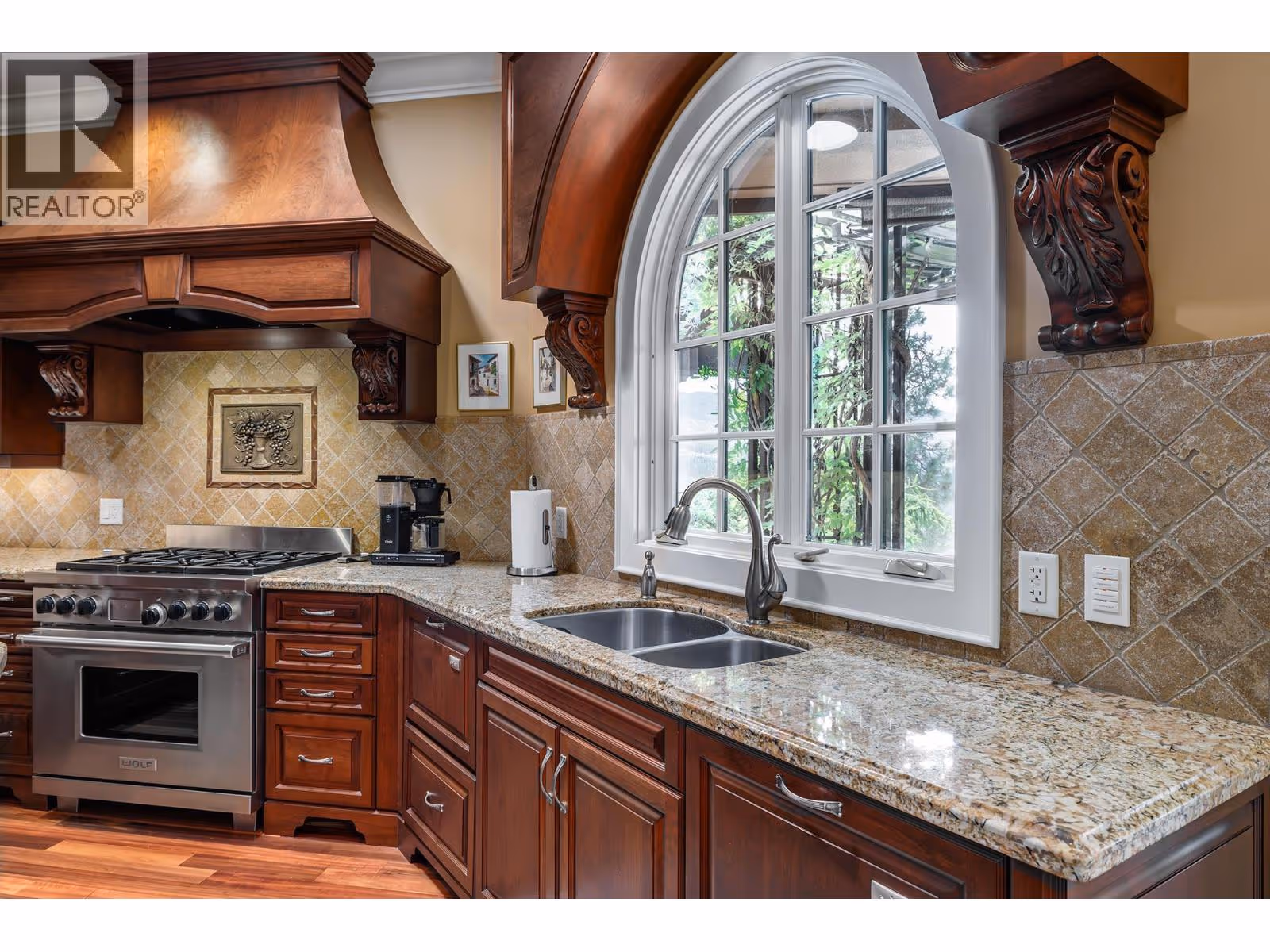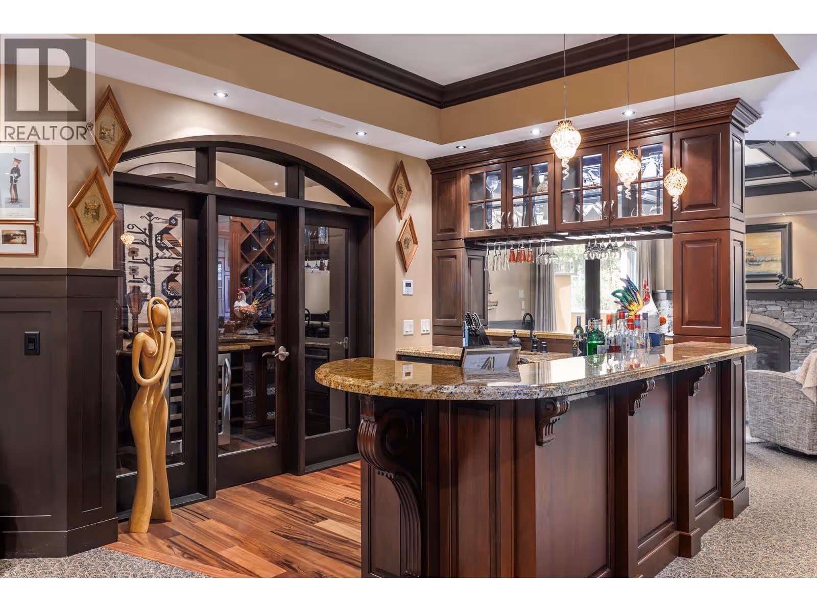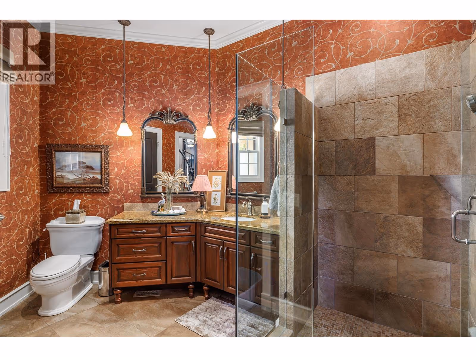 Welcome to this stunning Italian Tuscan villa—an exceptional custom estate blending timeless elegance with modern comfort. Privately tucked away just minutes from the beach and shopping. This home is on a very desirable street full of beautiful homes & offers grand entertaining spaces and peaceful corners for daily living. A resort-style outdoor area features a saltwater infinity pool, cascading waterfall, lush gardens, arbors, and expansive views. The large patio is ideal for al fresco dining with a built-in BBQ, outdoor bathroom and shower, plus private lake views that will enhance your life. Inside, Brazilian cherry wood floors, vaulted ceilings, and oversized windows fill the home with natural light. The chef’s kitchen, with granite counters and high-end appliances, flows into open living and dining spaces. The main-floor primary suite offers a spa-inspired ensuite and custom walk-in closet, while a second bedroom ( office) with ensuite and private deck is perfect for guests. A spacious laundry/mudroom leads to a heated garage, and a private elevator provides access to all three levels. Upstairs features a loft-style office/library with half bath. The lower level is an entertainer’s dream with a theatre room, wet bar, wine room, lounge, pub-style games area, two bedrooms, 2 full baths , gym, and storage. Geothermal heating/cooling, electronic blinds,2 fireplaces, and an EV charger complete this exceptional lifestyle home. (id:58842)