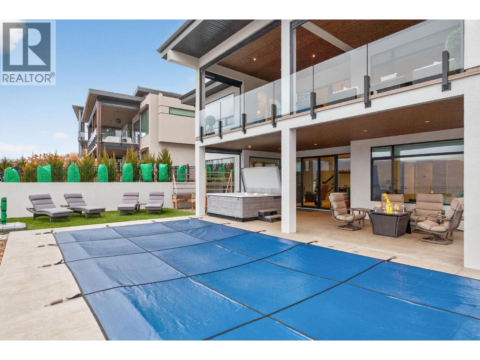 One of the best views in Lakestone! Built by Destination Custom Homes, one of the community’s preferred builders, this immaculate walk-out rancher offers breathtaking lake views and the perfect setting to enjoy the in-ground pool and Okanagan lifestyle. Featuring modern minimalist design, oversized windows, abundant natural light, and an open layout ideal for entertaining. The 500 sq ft deck off the living room with French sliding doors and power shades extends indoor/outdoor living. The kitchen includes quartz countertops, full-size fridge/freezer, gas range, and walk-in pantry. The primary suite offers a walk-in closet and 4-piece ensuite with heated floors. A spacious office and powder room complete the main level. The walk-out lower level features a wet bar, fireplace, two guest bedrooms, and exterior access to the guest bathroom — perfect after pool or hot tub use. The backyard is an entertainer’s dream with pool, hot tub, and unique fluorescent rock pathway. Efficient home with 32 solar panels, dual-zone HVAC, and EV-ready setup. Lakestone offers 28 km of walking trails, multi-sport courts, The Lake Club, and Centre Club, plus easy access to shopping, schools, wineries, restaurants, golf, skiing, Kelowna International Airport, and downtown Kelowna (25 min). Don’t miss this rare opportunity! (id:58842)