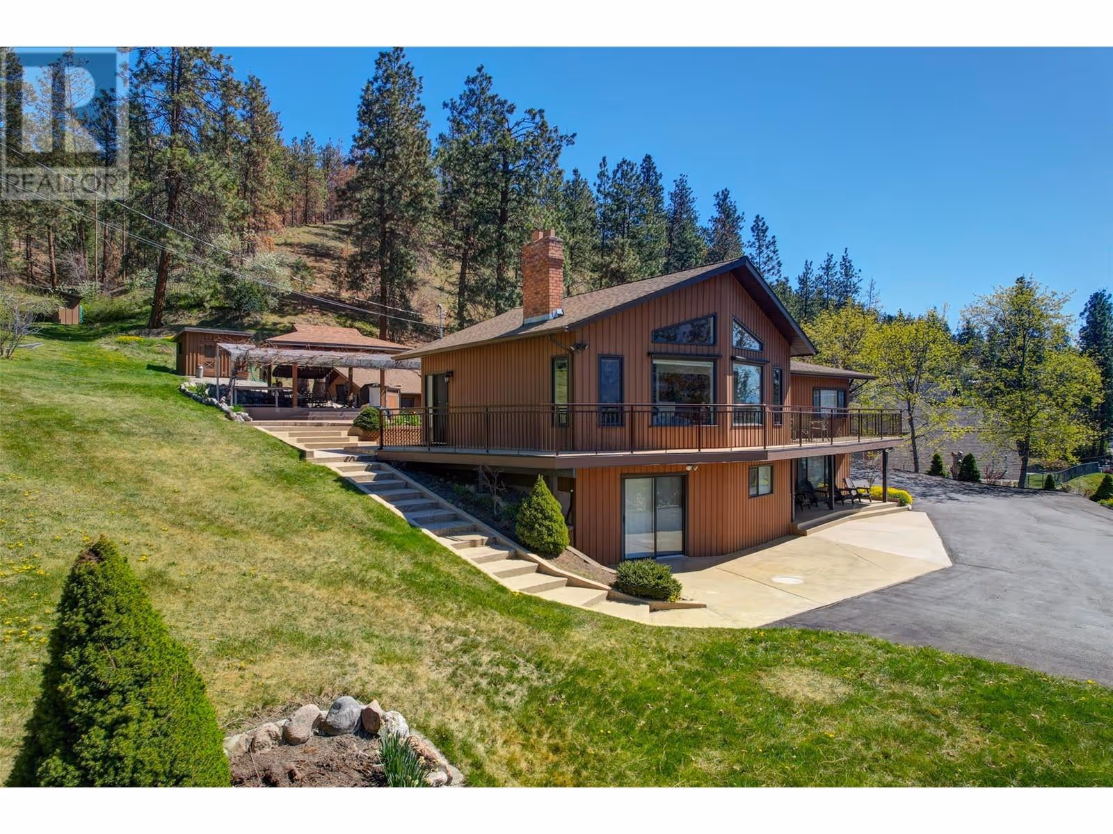 Semi-lakeshore estate with 2 titles, encompassing 9.07 acres (5.1+3.97) of land zoned RR2 and NOT in the ALR. 9983 offers 3.97 acres of land with a beautiful 4 bedroom, 3 bathroom home. Vaulted wood ceilings, huge windows to capture the Okanagan Lake views, and heated tile floors on the main are all features that make this a great semi-lakeshore home. There is a 4 car garage for the cars and the toys, and plenty of excess room for additional parking. There is an outdoor kitchen area w/ concrete patio and a wrap around deck space. Spend 15 seconds walking across the road to enjoy the beautiful beach. Lot 28 is a 5.1 acre piece of land that has subdivision potential for a 2 lot subdivision (buyer to investigate). The land was historically successful with plums, but has been recently cleared as of May 2023. The properties are currently fed with the lake intake water system associated with 9983. Lot 28 may be sold in isolation, but the 9983 property (property w/ home) must be sold in conjunction with lot 28. Outstanding opportunity to acquire 2 titles with plenty of upside potential that total over 9 acres in the prestigious Okanagan Centre area of Lake Country. 2 titles gives building flexibility for multiple primary homes that would make for an outstanding family compound. Boat launch, cafe, and wineries all just a quick drive away! (id:58842)