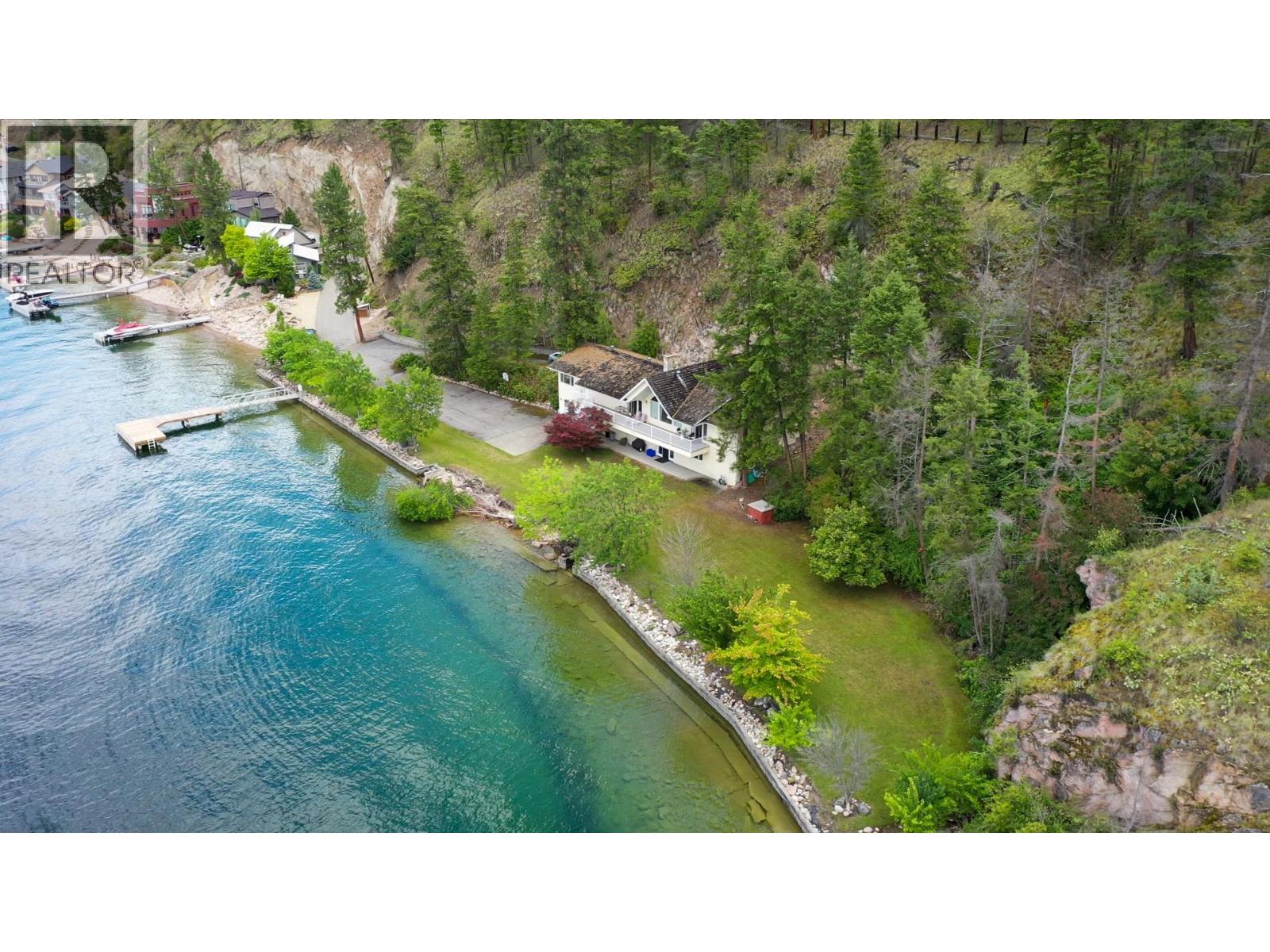 Presenting this amazing end-of-the-road 5 bed, 4 bath Lakefront Estate home located in the prestigious, gated Eastside Estates community. If privacy and location are what you are looking for, the property boasts 399 feet of pristine Okanagan lake frontage on 10.625 acres. Surrounded by Ponderosa Pines, beaches leading to crystal clear water, and stunning views of Terrace Mountain this property is your perfect oasis. Enjoy summer days on the newly constructed private pier and end the day watching the sunset from the covered balcony. The upper floor consists of three bedrooms and three baths while the large basement is fully finished including two bedrooms, a full bath, recreation room, laundry, flex room off of the garage, and a mechanical room. The kitchen features teak cabinetry and mainly marble flooring throughout. Located along picturesque Eastside Rd about 20 mins from downtown Vernon but very close to Ellison Park, Wineries, Predator Ridge and Sparkling Hill Resort. NO Speculation Tax. (id:58842)