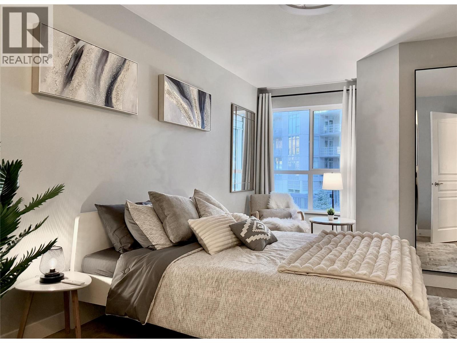 FULLY FURNISHED + ACCESSORIES AND MORE! Unpack your bags and move right into this fully furnished, completely renovated executive condo offering the largest floor plan in its class, featuring an oversized bedroom with extra sitting area plus a versatile bonus room. Located in the highly sought-after Waterscapes resort-style community, you’re steps to restaurants, bars, shopping, and the cultural district, while enjoying premium finishes, accessories, and appliances throughout. Highlights include a new 55” Samsung “The Frame” 4K TV, new Samsung S/S appliances, upgraded flooring, dimmable & tuneable lighting, a flush-mount bedroom ceiling fan, Whirlpool washer and dryer, Blackout curtains, new patio furniture with planter boxes, premium linens, queen bed, and an extensive collection of new furniture, decor, artwork, and accessories (all items in photos included, excluding laptop). Residents enjoy exceptional amenities including a hotel-style pool, two hot tubs (one heated year-round), a fully equipped fitness centre, and the Cascade Lounge with billiards, fireplace, BBQs, and more, this building is directly connected to the amenities so no need to go outside. The 735 sq. ft. condo also offers underground parking next to the elevator, a fully covered balcony with propane BBQ, A/C, espresso kitchen cabinetry, oversized bedroom with walk-in closet, office-style bonus room (or guest space), shower/tub combo, pet-friendly, storage lockers, and underground EV charging stations. (id:58842)