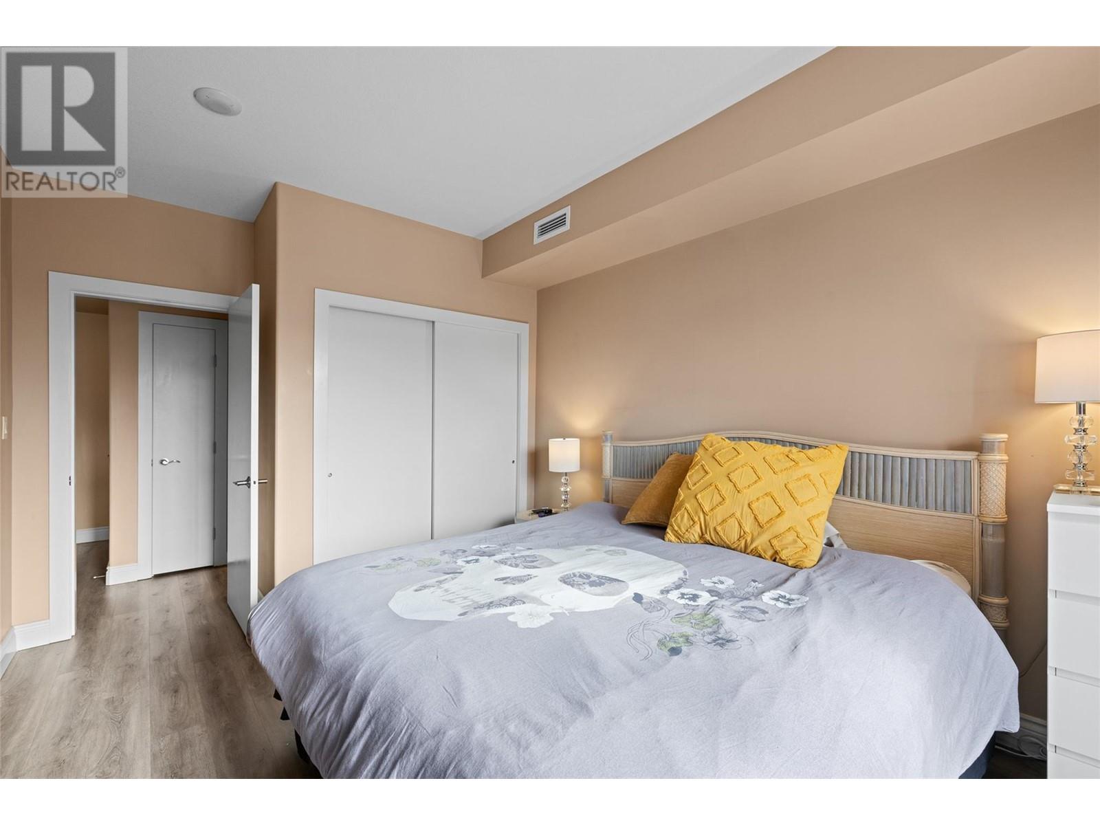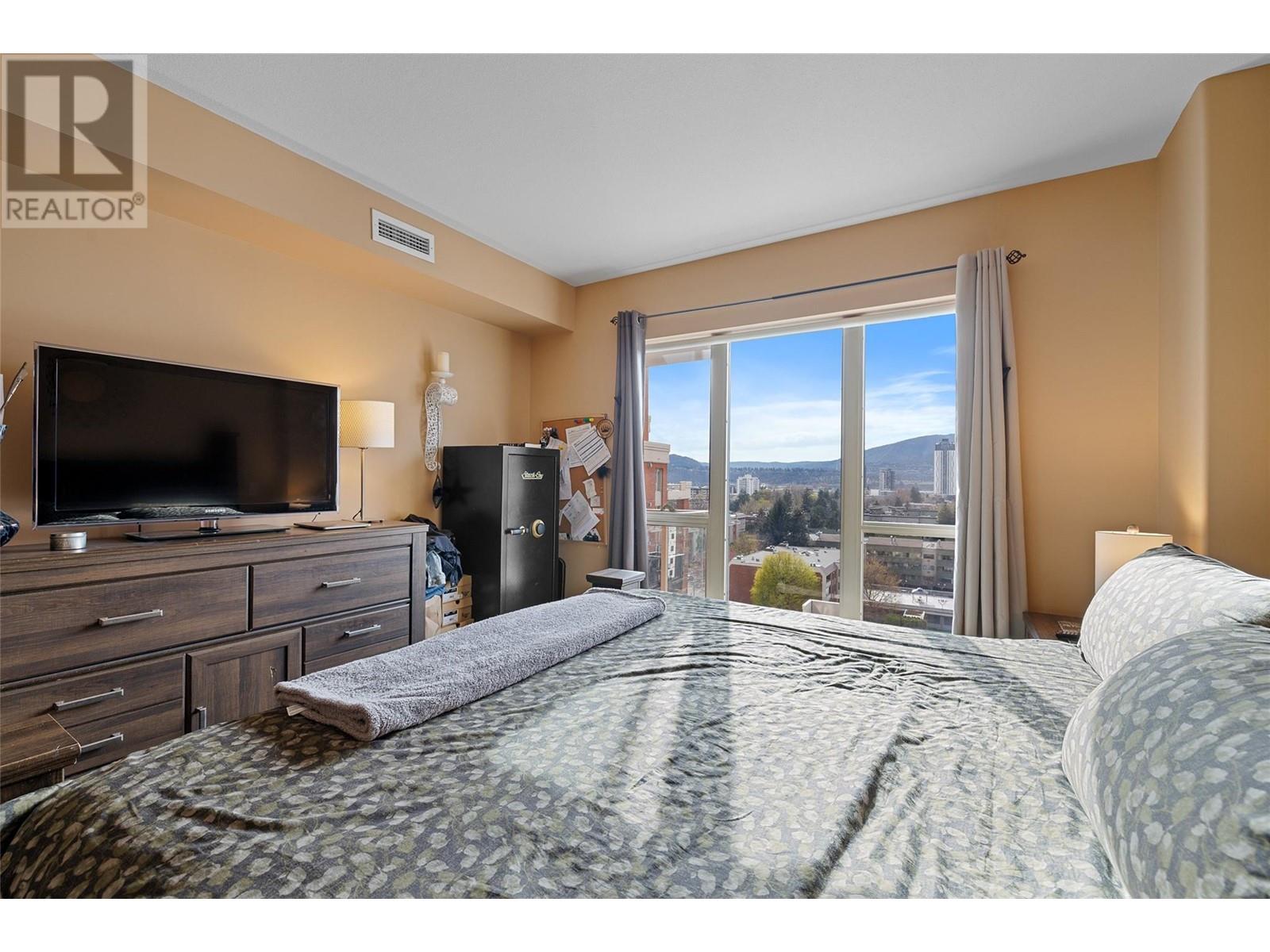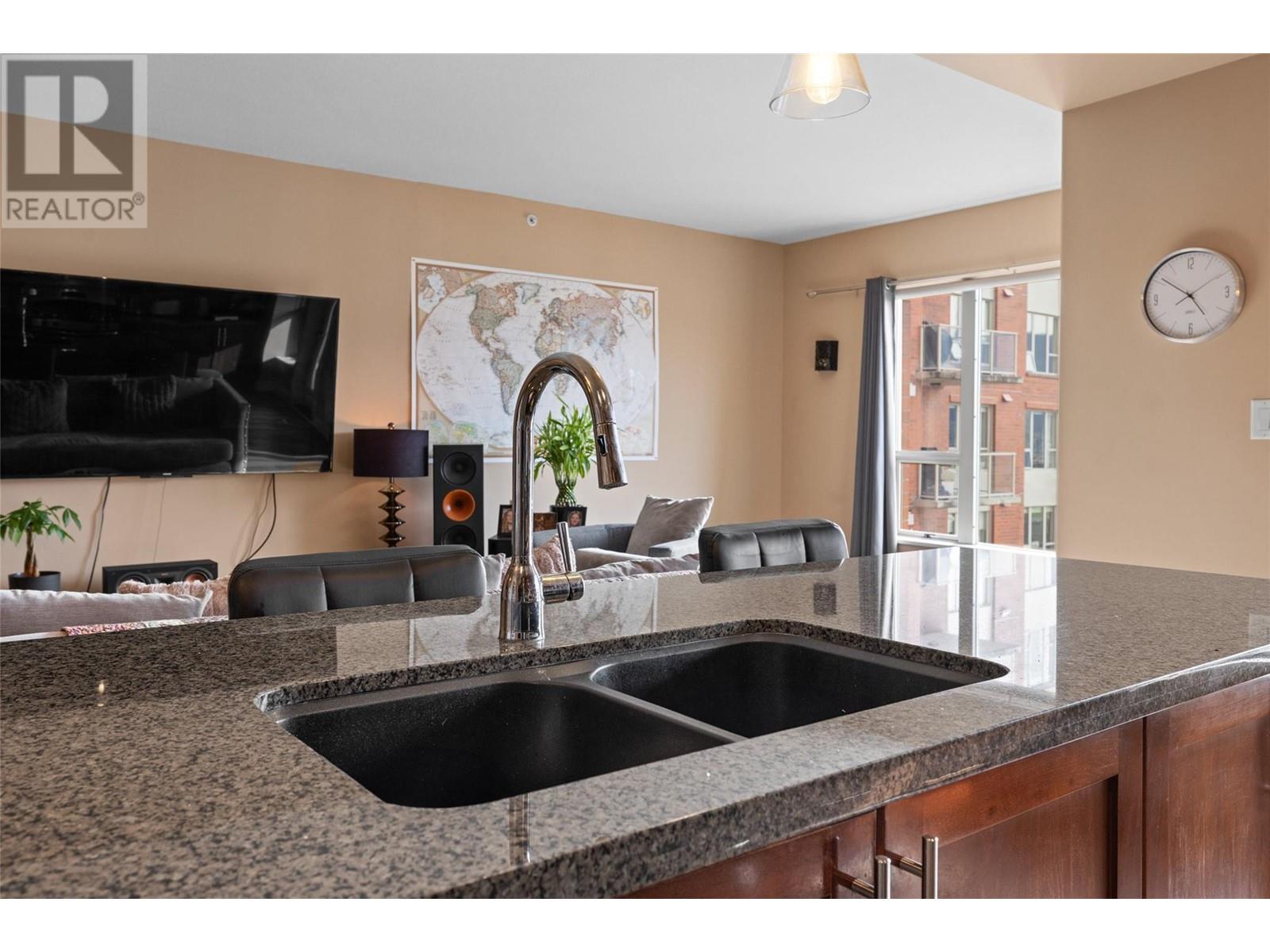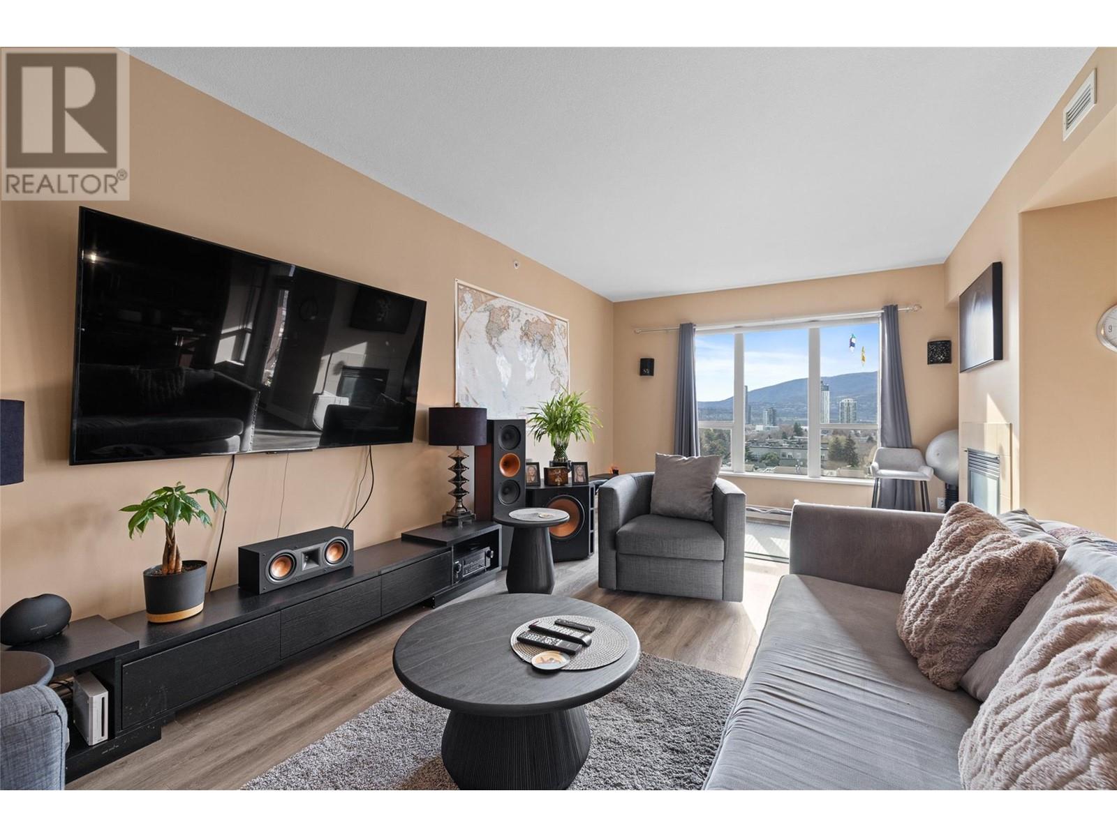 Experience vibrant urban living in this 2-bedroom residence featuring a split floor plan that includes a versatile open den, perfect for a home office. The spacious open-concept design includes a stylish kitchen with granite countertops, stainless steel appliances, and a gas stovetop. Enjoy lake and cityscape views from the generous living area, kitchen, and primary bedroom. The primary suite includes a walk-in closet and a 5-piece ensuite bathroom with a soaking tub, walk-in shower, and dual sinks. Step out onto your private covered balcony facing west, where you can bask in ample natural light. This exceptional unit also includes two secure underground parking spaces and a dedicated storage locker for additional storage needs. Discover the vibrant lifestyle at Centuria, which offers amenities such as an outdoor swimming pool, a hot tub, and a fully equipped fitness center. With grocery stores and various retail shops right at your doorstep and downtown just a leisurely bike ride or walk away, this location is perfect for those seeking both comfort and convenience. (id:58842)