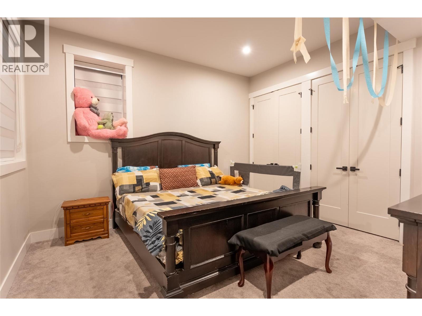Modern 6-bed, 6-bath home suited home in Black Mountain's private Mine Hill Lane! The main floor of this remarkable home features an airy open-concept layout, grand vaulted ceilings, large picture windows featuring stunning views sweeping East of Kirschner mountain to Okanagan Lake, cozy fireplace, elegant kitchen , large island with bar seating, beautiful quartz counters, tons of cabinets, spacious master suite abundance of south exposure windows with doors leading to the and wrap around patio, spa-like ensuite with glass shower, free-standing soaker tub, well-appointed main bathroom, office and extra bedrooms. 3-car garage & access to the large covered patio with glass railing to showcase those remarkable South and West facing views. The self-contained, legal lower-level suite is every bit as stunning as the main floors featuring 1-bedroom, 1-bathroom, laundry, access to yard & covered patio. There is also an additional 2-bedroom nanny suite downstairs for multi-generational living! (id:58842)