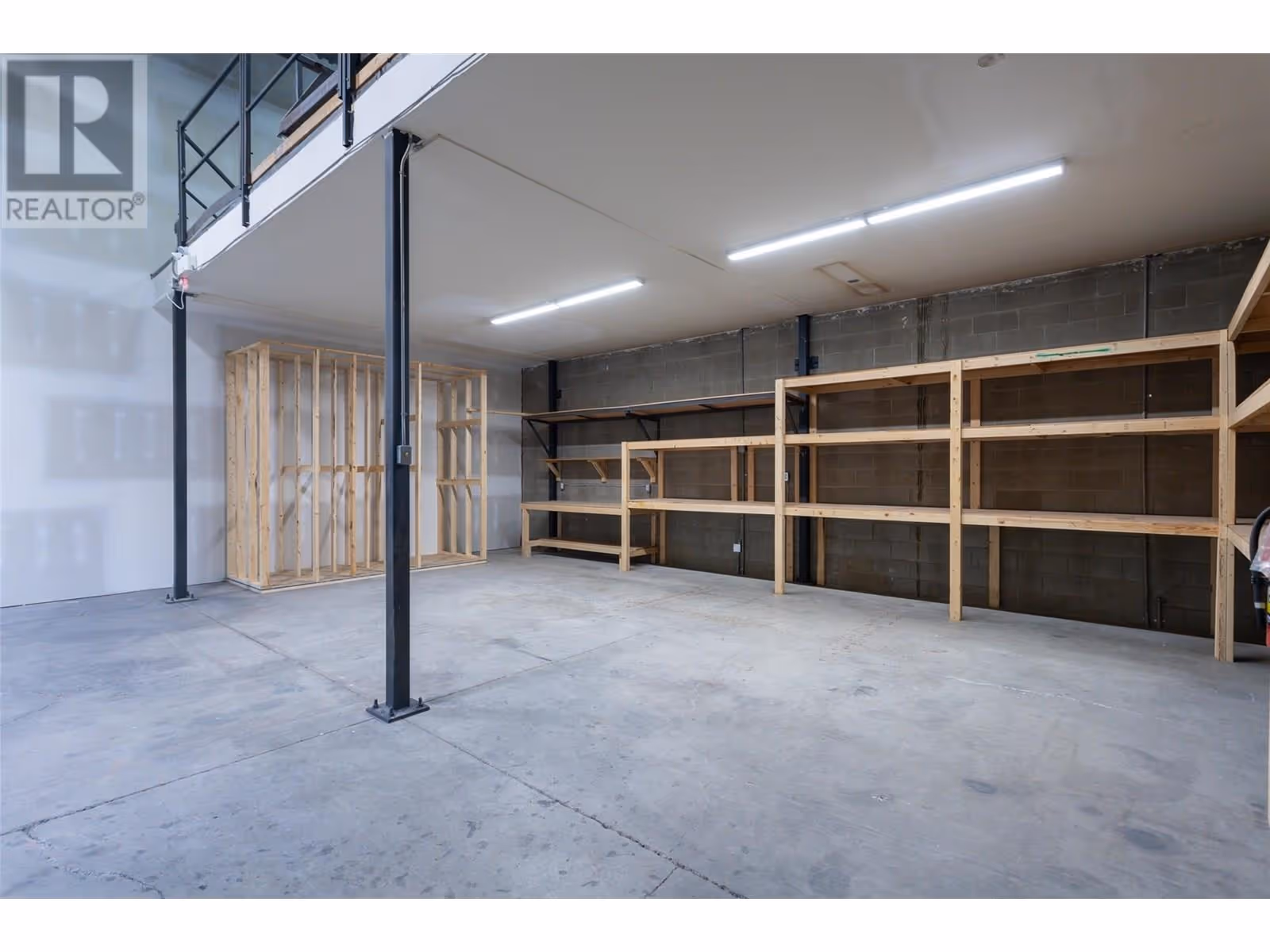 Public Remarks Excellent light industrial unit with concrete mezzanine, bathroom and office space. Unit has a compressor with good distribution lines. Large overhead door and two man doors on front of unit. Very easy and convenient access. Lease length 3 to 5 years. Heated via baseboards and overhead ceiling unit. (id:58842)