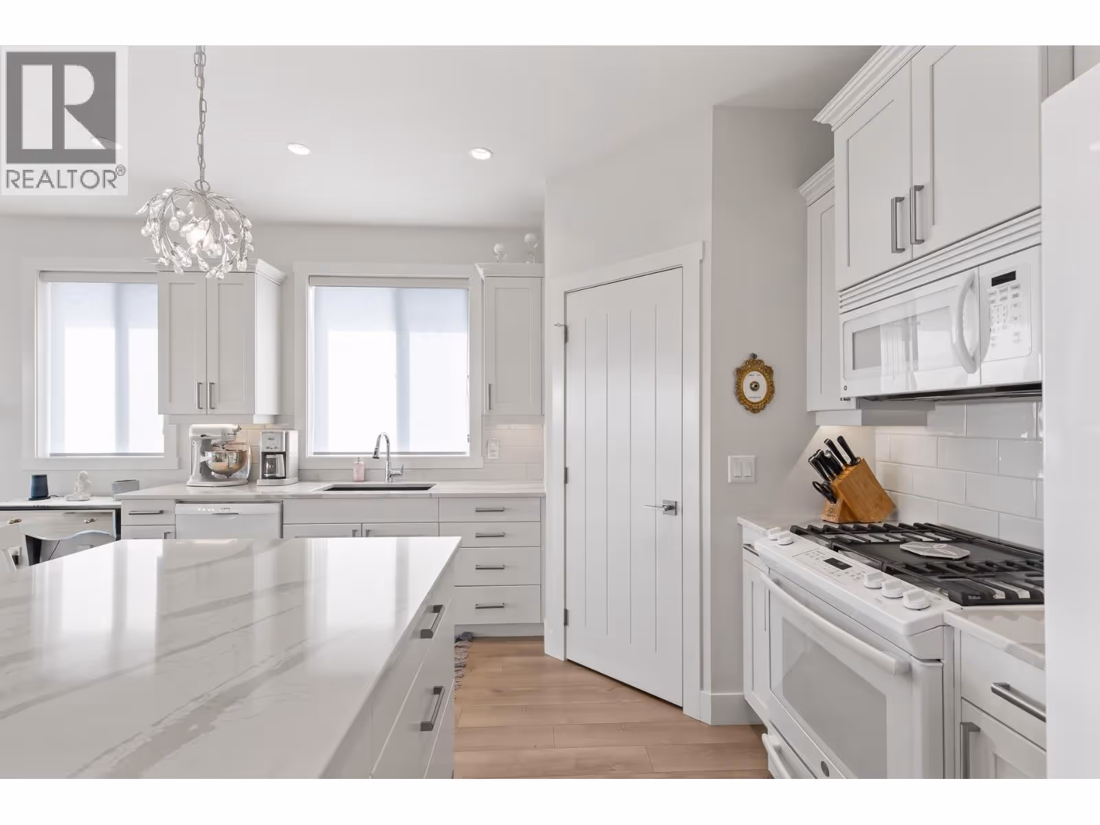 Gorgeous French Country inspired home, located in arguably the best location in sought after Tallus Ridge. This home checks all the boxes with like-new condition, lake and vineyard views, and a fantastic family layout. Upstairs features 3 bedrooms and 2 full bathrooms, room for the entire family! Enter the gorgeous white kitchen, with eat in bar, gas stove, quartz countertops, pantry and stunning appliance package. The living area is spacious and bright with gas fireplace and picturesque windows framing the vineyard and lake views. Relax on the oversized covered deck, while savouring in the privacy and stunning views. The back yard is fully fenced and perfect for kids, pets or gardening. Downstairs you will find a large office or 4th bedroom, laundry room, rec room with plumbing in place to add a kitchen or wet bar, 2 additional bedrooms and another full bathroom. This home can easily be suited (2 bedroom suite) with the addition of a door and kitchen. Additional upgrades include Hot Water on Demand, extended back patio, extra parking, epoxy garage floor, new lighting, ICF block insulation, HRV and Humidifier. Live in beautiful, sought after Tallus Ridge with Hiking, Golf, and Shannon Lake Park at your door. This home is truly in brand new condition and move in ready; save the GST and purchase almost new instead! (id:58842)