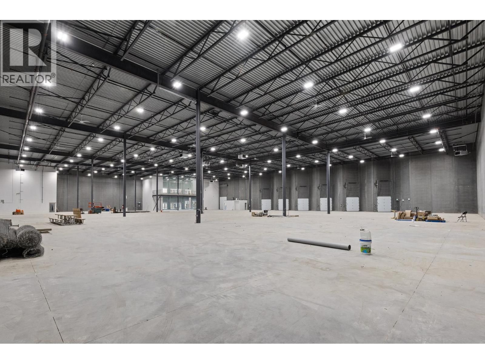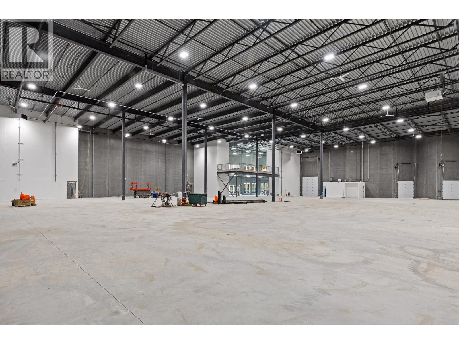 Exceptional opportunity to lease a premium industrial facility in the highly sought-after Kyle Road Business Park in West Kelowna. This standalone building offers approximately 45,785 SF, including a 42,931 SF warehouse and 2,855 SF mezzanine, ideal for distribution, warehousing, and light industrial users. Featuring 32’ clear ceilings, the property offers excellent cubic capacity, along with six dock doors with hydraulic levelers and one 12’ x 14’ grade-level door for efficient loading. The building is equipped with 400-amp, 600V, 3-phase power, ESFR sprinklers for high-clearance storage, and polished concrete floors (500 lbs/sf load capacity). Additional features include a functional mezzanine, accessible ground-floor washroom, 23 parking stalls, LED lighting, and provisions for future HVAC and EV charging. Ideally located with convenient access to major transportation routes, this is a rare opportunity to secure large-format industrial space in a premier West Kelowna business park. (id:58842)