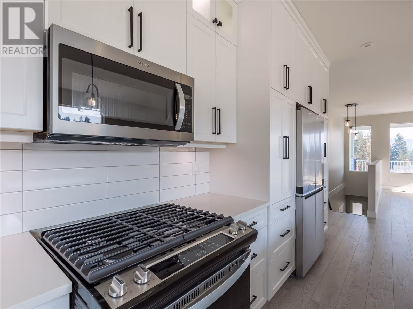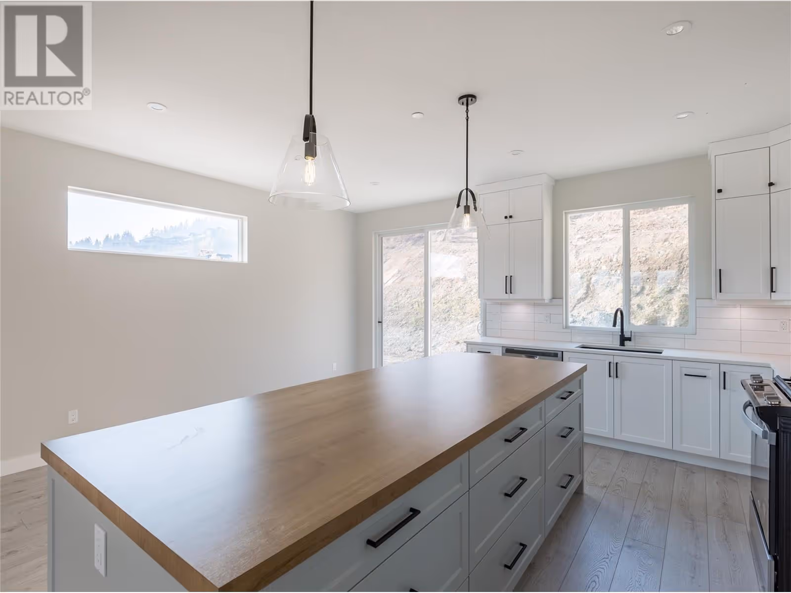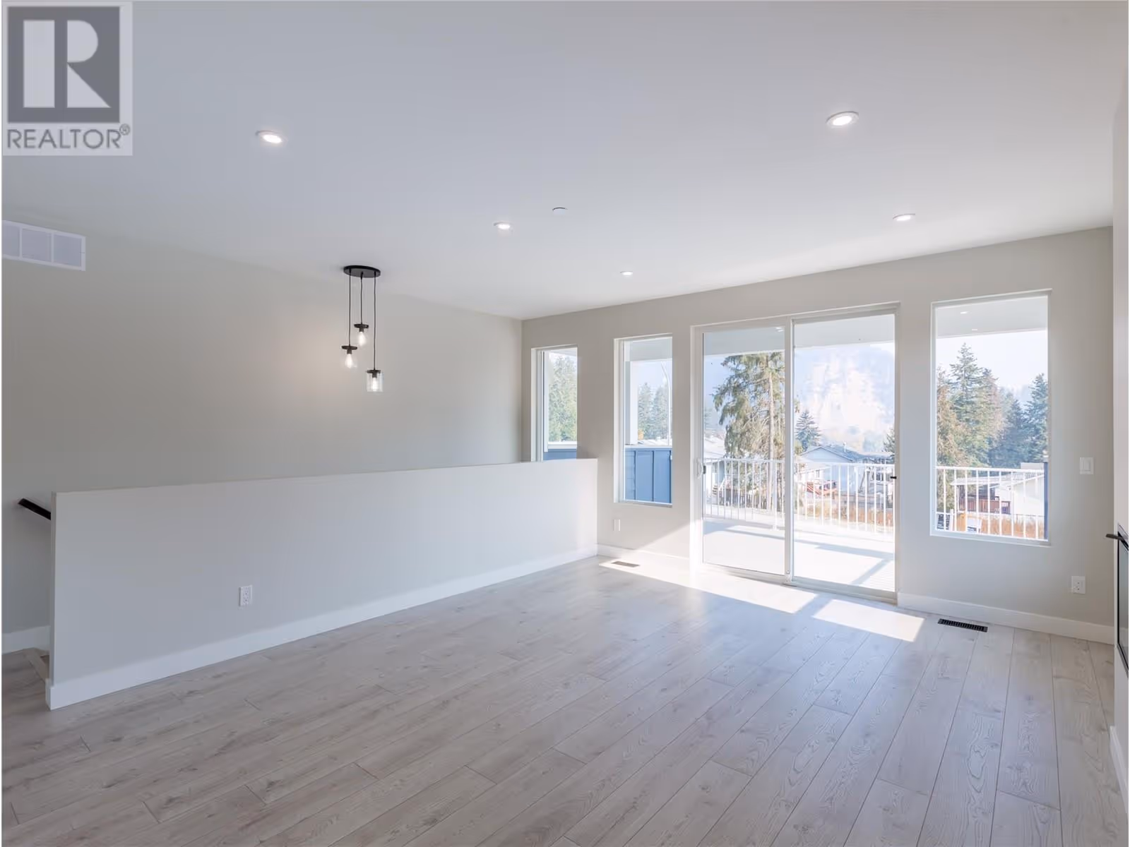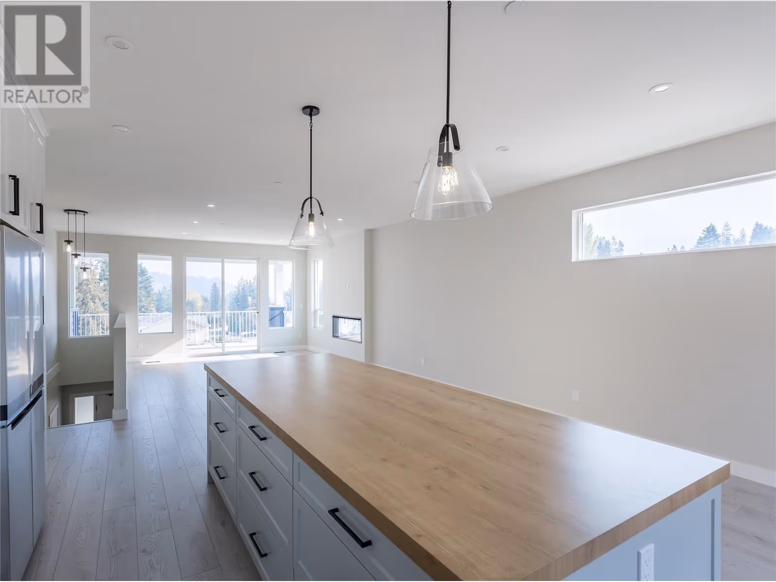 Priced for a Quick Sale! Stunning 4-bedroom, 3-bathroom home is beautifully designed with high-end interior details and nestled in a newly developed area of Lumby. Income potential! Includes in-law suite with a separate entrance. On the main level, you'll find a cozy den—perfect for a home office—leading into a spacious great room that seamlessly connects to the kitchen, featuring custom cabinetry, an open-concept design, and large windows. The main-floor bedroom boasts a walk-in closet. Upstairs, enjoy another open-concept living space with a stylish kitchen, custom cupboards, a butcher block island, and a dining area that opens to a covered deck with scenic views. This level also includes two bedrooms and a luxurious primary suite with a walk-in closet, ensuite, and heated bathroom flooring. Outside, new landscaping surrounds the home, leading to the backyard and private entrance to the in-law suite. Located in a welcoming neighborhood, this home is close to elementary and high schools and just minutes from hiking, dirt biking, and snowmobiling trails. Experience the best of small-town living in Lumby, a peaceful retreat only 25 minutes from Vernon. (id:58842)