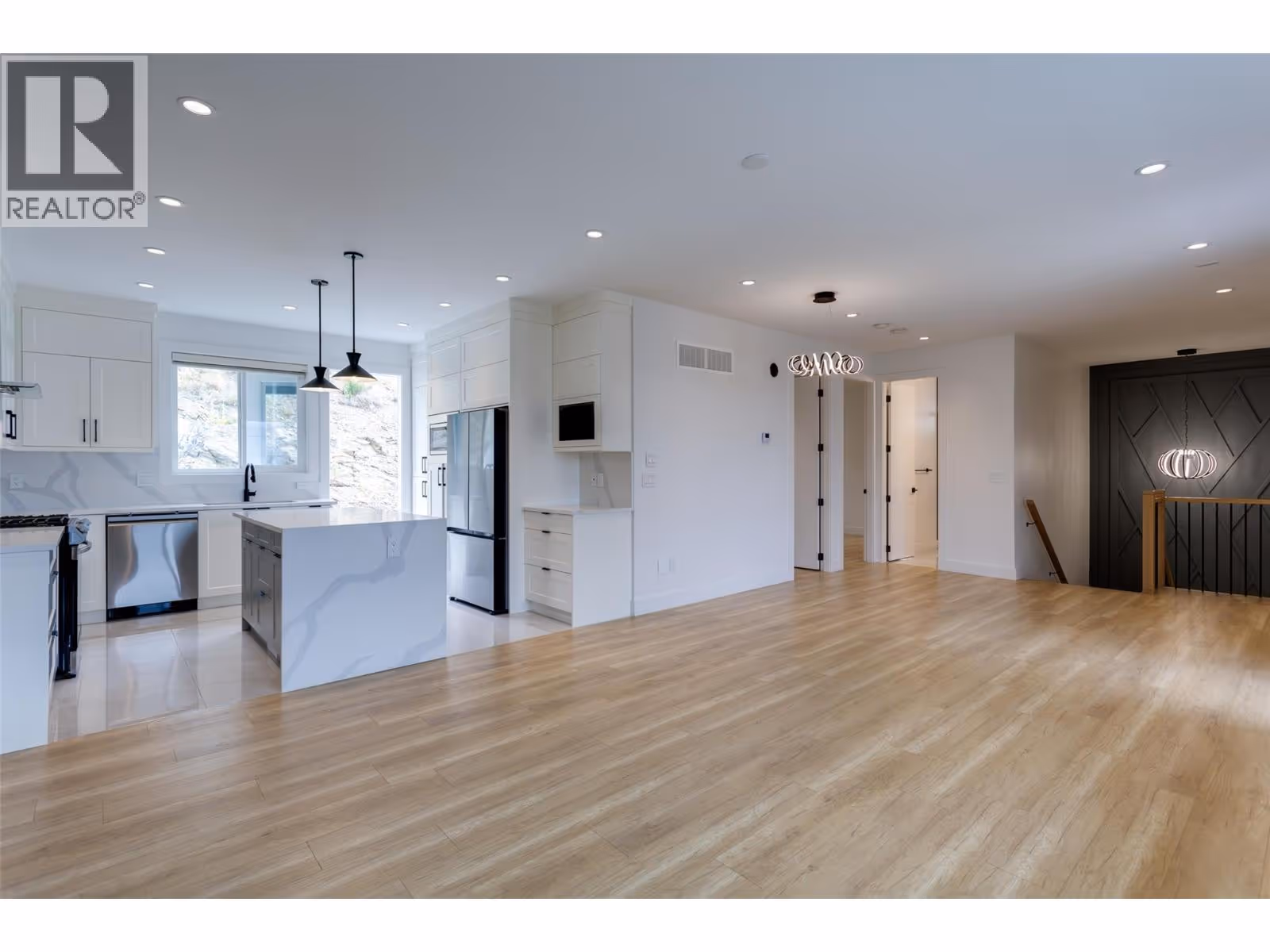 Welcome to this beautifully designed 5-bed, 4-bath two-storey home in the heart of Smith Creek — a family-friendly neighbourhood known for its natural beauty, peaceful surroundings, and in close proximity to West Kelowna Centre. This new home delivers the perfect blend of functionality and flexibility for growing families, multigenerational living, or those in need of a mortgage helper. The main upper level features bright airy, open-concept living space, complete with s/s appliances, a stylish kitchen with Quartz countertops and a cosy gas Fireplace. Also, access to the spacious, east-facing covered deck with sweeping valley views and peekaboo lake glimpses. 3 beds on this level, including a spacious primary suite with walk-in closet and 4-piece ensuite bath, provide ideal separation and privacy for family living. Downstairs, the walk-in main level includes a guest bedroom with its own ensuite—perfect for visiting family or Airbnb potential with its private side entrance. A legal 1-bedroom suite offers a sleek open floor plan, separate laundry, separate heating and private entry—ideal for rental income or extended family. Convenient low-maintenance backyard, double garage, and quiet streets ideal for kids. Just minutes from top-rated schools like Shannon Lake Elementary, beautiful walking trails, shopping, restaurants, golf, beaches & West Kelowna’s wineries. Price plus GST. Quick possession is available.Note: Photos with furniture are virtually staged.. (id:58842)