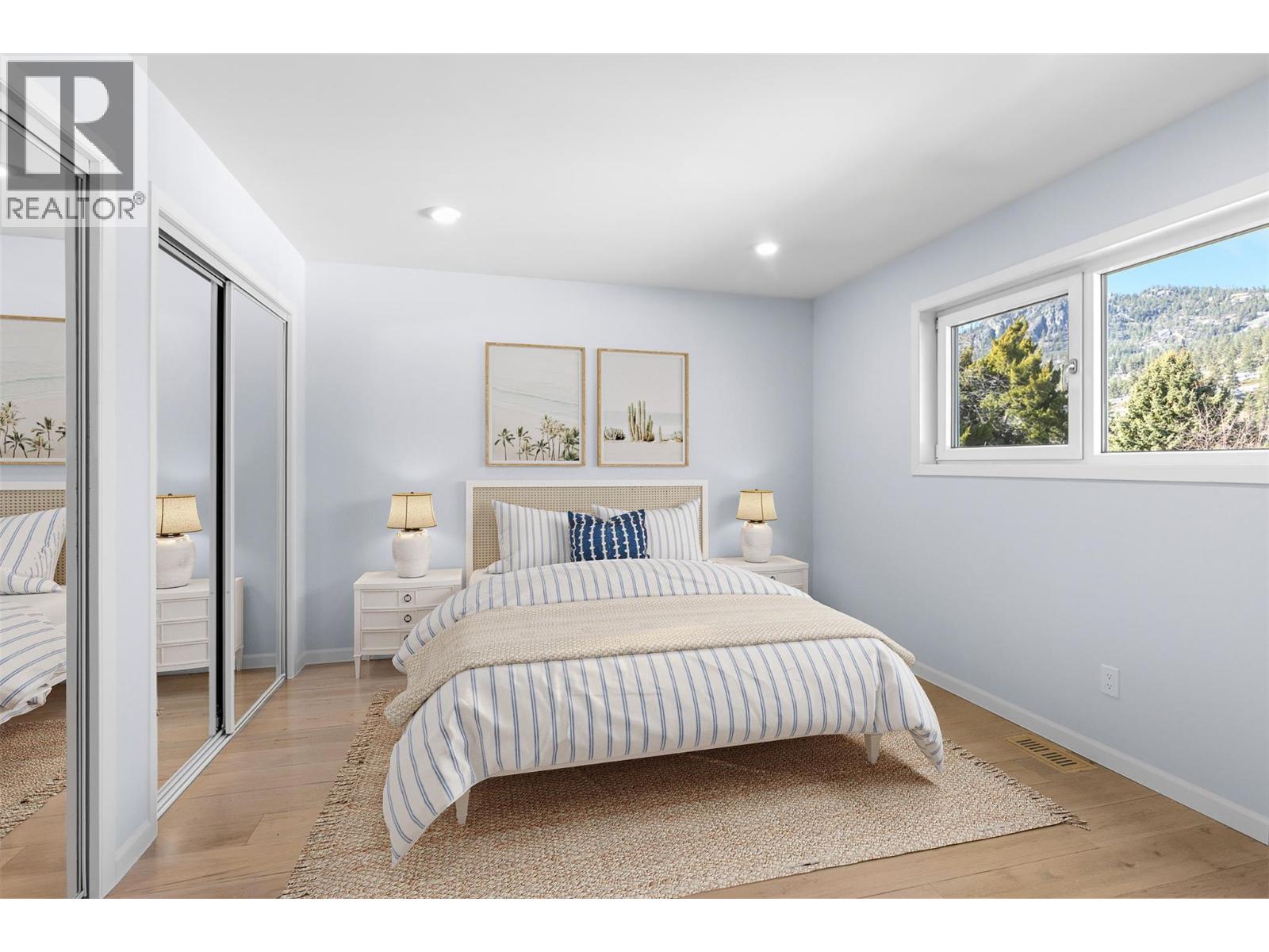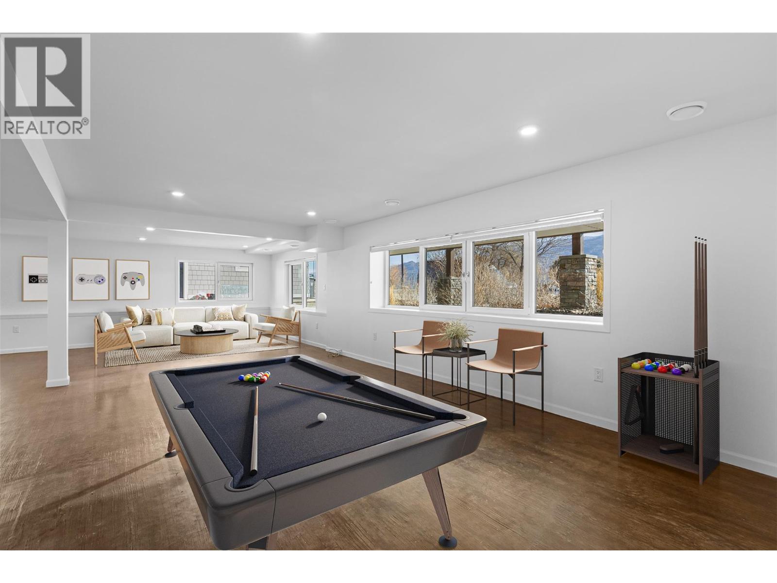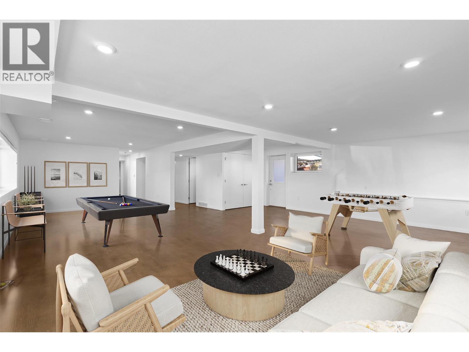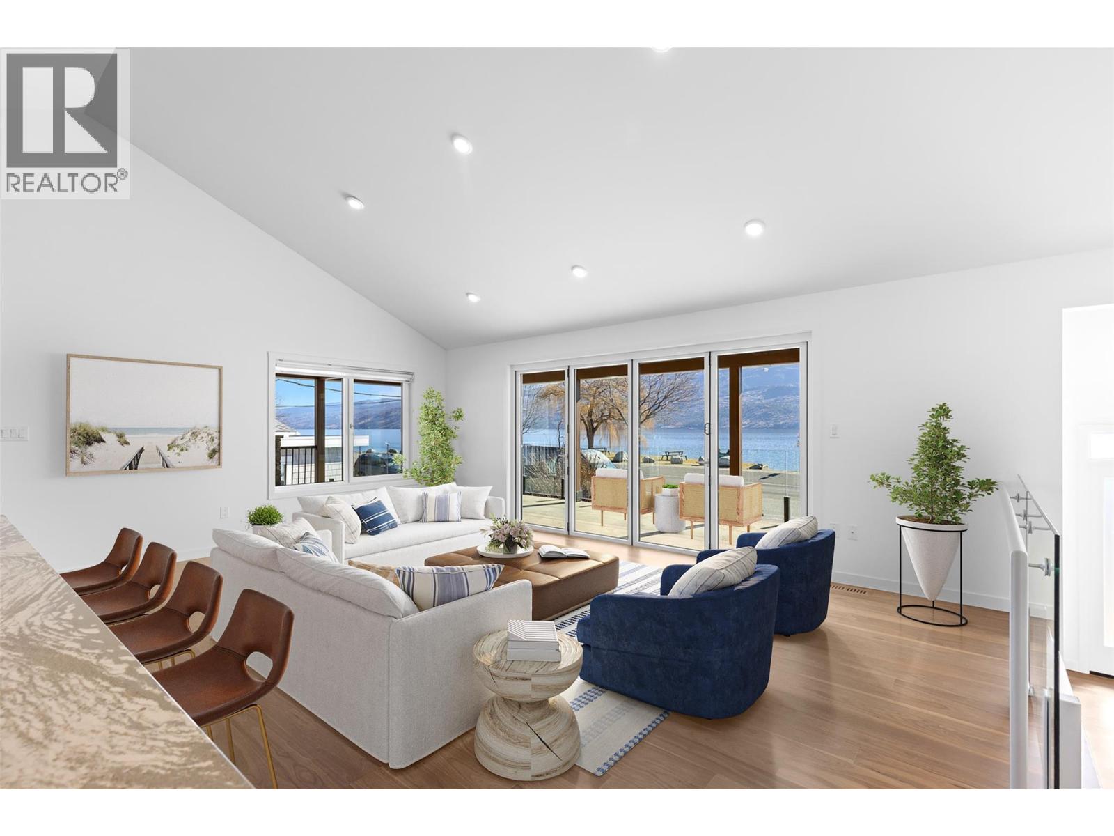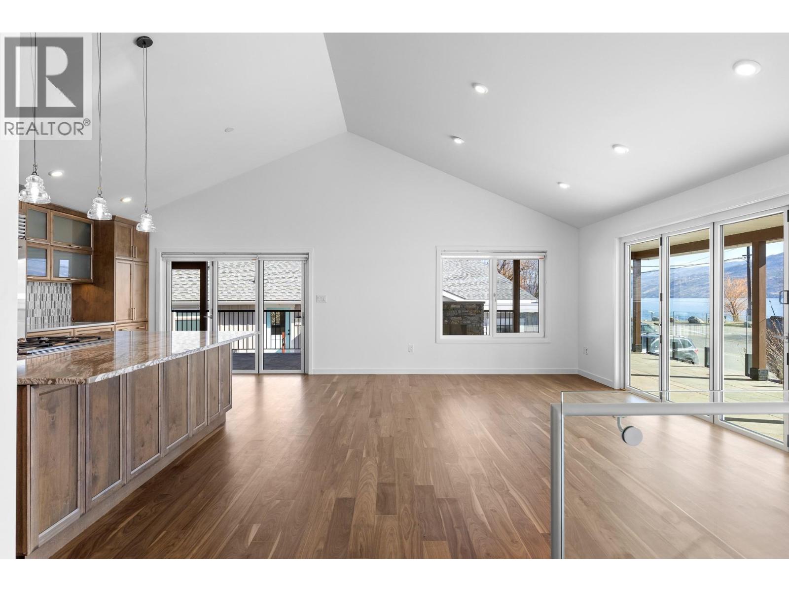 Rare semi-waterfront opportunity on prestigious Beach Avenue, directly across from Okanagan Lake, offering exceptional lake views and the ultimate Okanagan lifestyle. This thoughtfully designed residence captures stunning lake views and offers open-plan living with seamless indoor-outdoor living through multiple expansive glass bi-folding doors that open onto a covered deck with gas fireplace, stamped concrete, and glass railings. The custom kitchen features Miele appliances, Sub-Zero fridge, gas cooktop on a large quartz island, and vaulted ceilings above recently refinished walnut hardwood floors throughout the main living area. The primary retreat offers folding glass doors to a private lakeview deck, walk-in closet, and dream ensuite with custom concrete-finished shower. The bright lower level features a huge family room, two additional bedrooms (one with walk-in closet), full laundry, abundant windows, and space to create a fourth bedroom plus an office or gym. Above the oversized heated 29x29 double garage sits a 900 sq/ft legal one-bedroom suite with high ceilings, private laundry, folding glass doors to its own deck, and incredible lake views—ideal for guests, family, or rental income. Flat lot with flat driveway parking for up to eight vehicles and low-maintenance zeroscape landscaping. A rare Beach Avenue offering with lake views, a legal suite, and exceptional parking—delivering the complete Okanagan lifestyle just steps from the lake. (id:58842)