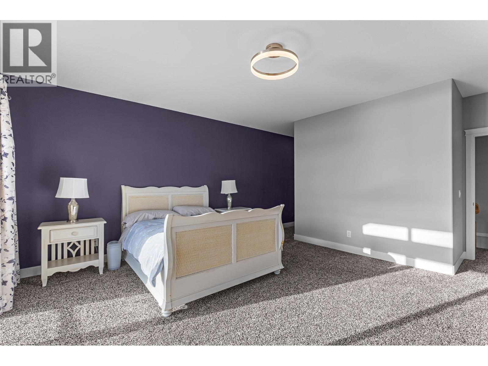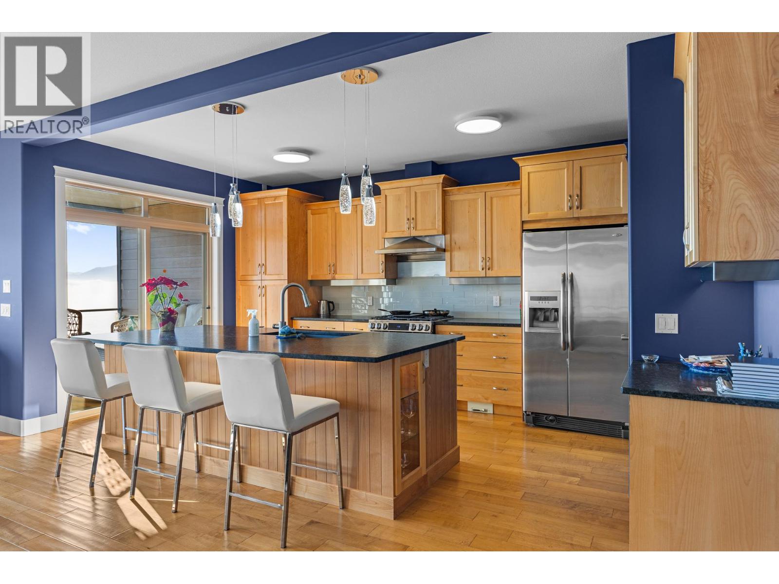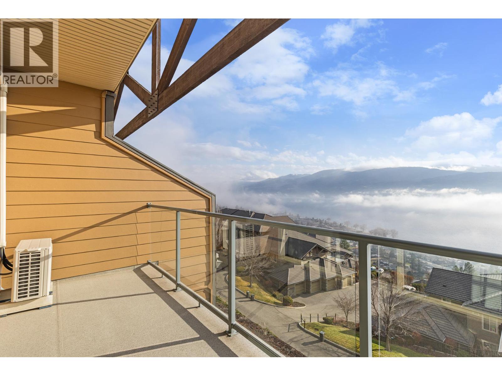 Beautiful 3 bedroom, 2 bathroom ""OWL"" layout in Eagles View development, perched above Peachland town and waterfront with an amazing sweeping lakeview towards Kelowna and south towards Penticton... 1892 sq ft finished, a primary suite on the upper level 672 sq ft with a customized walk-in closet and an ensuite you will not want to leave. The additional two bedrooms are on the main level. Many professional upgrades include LED lighting, wine cooler, massive kitchen island/eating bar with granite counters, high-end appliances, Fujitsu ventless air-conditioning system, gas fireplace with a feature stone facade, gas hook-up for BBQ, gas stove. There is an amenities area with a well equipped gym, media room, kitchen to book for large gatherings. Private single garage with extra paring for a boat or RV. Pets allowed one dog or one in-door cat. (id:58842)