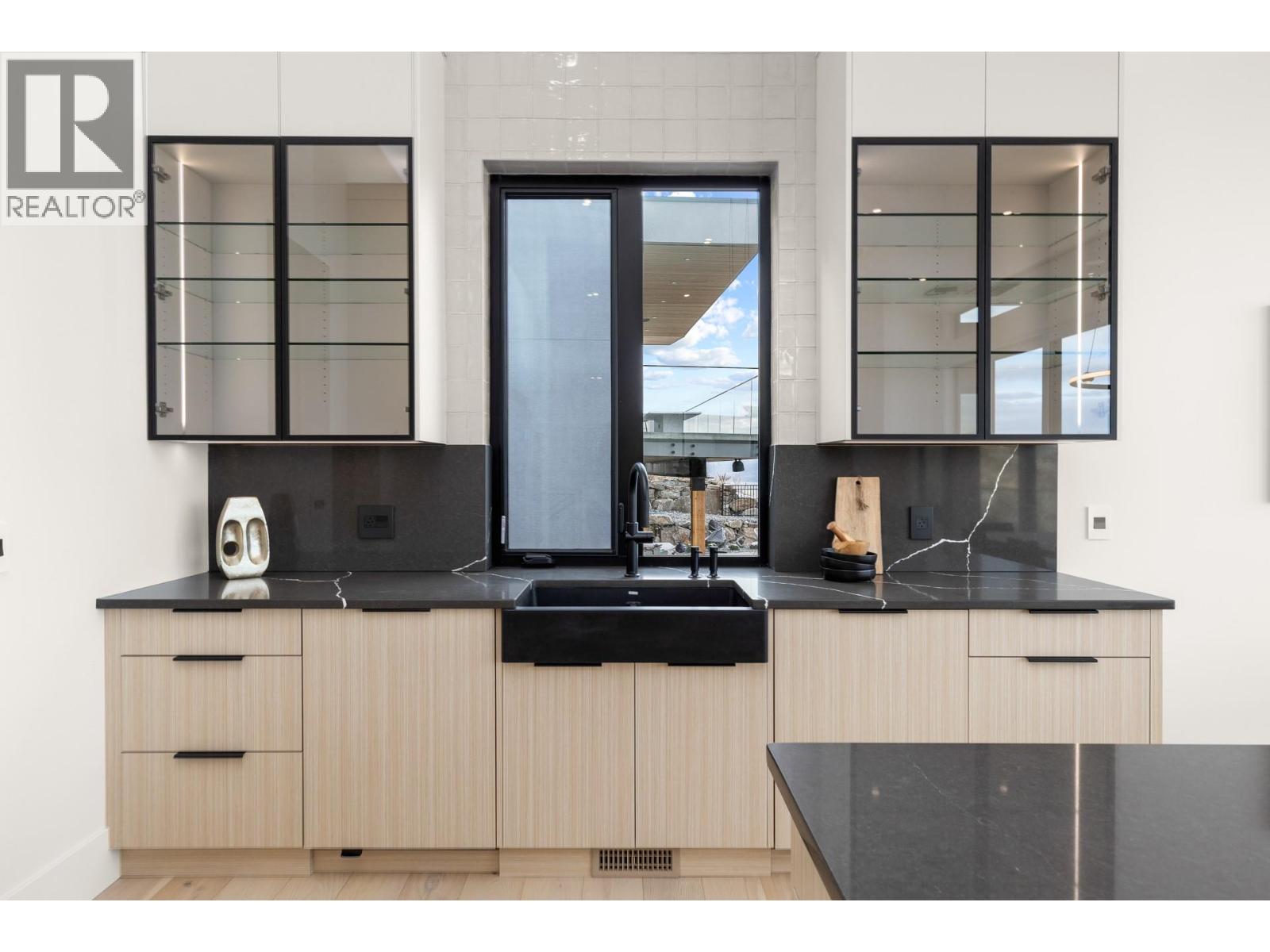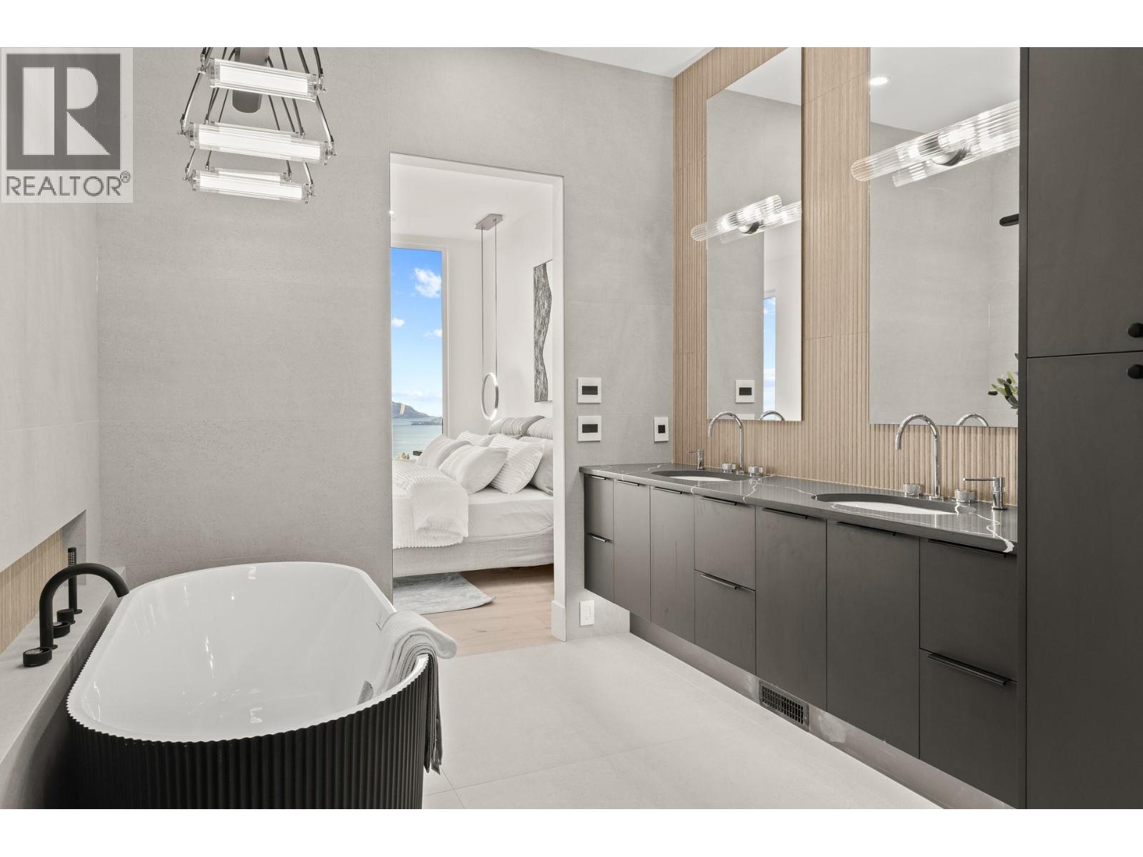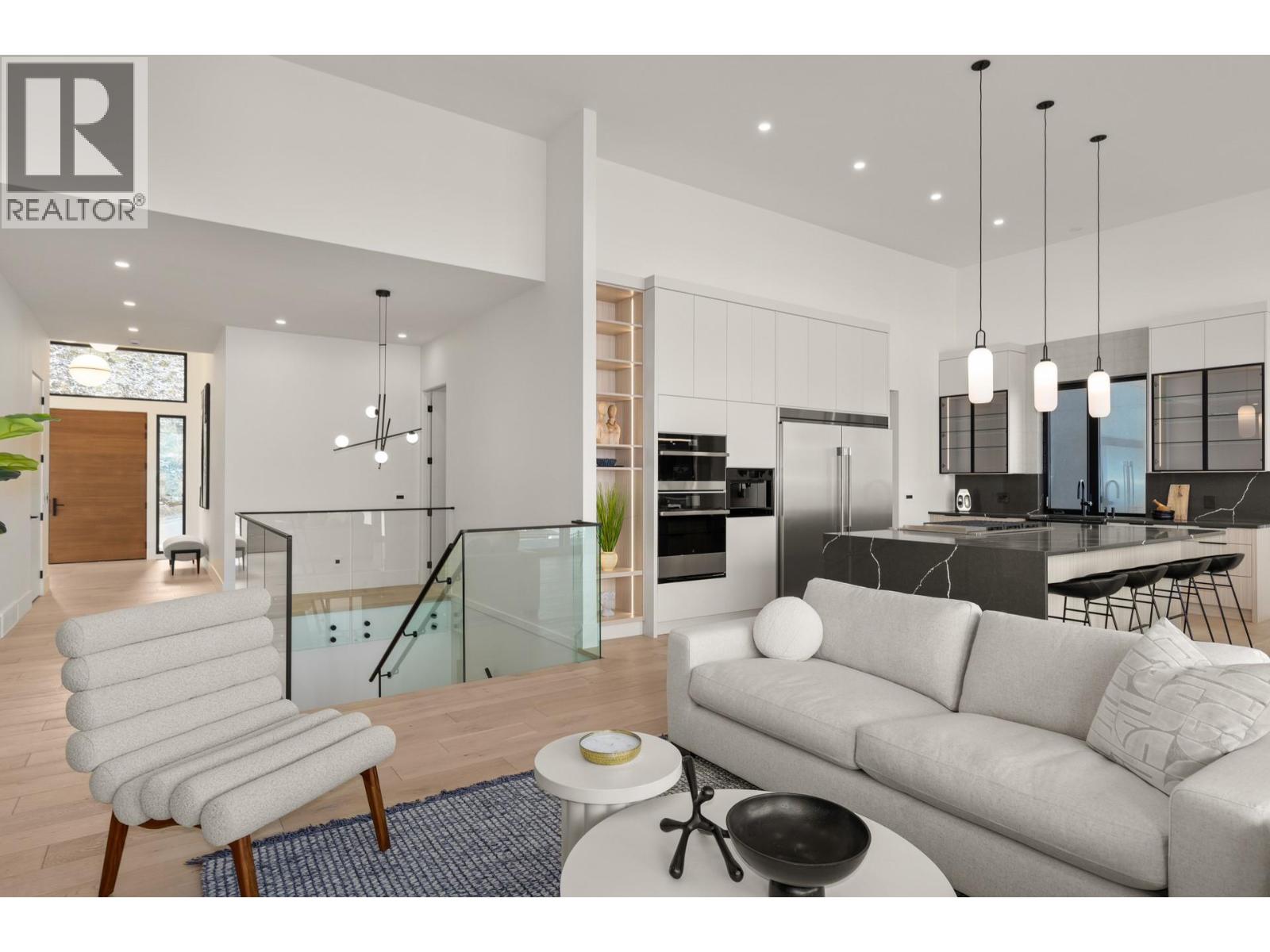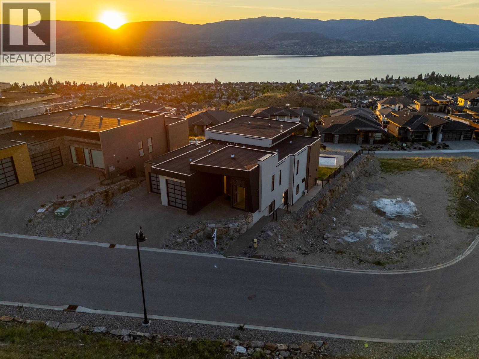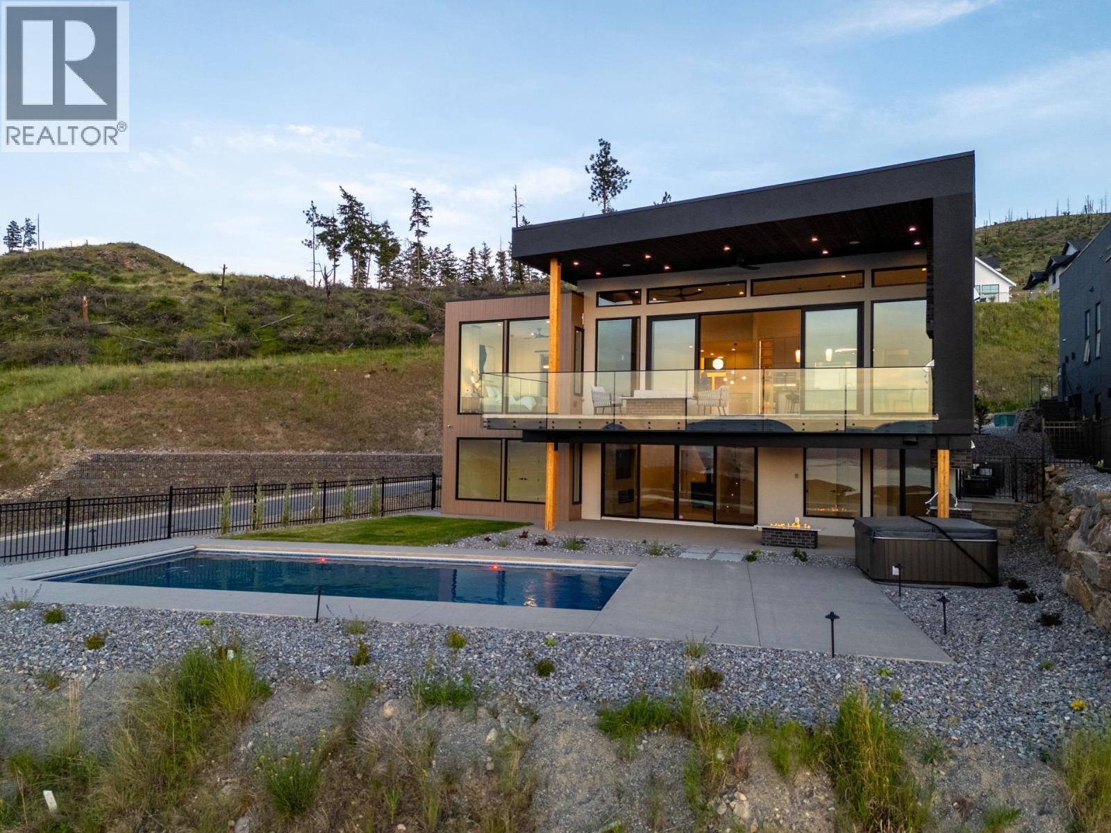 Experience modern Okanagan luxury in this brand-new custom-built walkout rancher, designed to impress with striking architecture, high-end finishings, and breathtaking lake, sunset, and city views. This home seamlessly blends contemporary elegance with functional design, delivering an unmatched indoor-outdoor lifestyle. The open-concept main level is highlighted by floor-to-ceiling sliding doors that expand to a spacious covered patio, complete with built-in BBQ, fire table, and panoramic views. The chef’s kitchen is a showstopper with premium Jennair appliances including a 6-burner gas cooktop, built-in oven, full-size fridge/freezer, double dishwashers, and built-in coffee station. A walk-through pantry connects directly to the laundry room and heated garage for everyday convenience. The luxurious primary bedroom features spa-inspired ensuite with fluted freestanding tub, steam shower, and large walk-in closet. A private office and a designer guest powder room with preserved moss wall and onyx sink complete the main level. Downstairs is designed for entertaining, opening directly to your backyard oasis with 16x32 pool (with auto cover), hot tub, and a second built-in BBQ area. Inside, enjoy the wet bar, theater room, gym with sports flooring, and ample storage. The legal 1-bedroom suite (option for a 2nd bdrm) offers flexibility for guests or rental income. Oversized heated garage features epoxy floors, an 11-foot door for RV or boat access, and roughed-in A/C. (id:58842)