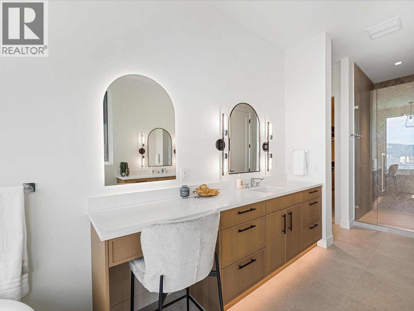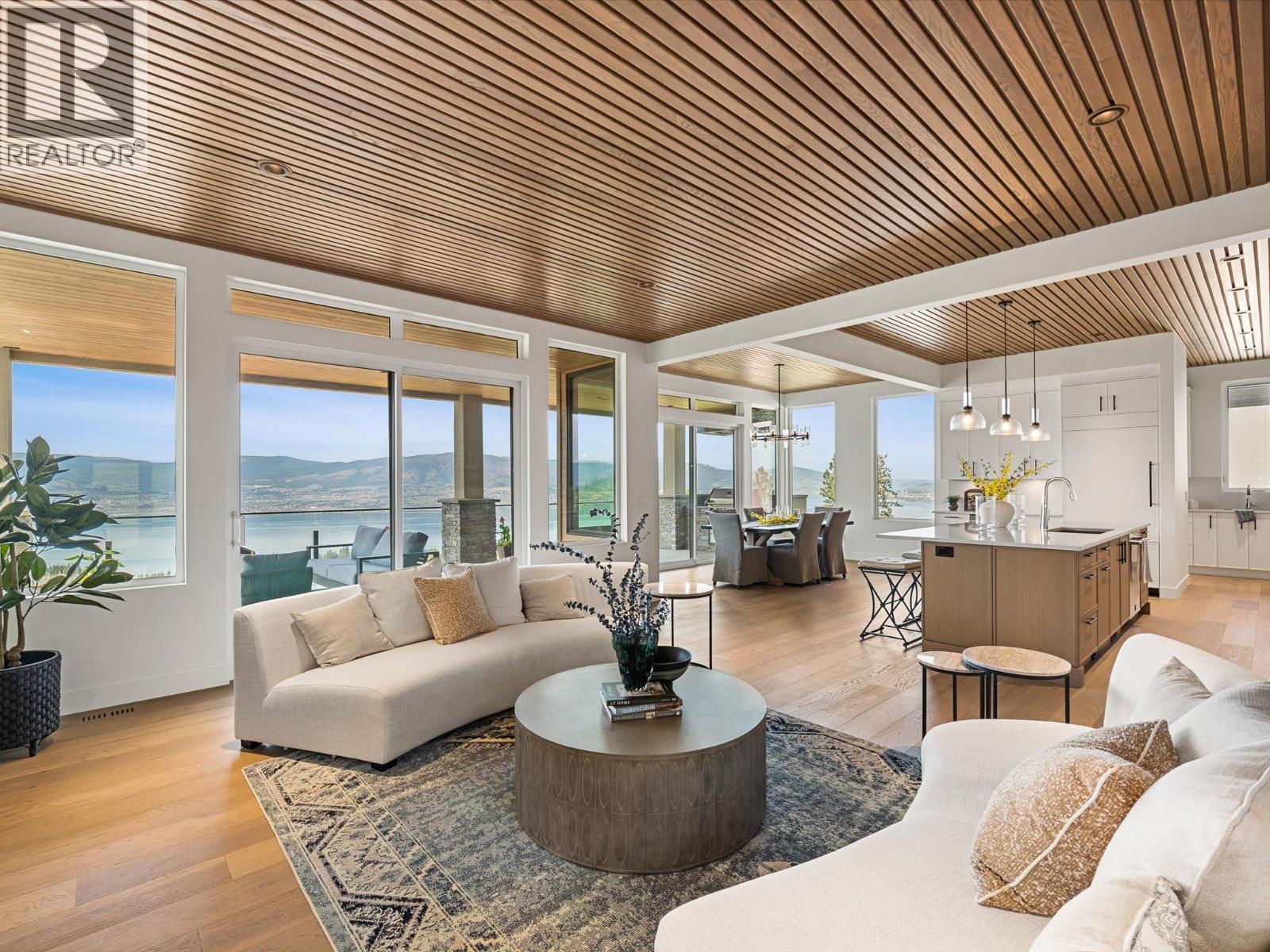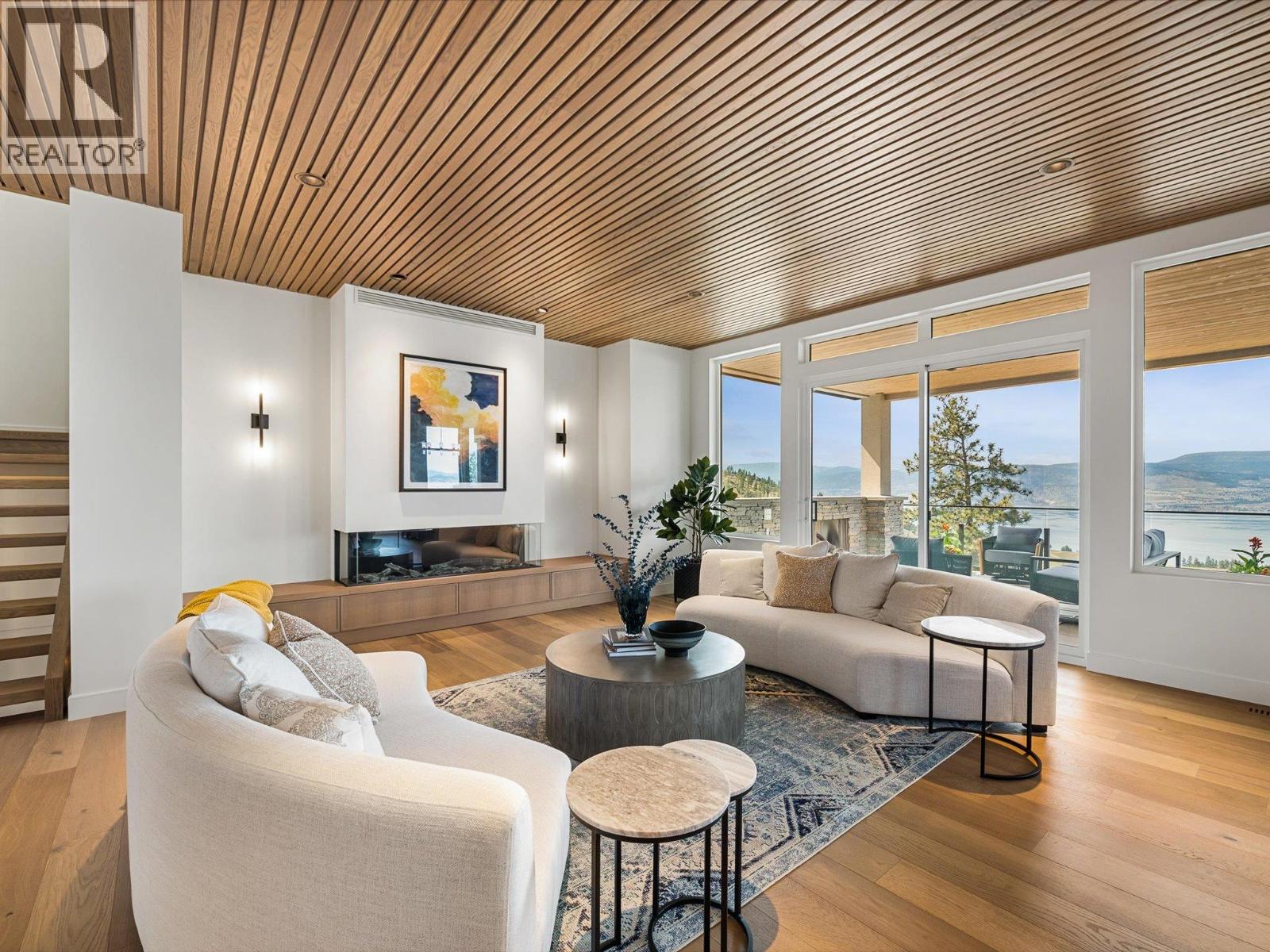 Set within an exclusive gated community, this home combines exceptional craftsmanship with sweeping lake and city views. Built by Lakehouse Custom Homes, every inch of this home reflects thoughtful design and execution, from hardwood flooring throughout to the custom milled oak ceiling in the living areas. Triple-pane windows fill the home with natural light and frame the view, while 10ft ceilings and a 20ft vaulted entry add scale. Built to Step Code 3, with smart multi-zone HVAC and gas fireplaces for year-round comfort. Upstairs, the office brings “work from home” to a whole new level. The kitchen is refined and highly functional, with JennAir appliances, two ovens, a steamer, quartz backsplash, a large island, and open connection to living spaces. The primary suite offers a spa-inspired ensuite and walk-in closet with custom cabinetry. Downstairs continues to impress with a wine cellar, wet bar, second laundry room, and gym pre-wired for a golf simulator and sauna. Outside, the heated saltwater pool, Wi-Fi irrigation, landscape lighting, and walkout patio extend the home outdoors, while the covered balcony with built-in BBQ and gas fireplace captures the lake and city outlook. A triple garage with epoxy floors pre-wired for EV charging, plus extra parking across the private road completes this impressive property in one of the city’s most exclusive enclaves, surrounded by lake views, regional parks, trails, and the quiet atmosphere that makes this setting so sought after. (id:58842)