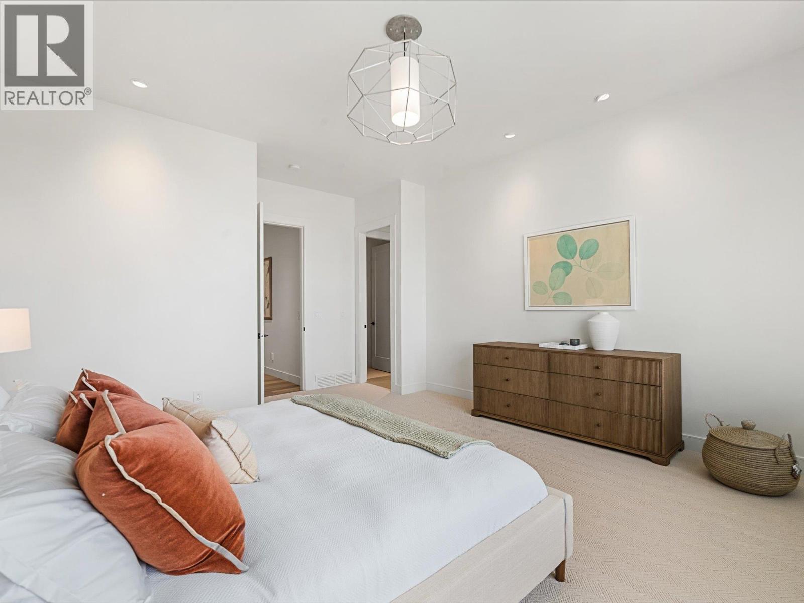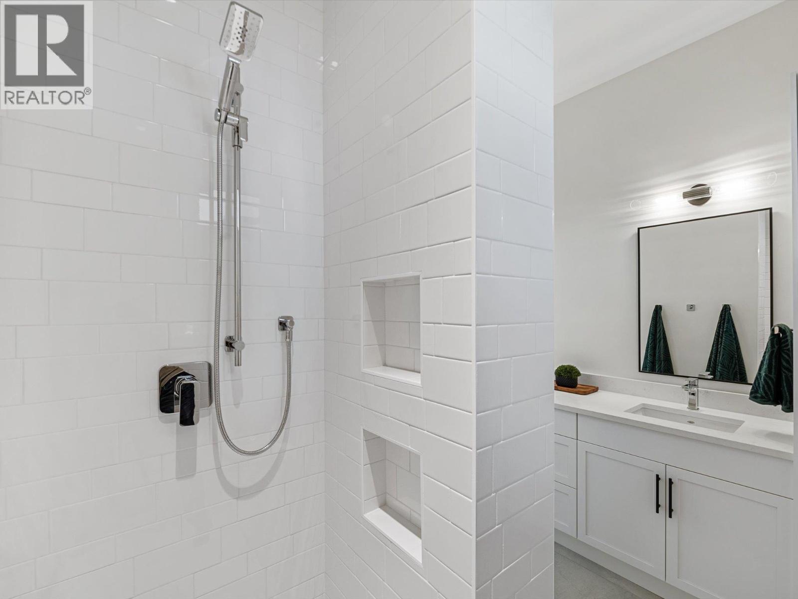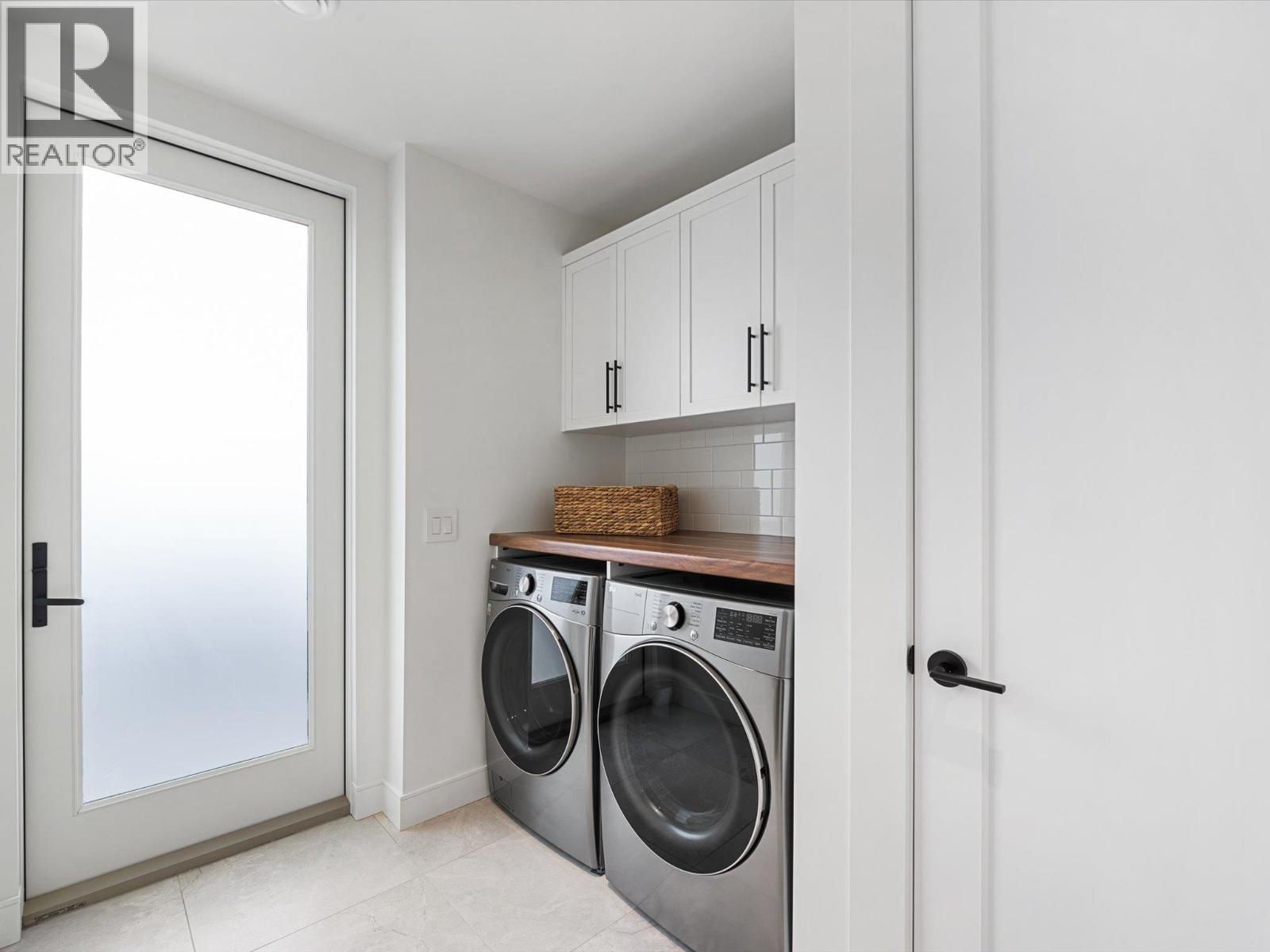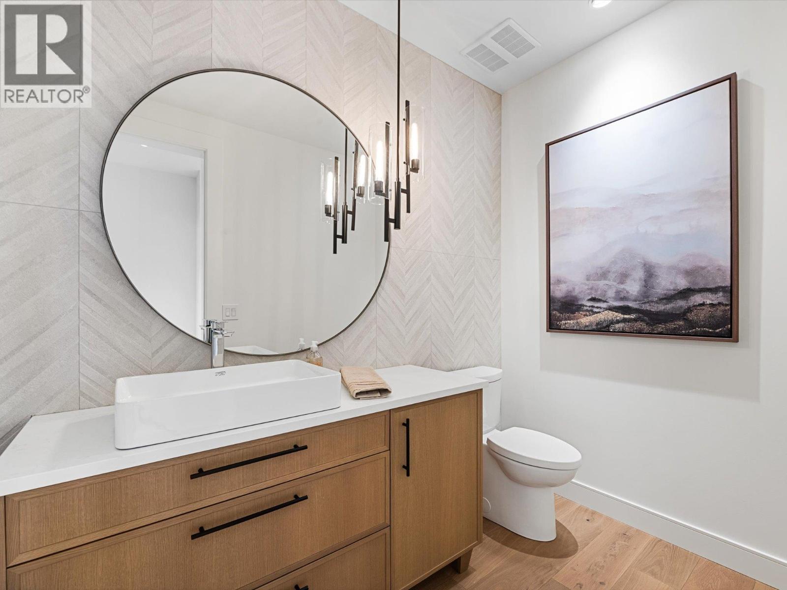 Set within an exclusive gated community, this home combines exceptional craftsmanship with sweeping lake and city views. Built by Lakehouse Custom Homes, every inch of this home reflects thoughtful design and execution, from hardwood flooring throughout to the custom milled oak ceiling in the living areas. Triple-pane windows fill the home with natural light and frame the view, while 10ft ceilings and a 20ft vaulted entry add scale. Built to Step Code 3, with smart multi-zone HVAC and gas fireplaces for year-round comfort. Upstairs, the office brings “work from home” to a whole new level. The kitchen is refined and highly functional, with JennAir appliances, two ovens, a steamer, quartz backsplash, a large island, and open connection to living spaces. The primary suite offers a spa-inspired ensuite and walk-in closet with custom cabinetry. Downstairs continues to impress with a wine cellar, wet bar, second laundry room, and gym pre-wired for a golf simulator and sauna. Outside, the heated saltwater pool, Wi-Fi irrigation, landscape lighting, and walkout patio extend the home outdoors, while the covered balcony with built-in BBQ and gas fireplace captures the lake and city outlook. A triple garage with epoxy floors pre-wired for EV charging, plus extra parking across the private road completes this impressive property in one of the city’s most exclusive enclaves, surrounded by lake views, regional parks, trails, and the quiet atmosphere that makes this setting so sought after. (id:58842)