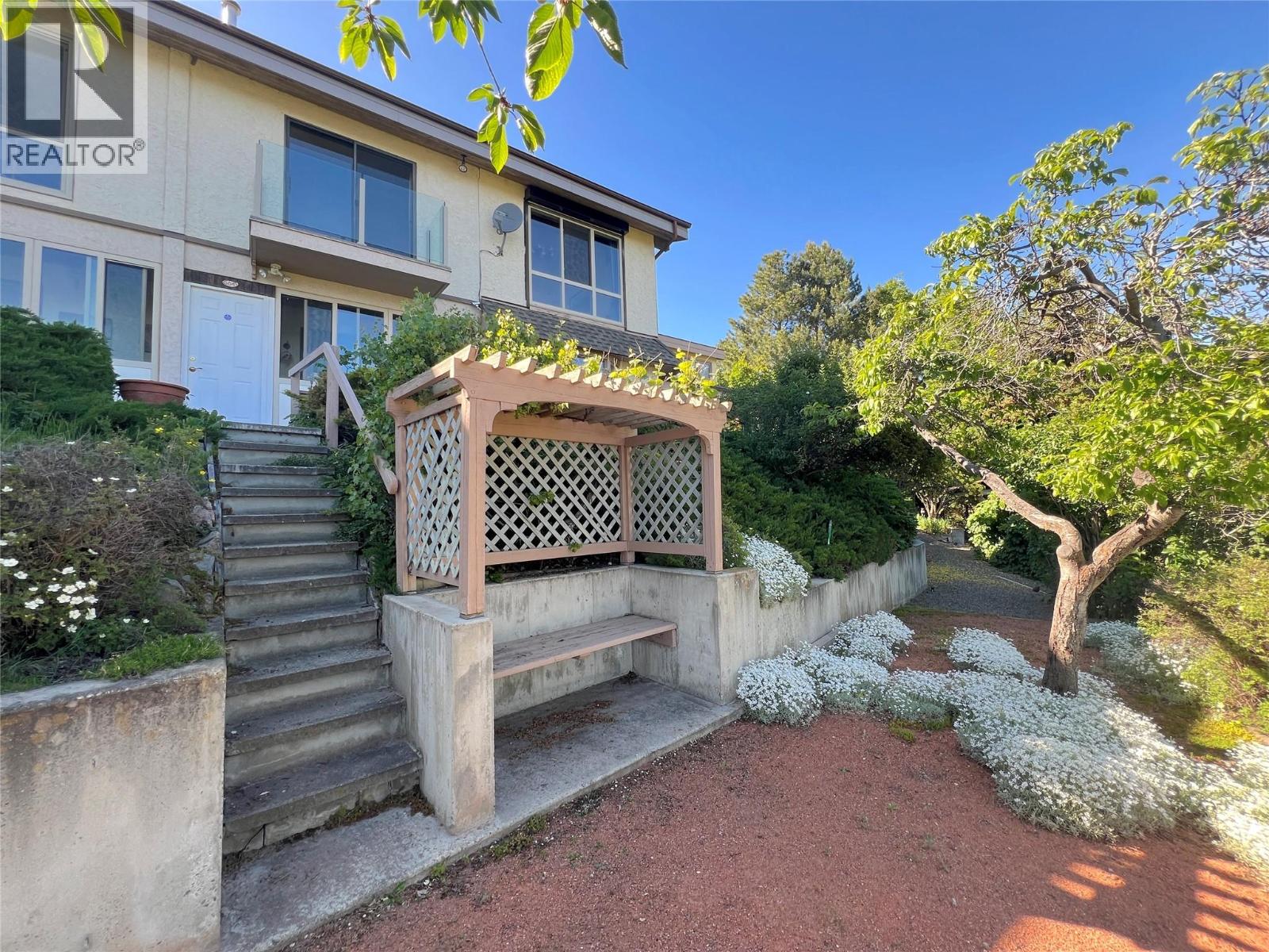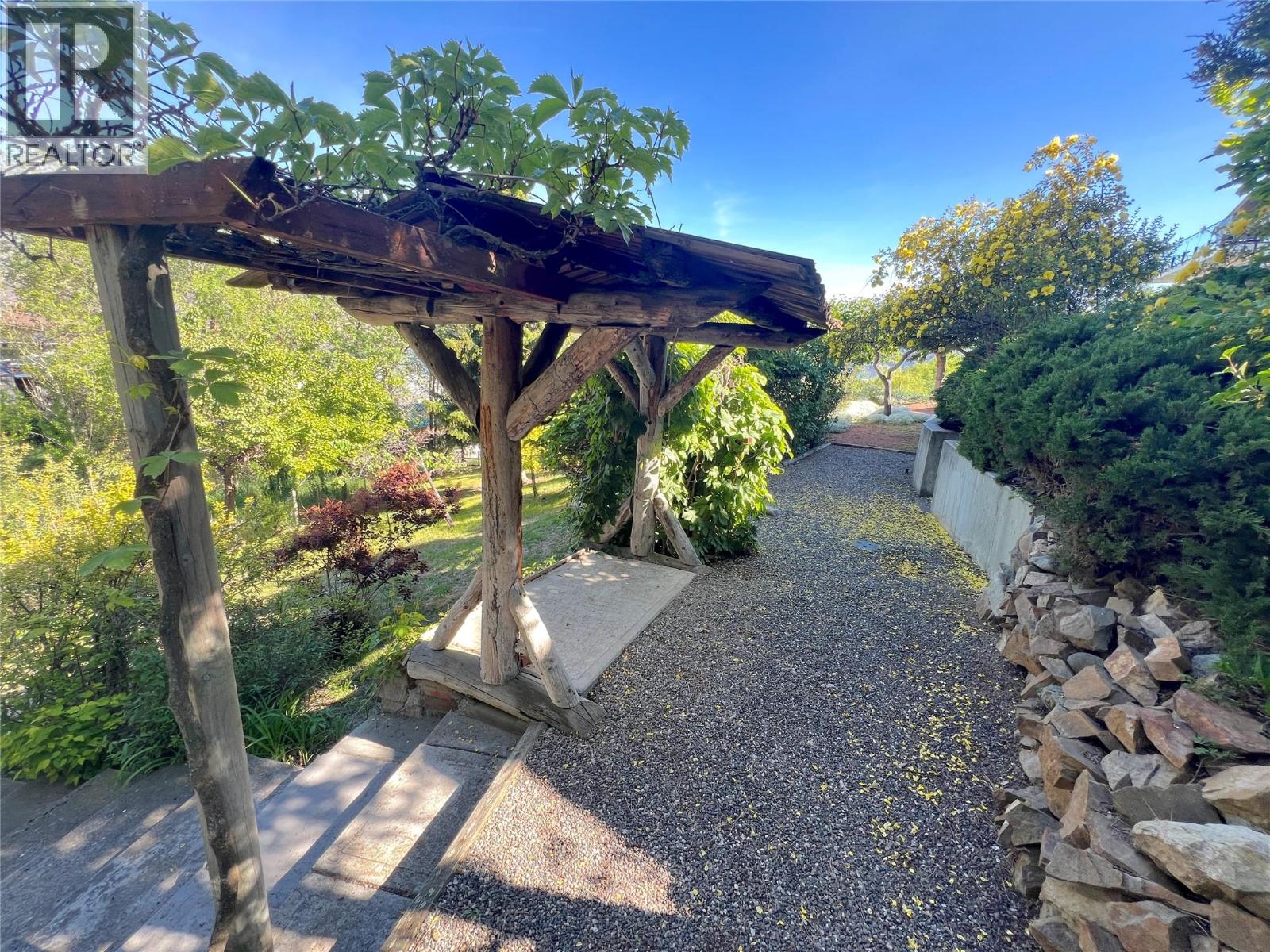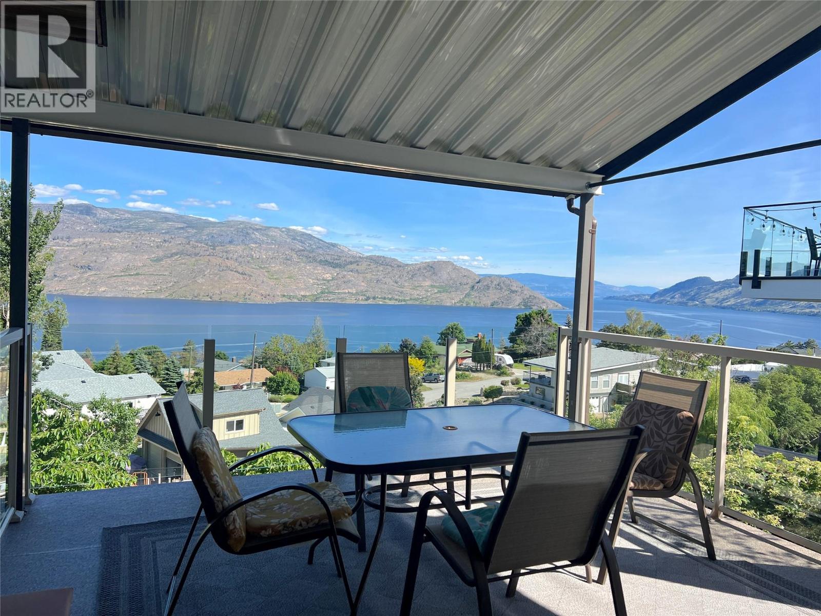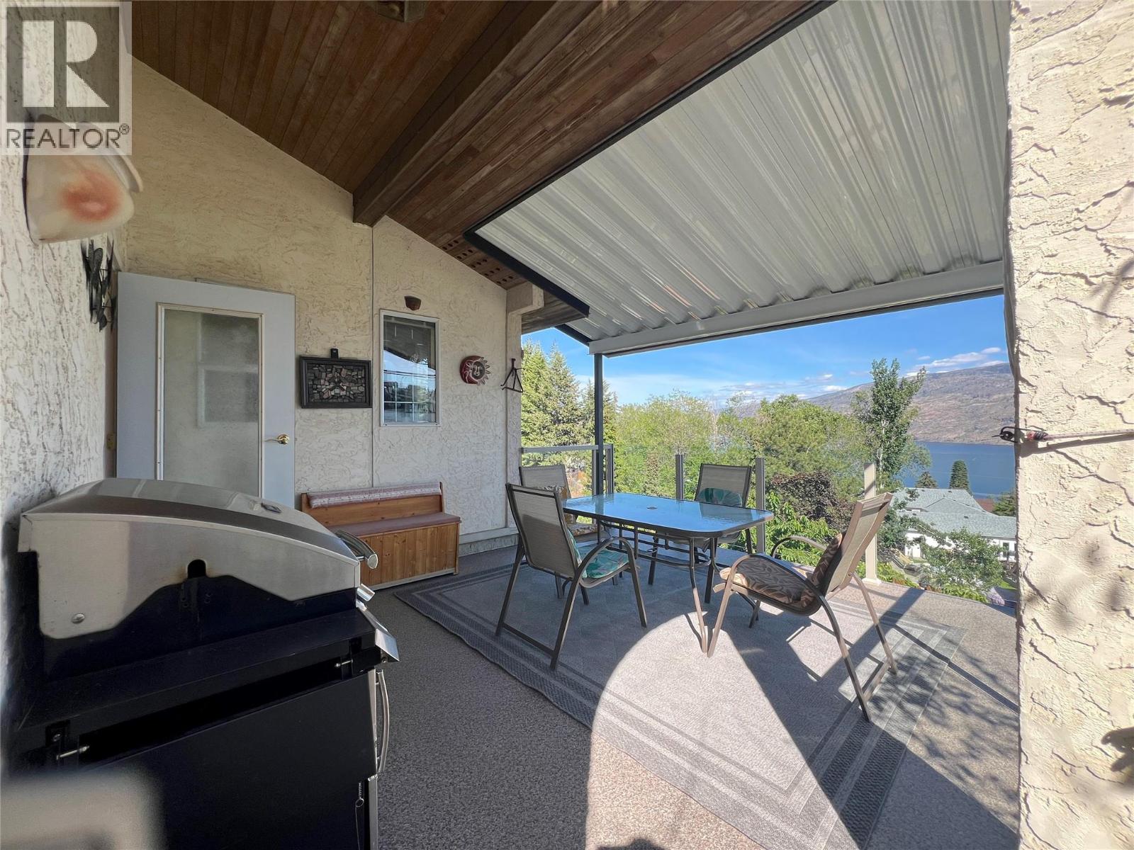 Great lake views looking south towards Penticton. No step rancher walk out with vaulted ceilings, beams and archways & stained glass accents. Well cared for home with pride of ownership and updates over the years, recently new hotwater tank and new air conditioning. There is a private lower side yard gathering area plus the backyard is fully terraced and landscaped with fruit trees and gardens. Closed in court yard at the front of the house for privacy and parking for RV or boat. Parking out front along the road as well. Great neighbourhood on school bus route so plowed first in the winter. That rare combination of a flat driveway with lakeviews! (id:58842)