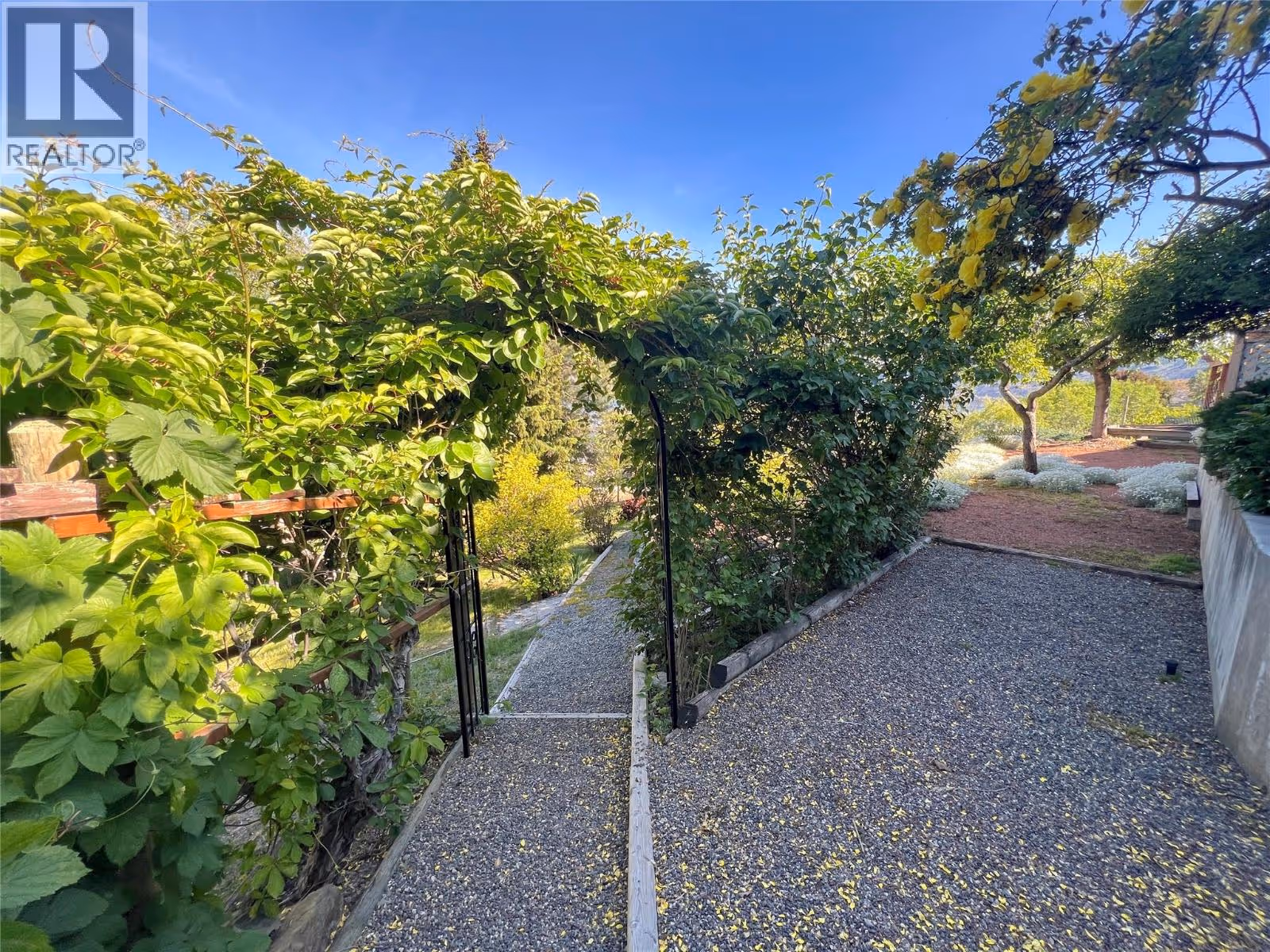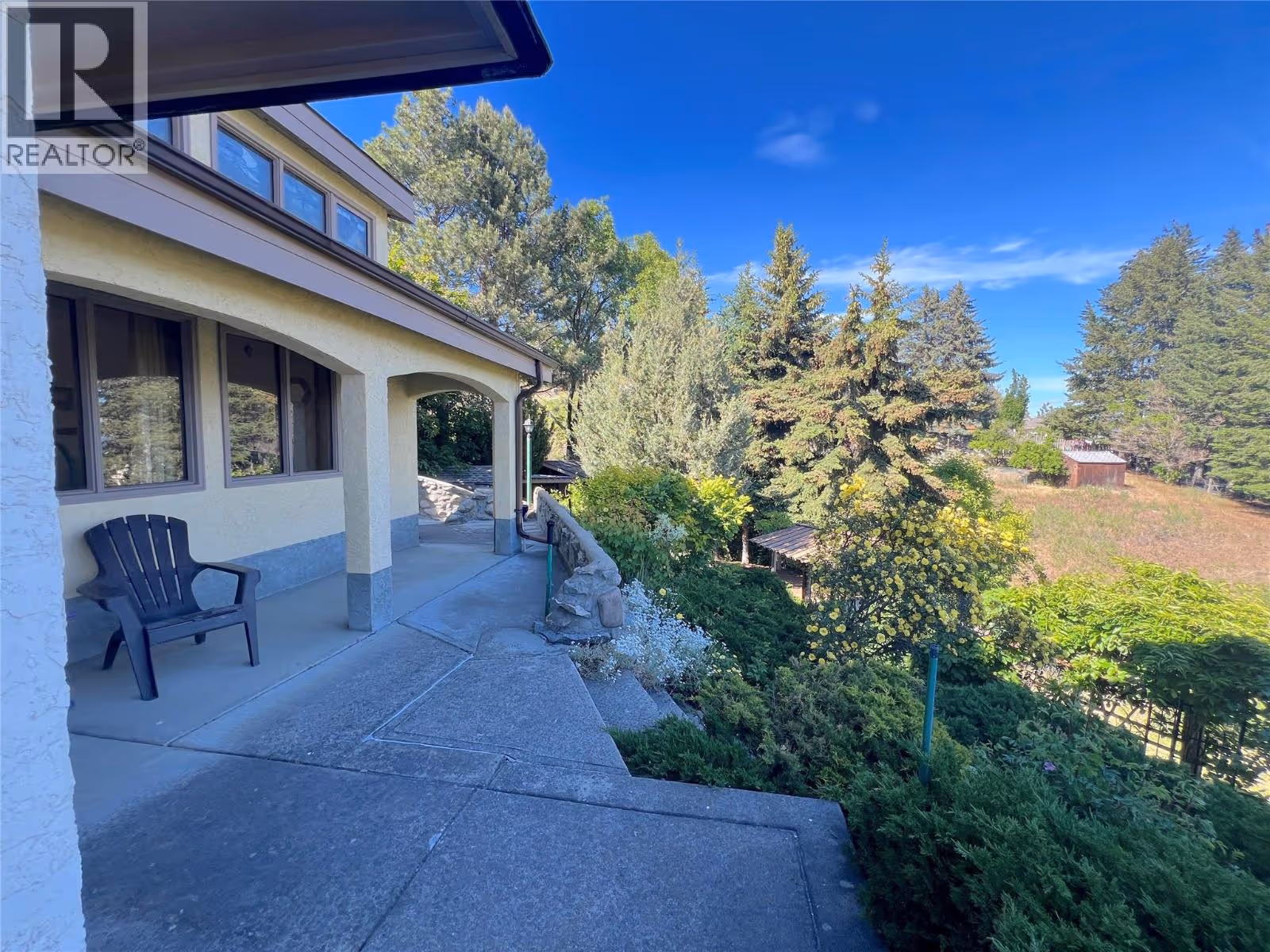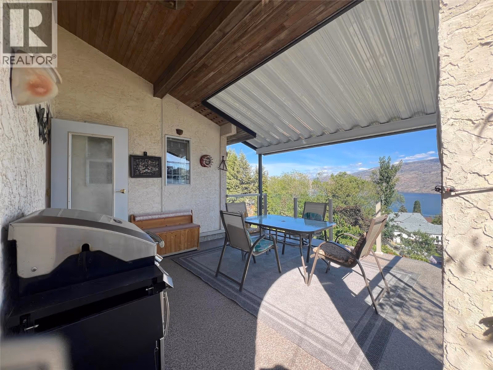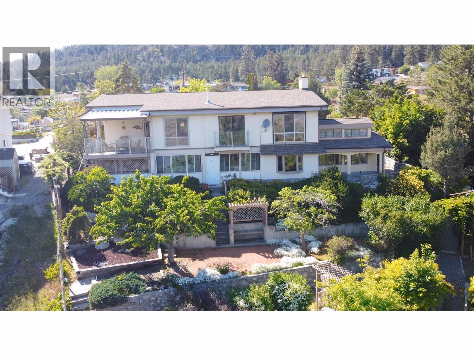 Great lake views looking south towards Penticton. No step rancher walk out with vaulted ceilings, beams and archways & stained glass accents. Well cared for home with pride of ownership and updates over the years, recently new hotwater tank and new air conditioning. There is a private lower side yard gathering area plus the backyard is fully terraced and landscaped with fruit trees and gardens. Closed in court yard at the front of the house for privacy and parking for RV or boat. Parking out front along the road as well. Great neighbourhood on school bus route so plowed first in the winter. That rare combination of a flat driveway with lakeviews! (id:58842)