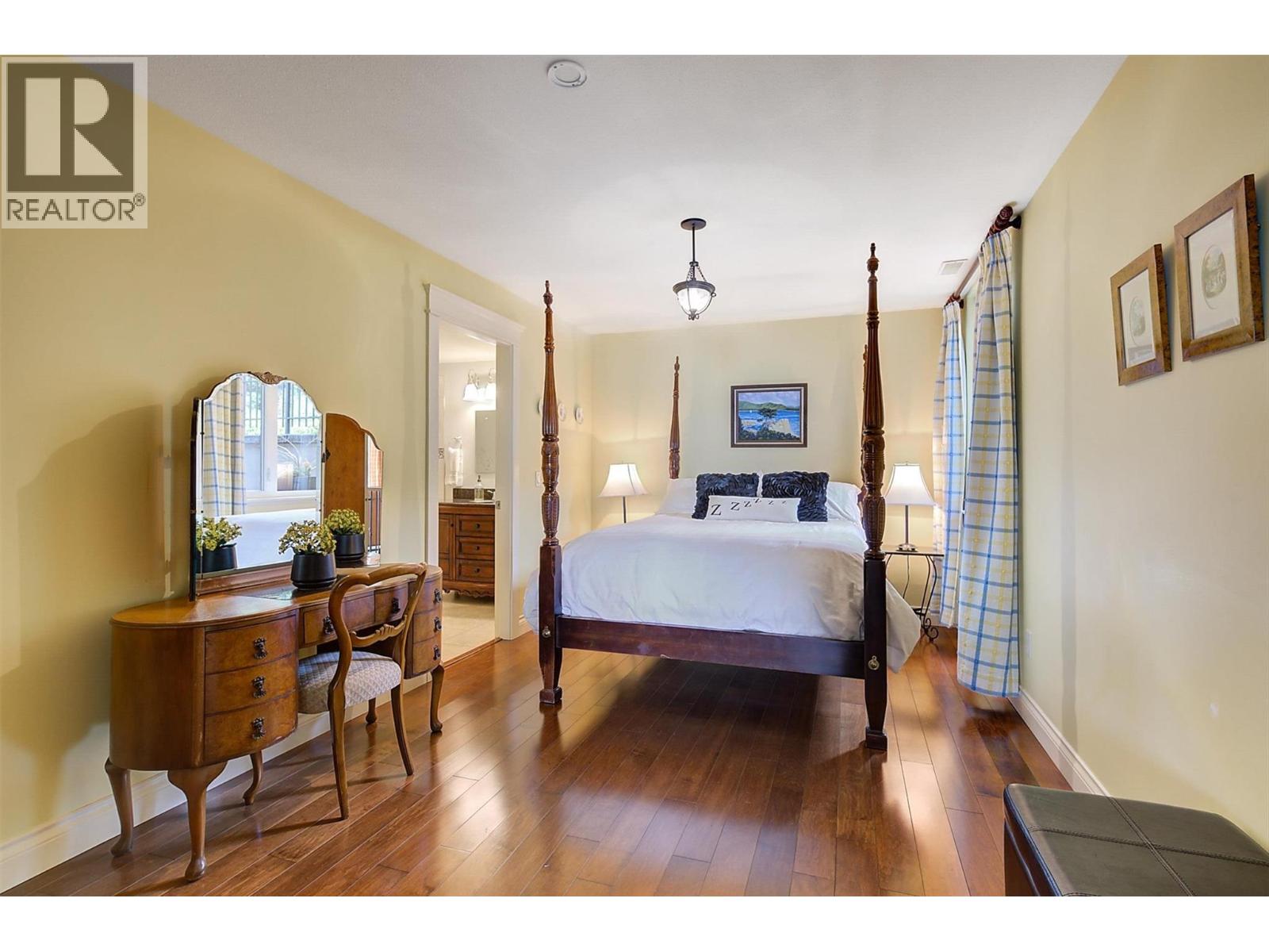 Positioned in one of the Okanagan's few vantage points with uninterrupted views to the illuminated skyline of downtown Kelowna, this lakeshore property delivers a visual experience that is both rare and unforgettable. Located just minutes north of the Kelowna Bridge, the home offers exceptional convenience while maintaining the privacy and tranquility of a quiet West Kelowna lakeshore setting; a balance that is increasingly difficult to find. Custom-built in a timeless French Country style, the residence feels warm, distinctive, and inviting. Oversized windows on all levels were intentionally designed to frame the lake and city views, ensuring the water remains a constant backdrop throughout the home. With approximately 3,800 square feet, 6 bedrooms, and 5 bathrooms, the layout is ideally suited for hosting family and guests, including multiple ensuite bedrooms and a private lower-level suite that walks out to a hot tub and putting green. The open-concept kitchen anchors the main living area beneath 10-foot ceilings and a statement fireplace, featuring a large pantry, dual ovens, gas range, and custom maple cabinetry. A flat grassy lakeside area with approximately 70 feet of direct waterfront, a beach house, and a substantial dock deliver true, usable lakefront living. Exceptional parking and storage round out the offering with a double garage, four-car carport, RV parking, workshop, and ample storage — features seldom found together on the lake. (id:58842)