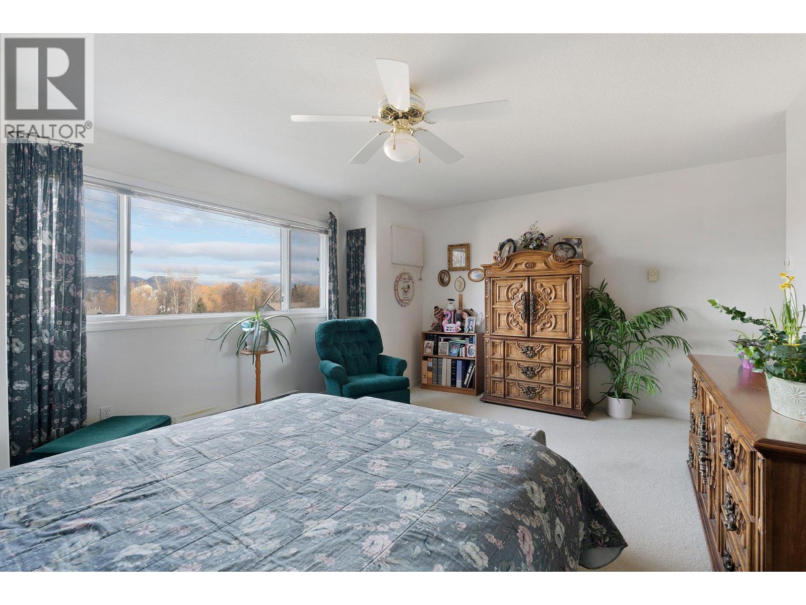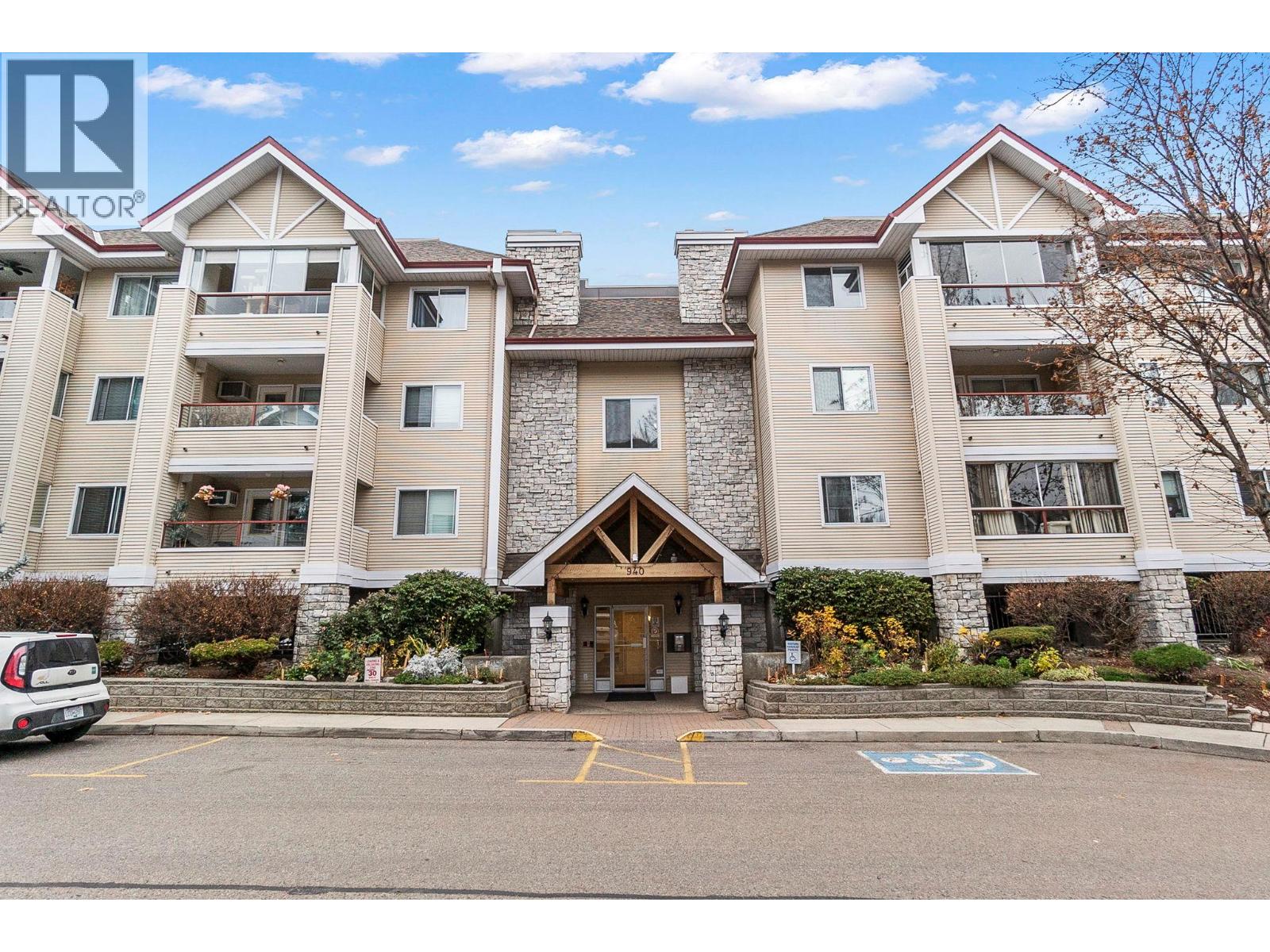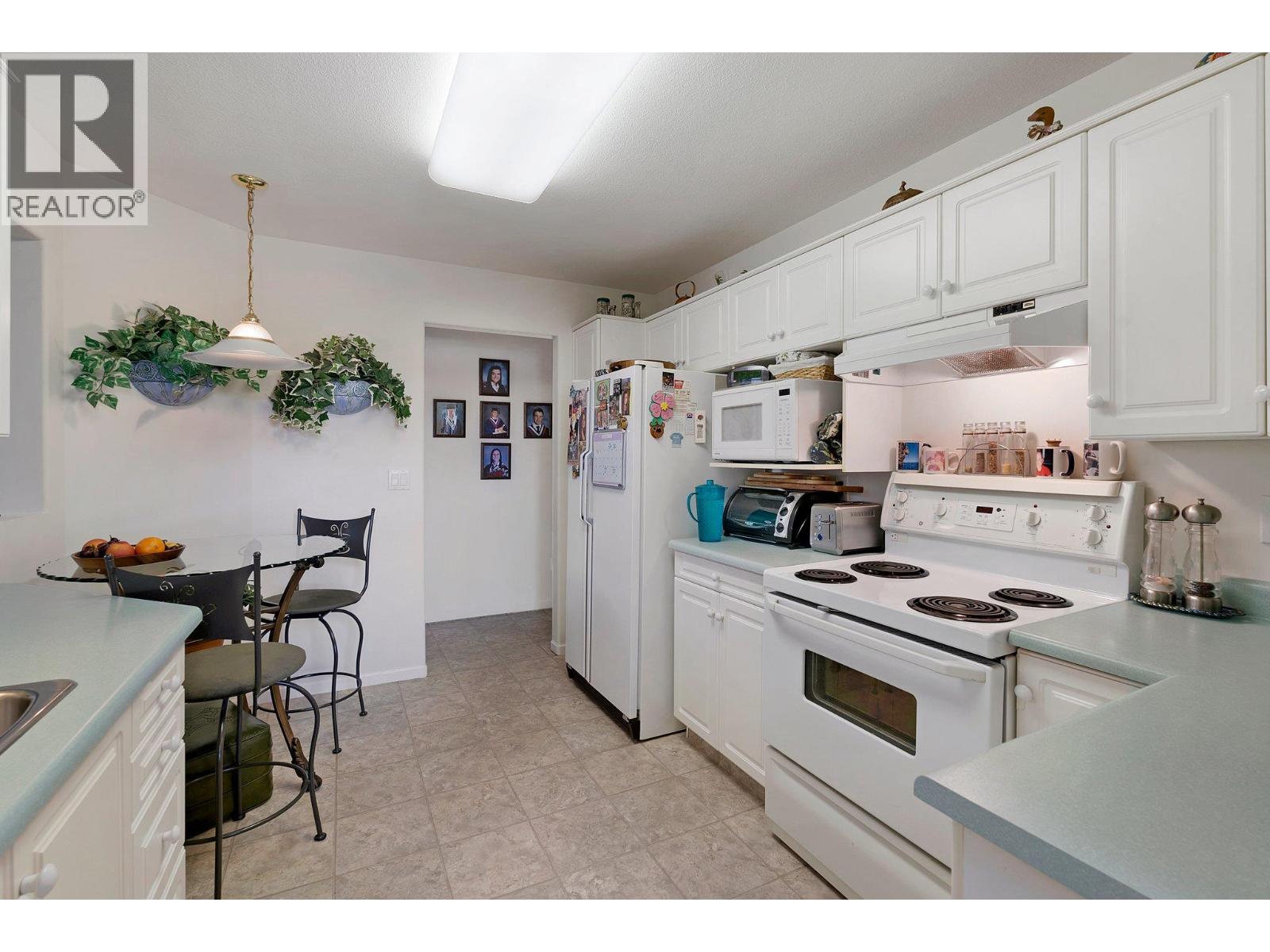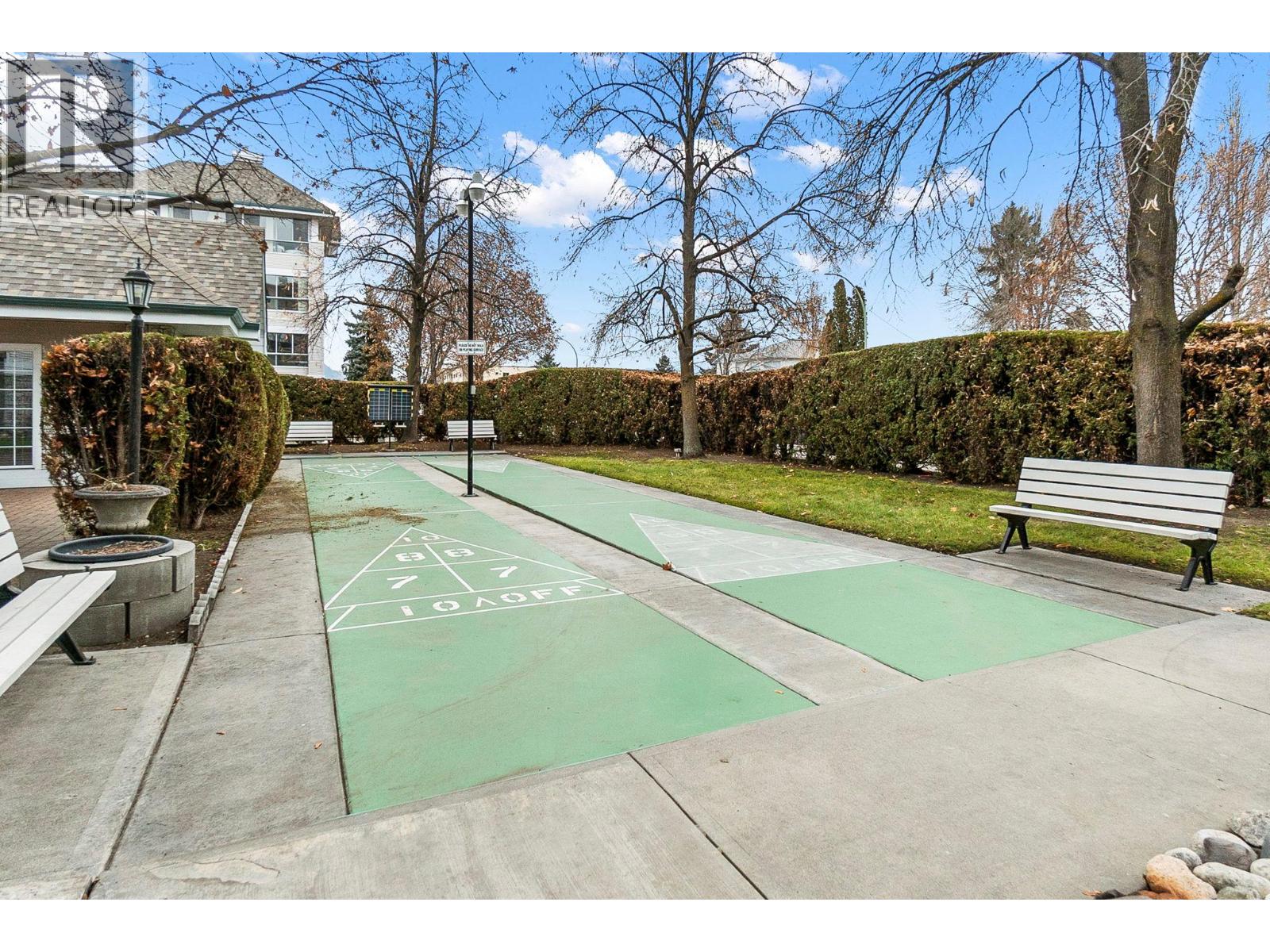 Top Floor Corner Unit. Vaulted ceilings in the living room and dining room, fireplace, very open and bright. Large primary bedroom with 4 pce ensuite and oversized walk-in closet. The second bedroom is next to a full bathroom separate from the primary bedroom. The kitchen has room for a table and two chairs. Two wall air- conditioners. The club house is very comfortable and has a pool table and shuffleboard, big screen TV, kitchen. There is a guest suite and gym. Outside is a BBQ area and gardening plots. Just a short walk to shops, restaurants and the Capri Mall. Secured parking plus a workshop. Pets: one dog 14 inches at shoulder or one cat. (id:58842)