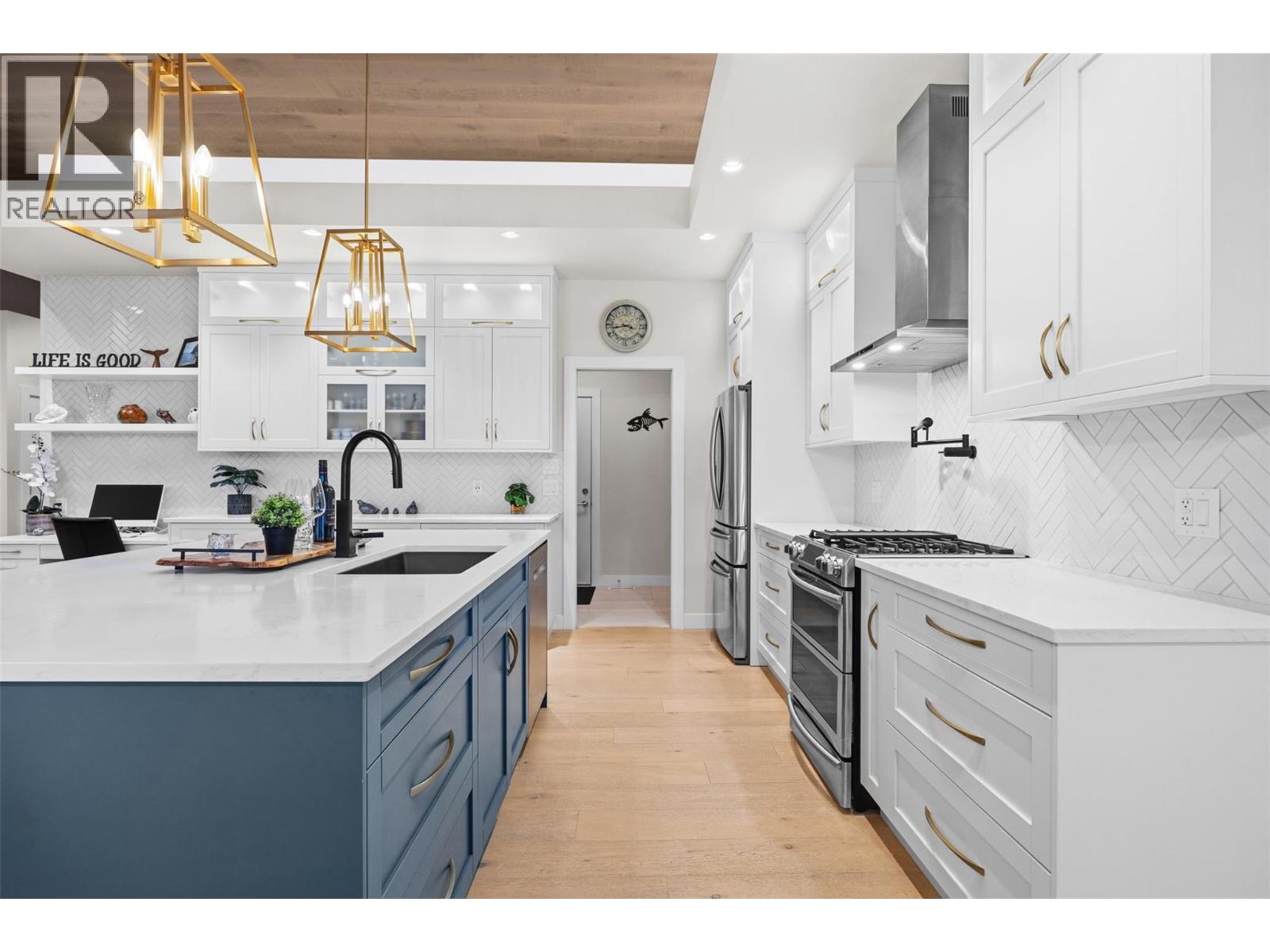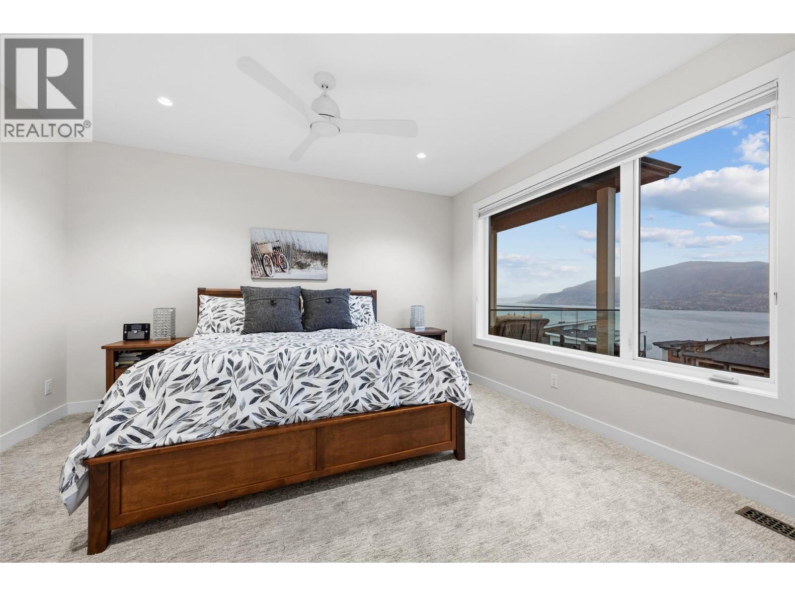 Experience luxury Okanagan living in this stunning Lakestone residence, perfectly positioned on a rare extra-wide lot with unobstructed 180-degree lake views. This 6-bed, 4-bath home showcases a bright, open-concept design with a main-level primary suite and expansive view windows equipped with power blinds. Enjoy year-round indoor–outdoor living in the beautifully landscaped, irrigated yard or on the oversized covered deck featuring motorized Phantom screens. A dream for car enthusiasts, the property offers a large flat driveway and an impressive 4-car heated garage complete with an RV bay (12.5' ceilings, 31.5' depth), water bib, dedicated power, EV charger, and durable epoxy flooring. The walkout lower level is designed for entertaining, offering a spacious family room, a proper wet bar, and a private hot tub patio overlooking the lake. Located in the desirable Benchlands community, this home sits on a quiet no-through road with generous spacing between friendly neighbouring properties. Residents enjoy quick access to YLW, shopping, scenic trails, a dog park, a bike park, and the award-winning Lakestone Club amenities, which include pools, fitness centres, tennis and pickleball courts. Several renowned wineries are just minutes away, completing the exceptional Okanagan lifestyle this property delivers. (id:58842)