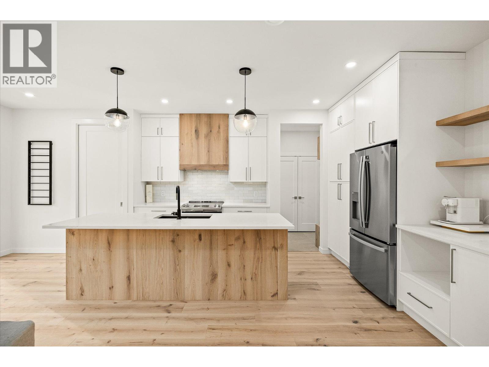 Welcome to this beautifully crafted brand-new home in The Orchards, one of Kelowna’s most beloved new family communities. The backyard extends beyond the fence line into a protected natural area, creating a quiet, private backdrop where kids can play & evenings feel calm & connected to nature. Just steps from DeHart Park & close to elementary, middle & high schools, as well as the Shops at The Ponds, this is a location designed for an easy, family-focused lifestyle. Inside, the main level is bright & welcoming with an open-concept living, dining & kitchen space made for gathering. A classic palette of warm wood tones, crisp white cabinetry, black accents & stainless-steel appliances feels timeless & inviting. Hardwood flooring flows throughout, complemented by striking tile backsplashes in the kitchen & in every bathroom. A practical mudroom with storage off the double garage & a spacious main-floor laundry—ideal for extra pantry space—add thoughtful everyday functionality. Upstairs, you’ll find three bedrooms plus a loft-style family area, perfect for movie nights or homework time. The primary suite is a true retreat, featuring dual vanities, a luxury walk-in shower & his-and-hers closets. The unfinished lower level invites your vision—create a legal one-bedroom suite, guest space, gym, office, or family room. With a separate side entrance and plumbing & wiring already in place, the builder can customize the space to suit your lifestyle for an additional cost. Come & look! (id:58842)