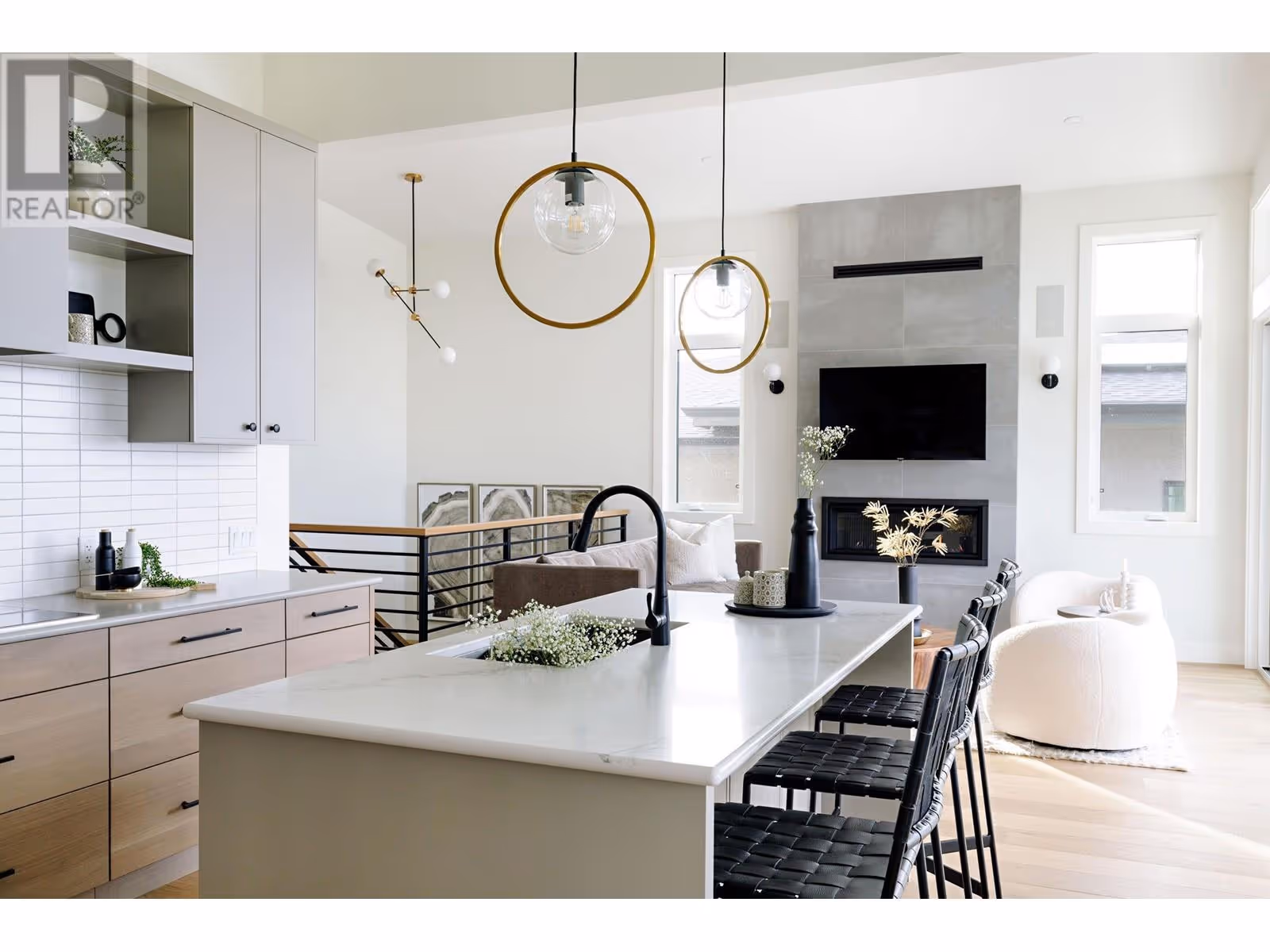 This stunning 3-bedroom 2.5 bath showhome built by Kimberley Homes is move-in ready. This modern and spacious home designed in collaboration with Interior Designer Jamie Banfield, provides a luxurious living experience with it's elegant interior and panoramic vistas. The exterior modern barrel-roof design invites guests into your grand foyer with 12' ceilings. This barrel roof feature is carried through the main floor, with the gourmet kitchen ceilings peaking at 18 feet. Wake up to the picturesque sites of the city skyline, tranquil lake views, and rolling valley right from your bedroom window. Experience the epitome of comfort and sophistication in this dream showhome. (id:58842)