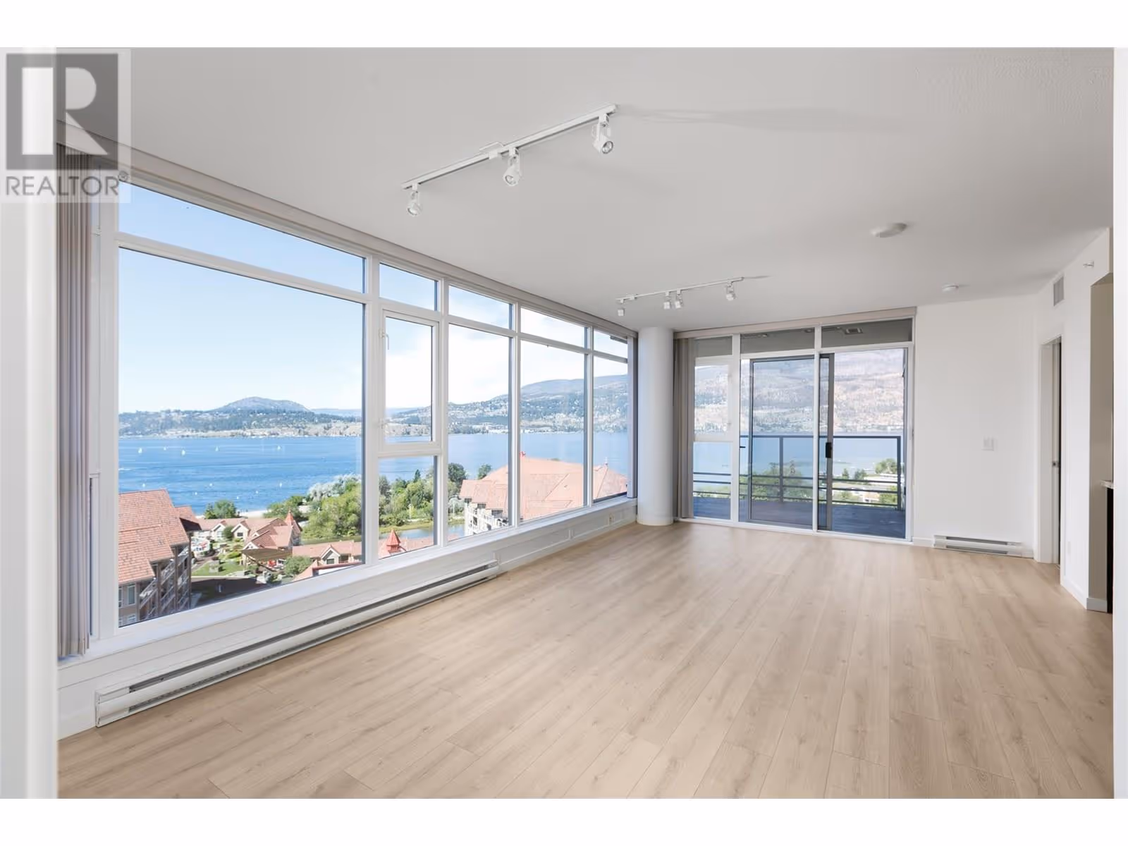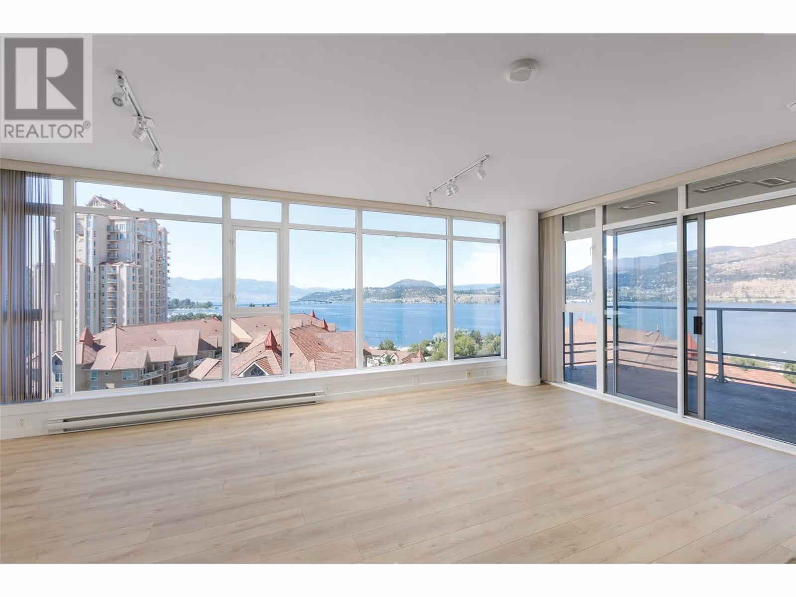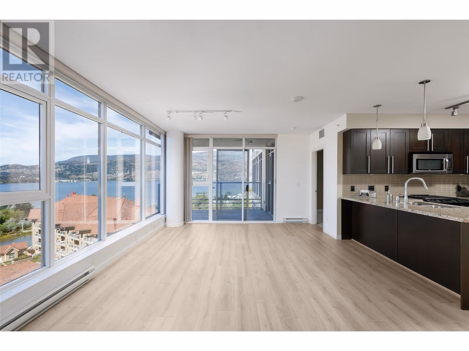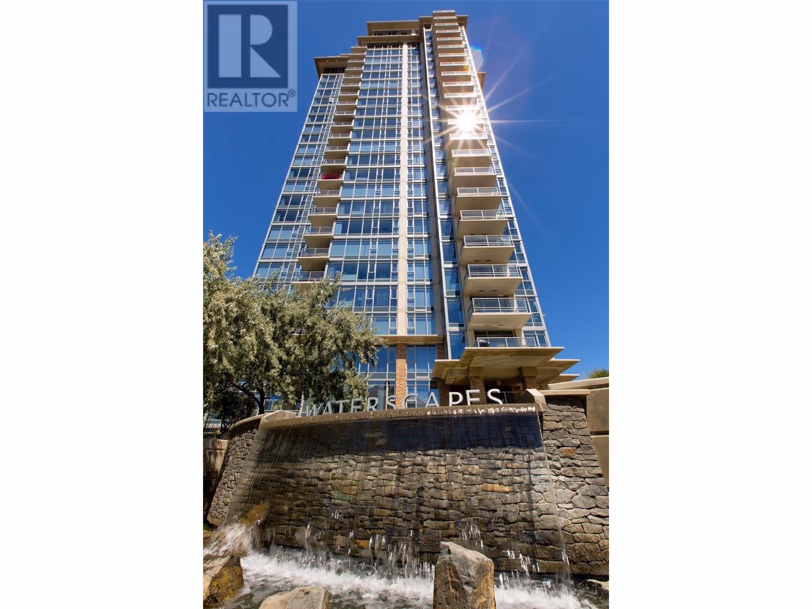 LIVE/WORK HIGH ABOVE the CITY, amidst expansive WALLS of GLASS, in the best LOCATION in WATERSCAPES’ SKYE building! Showcasing BREATHTAKING, UNOBSTRUCTED VIEWS of the BRIDGE, LAKE, MTNS & CITY, this split 2BD+DEN/2BA suite has TWO PARKING STALLS! Finishings include Shaker Cabinets, GRANITE counters, GAS RANGE & SS APPLS. Updates include NEW Flooring 2023, W/D 2024, and Refrigerator 2021! PRIMARY BDRM features spacious ensuite with BATH, SHOWER & DBL SINKS, as well as a generous W-IN closet. 2ND BD overlooks DECK with same spectacular LAKE views, a 2nd FULL BATH and DEN, offering the flexibility of an office or in-unit STG space, although a STG locker is included in parkade. Enjoy morning coffee or evening glass of wine while soaking up STUNNING VIEWS on the spacious covered balcony, providing a serene retreat in the heart of the city. Located in a sturdy CONCRETE building, flooding open-concept living spaces with natural light, with a sophisticated lobby and secured entry to each floor, this building has access to LUXURIOUS onsite amenities including: pool, 2 hot tubs, full equipped GYM, CLUBHOUSE with LOUNGE, KITCHEN, & BILLIARD tables, meeting rooms and several guest SUITES! Great location steps to the beach, bird sanctuary, Prospera Place ARENA, local dining, Rotary ARTS Centre and the CULTURAL DISTRICT! RENTALS: month to month PETS: 2 dogs, 2 cats or 1 of each. No vicious breeds. Simply put, one of the best valued units in the building! (id:58842)