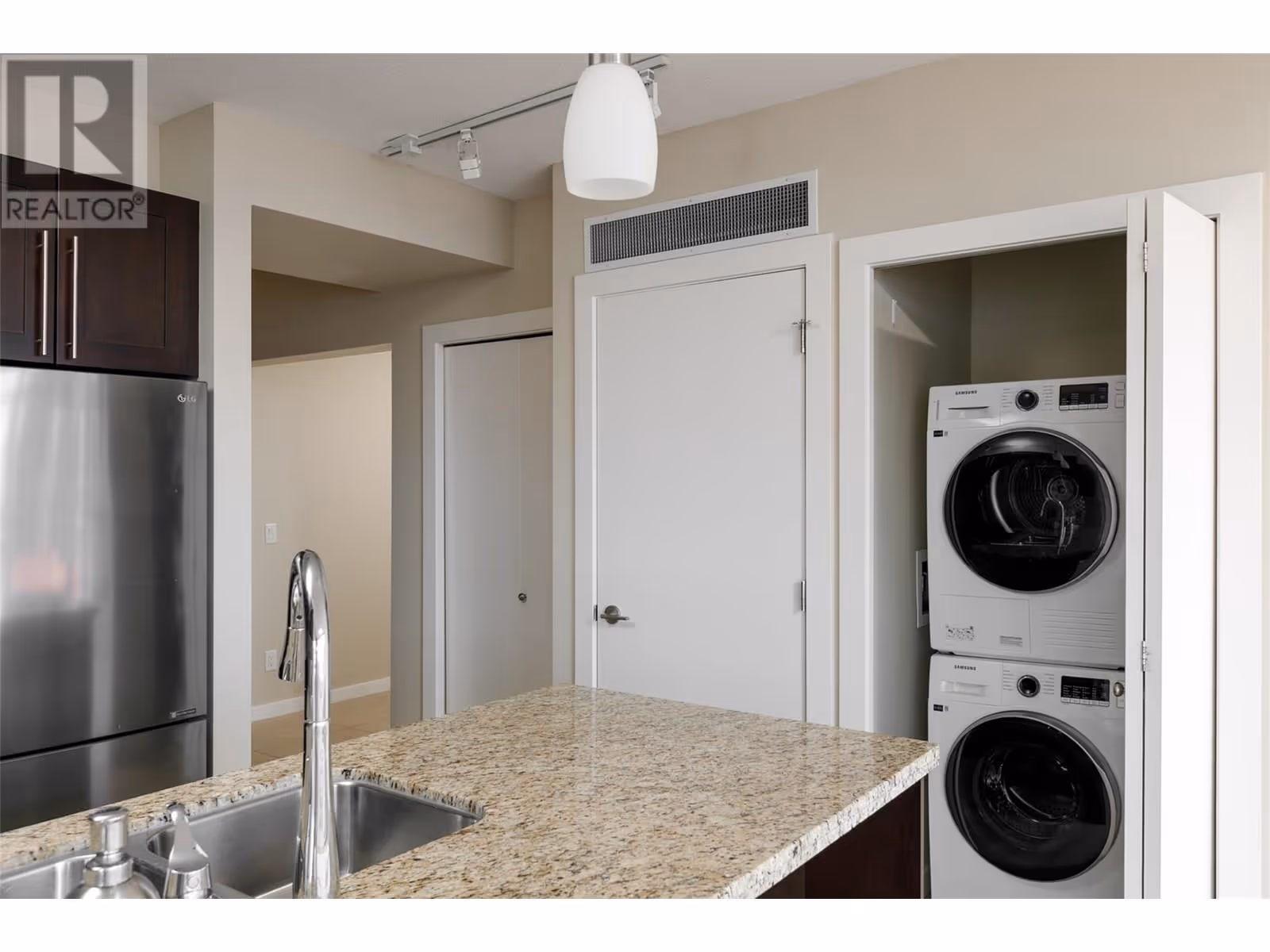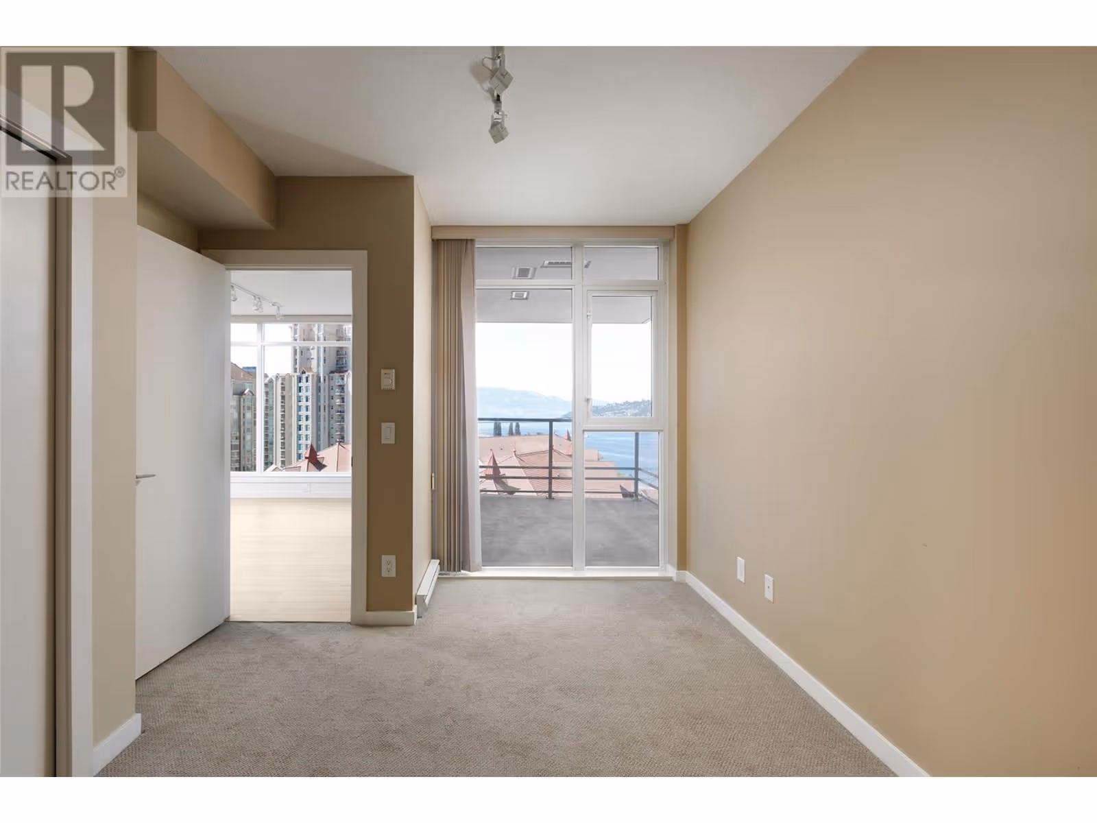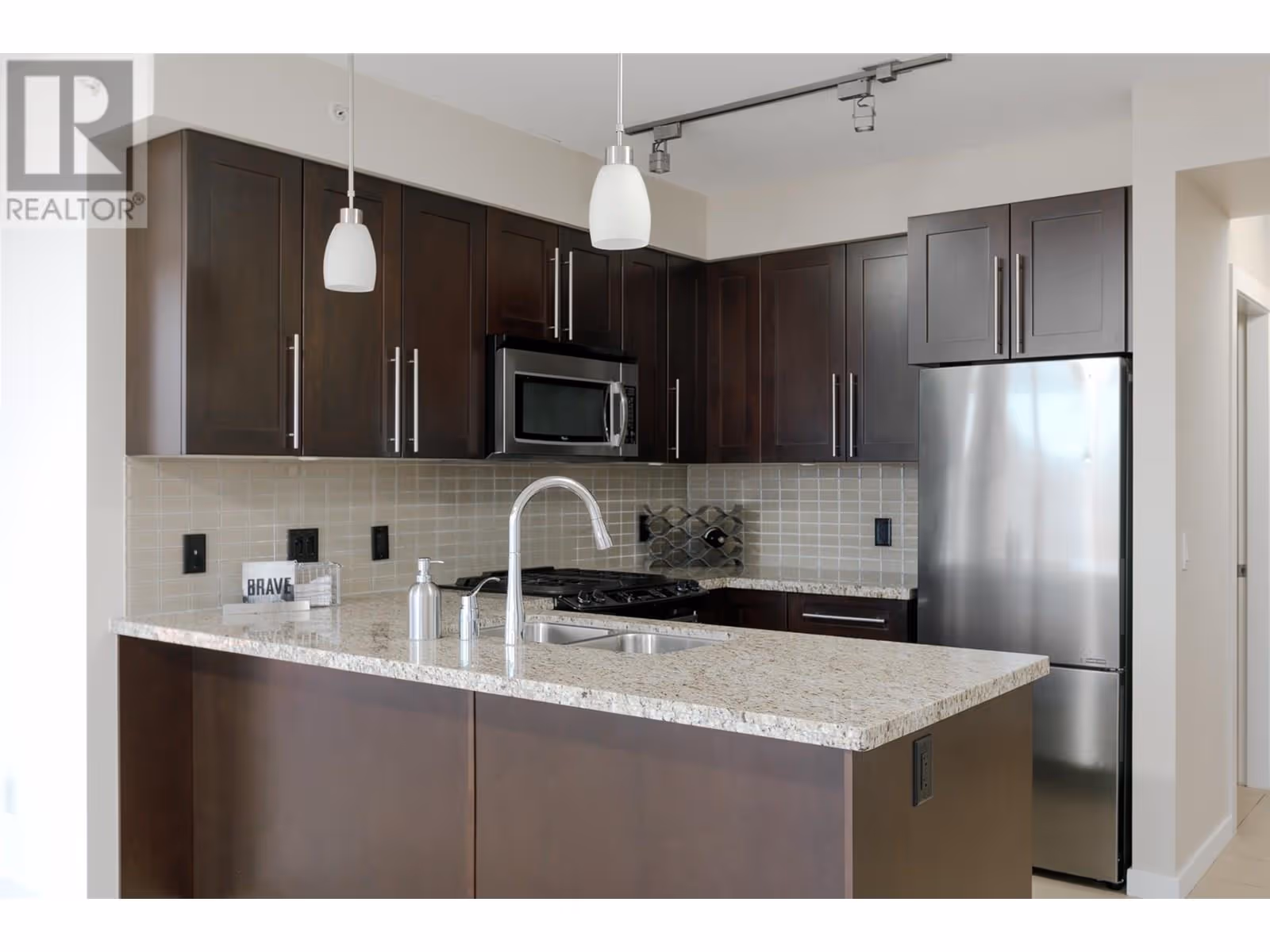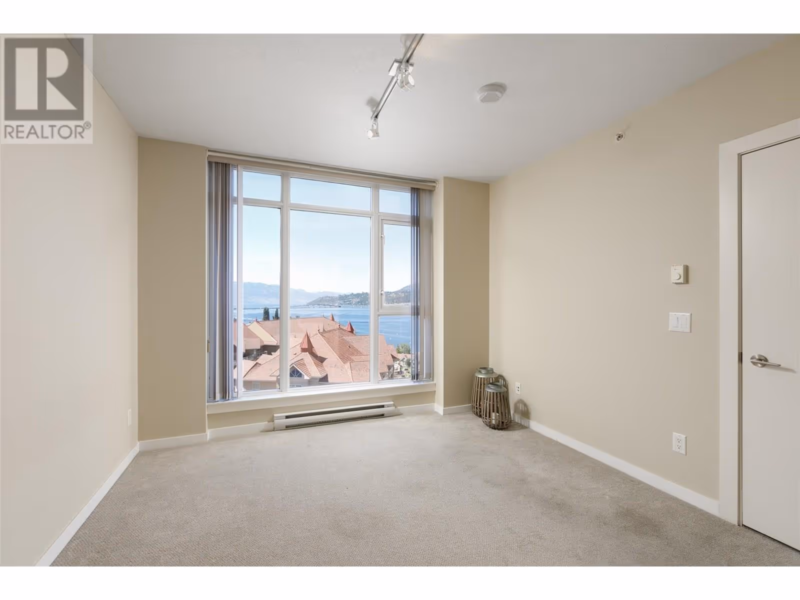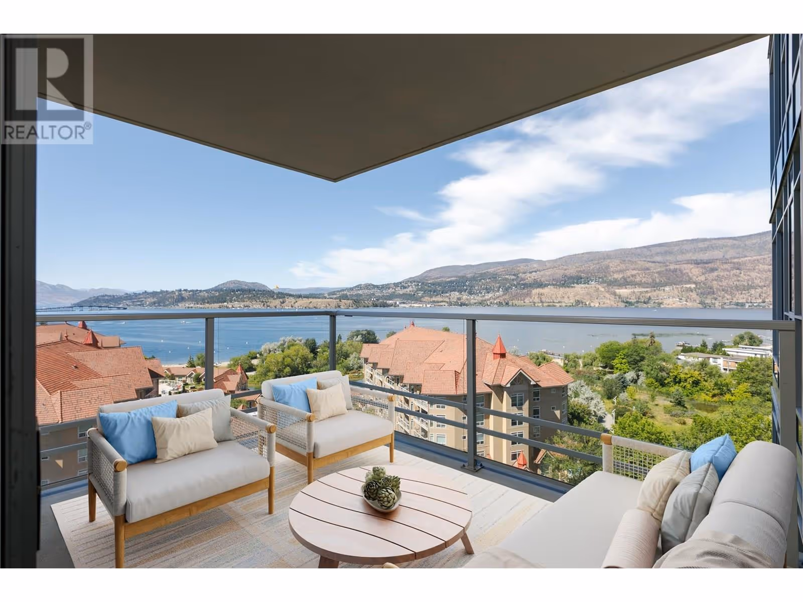 LIVE/WORK HIGH ABOVE the CITY, amidst expansive WALLS of GLASS, in the best LOCATION in WATERSCAPES’ SKYE building! Showcasing BREATHTAKING, UNOBSTRUCTED VIEWS of the BRIDGE, LAKE, MTNS & CITY, this split 2BD+DEN/2BA suite has TWO PARKING STALLS! Finishings include Shaker Cabinets, GRANITE counters, GAS RANGE & SS APPLS. Updates include NEW Flooring 2023, W/D 2024, and Refrigerator 2021! PRIMARY BDRM features spacious ensuite with BATH, SHOWER & DBL SINKS, as well as a generous W-IN closet. 2ND BD overlooks DECK with same spectacular LAKE views, a 2nd FULL BATH and DEN, offering the flexibility of an office or in-unit STG space, although a STG locker is included in parkade. Enjoy morning coffee or evening glass of wine while soaking up STUNNING VIEWS on the spacious covered balcony, providing a serene retreat in the heart of the city. Located in a sturdy CONCRETE building, flooding open-concept living spaces with natural light, with a sophisticated lobby and secured entry to each floor, this building has access to LUXURIOUS onsite amenities including: pool, 2 hot tubs, full equipped GYM, CLUBHOUSE with LOUNGE, KITCHEN, & BILLIARD tables, meeting rooms and several guest SUITES! Great location steps to the beach, bird sanctuary, Prospera Place ARENA, local dining, Rotary ARTS Centre and the CULTURAL DISTRICT! RENTALS: month to month PETS: 2 dogs, 2 cats or 1 of each. No vicious breeds. Simply put, one of the best valued units in the building! (id:58842)