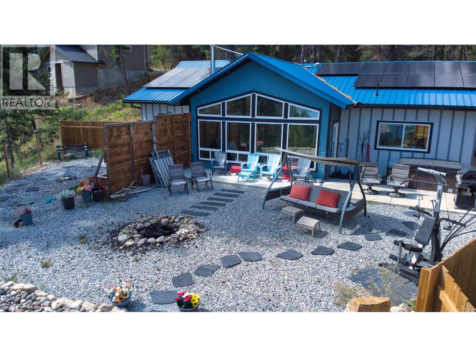Crown land, lake views, and net-zero living — all in one package! Nestled in the serene wilderness, 10795 Westshore Road offers the ultimate private country retreat with breathtaking valley and Okanagan Lake views. This 2020-built home sits on a 0.57-acre lot, surrounded by crown land forest for unmatched tranquility and privacy. Step inside and you’re greeted with sleek metallic epoxy floors and a bright, airy living space flooded with natural light from expansive south-facing windows. The kitchen with 97% quartz countertops will impress, while the cozy wood-burning fireplace creates a warm, inviting ambiance on cooler evenings and winter. For summer comfort, the home is equipped with three ductless A/C units. Outdoor living is just as impressive with a concrete patio with hot tub, and a fully fenced yard with xeriscaped landscaping, situated in the forest for a private oasis, perfect for entertaining or quiet relaxation. This home is also a true net-zero property, powered by 22 solar panels that drastically cut utility costs. It was engineered with fire-safe metal siding, a metal roof, hardie board accents and radiant in-floor heating. Add in a 200-amp service, 60-amp garage panel (EV/workshop ready), and a generator panel already set up, and you have a property that’s efficient, future-proof, and built to last. Blending modern sustainability, fire-smart construction, and luxury finishes, this is country living redefined. (id:58842)