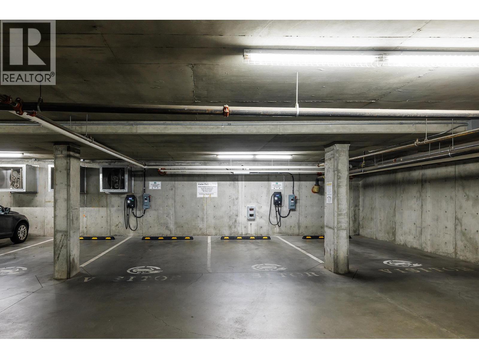 RARE! 2 secured Parking Stalls.! Most units only have one stall, huge demand to rent a parking stall! Imagine driving your boat from Okanagan Lake through the Grand Mariott Hotel boat lift/lock, and then slowly cruise in the lagoon to the boat slip. Boat slips are distributed each year by a lottery. WATERFRONT RESORT has at least 5 amenities. 2 levels parking, 2 electric vehicle inside secure charging stations, main level has large study/meeting room with washrooms. From carpark is a hallway to load your boat which can be parked in the lagoon at the lobby. Rental boat slips are controlled by City of Kelowna & Grand Mariott Hotel. 2nd level has a board room with fireplace, well-appointed modern gymnasium with washrooms, indoor pool with elevator access for handicap, plus hot tub & steam room. 3rd level has outdoor tennis/pickleball court, and outdoor pool with hot tub, & washrooms are just inside hall by the pool. Waterfront Resort has a great history of renting for many years as a quality vacation short term rental first choice! The BC Premier has hinted that the current ban on vacation short term Air BB rentals may be lifted. The opportunity is now to invest and hold and rent long term. This unit is so perfect for families to load and unload at the street, plus park inside securely. It's like living in your private home yet still enjoy all the amenities of the tower and the boat lagoon. (id:58842)