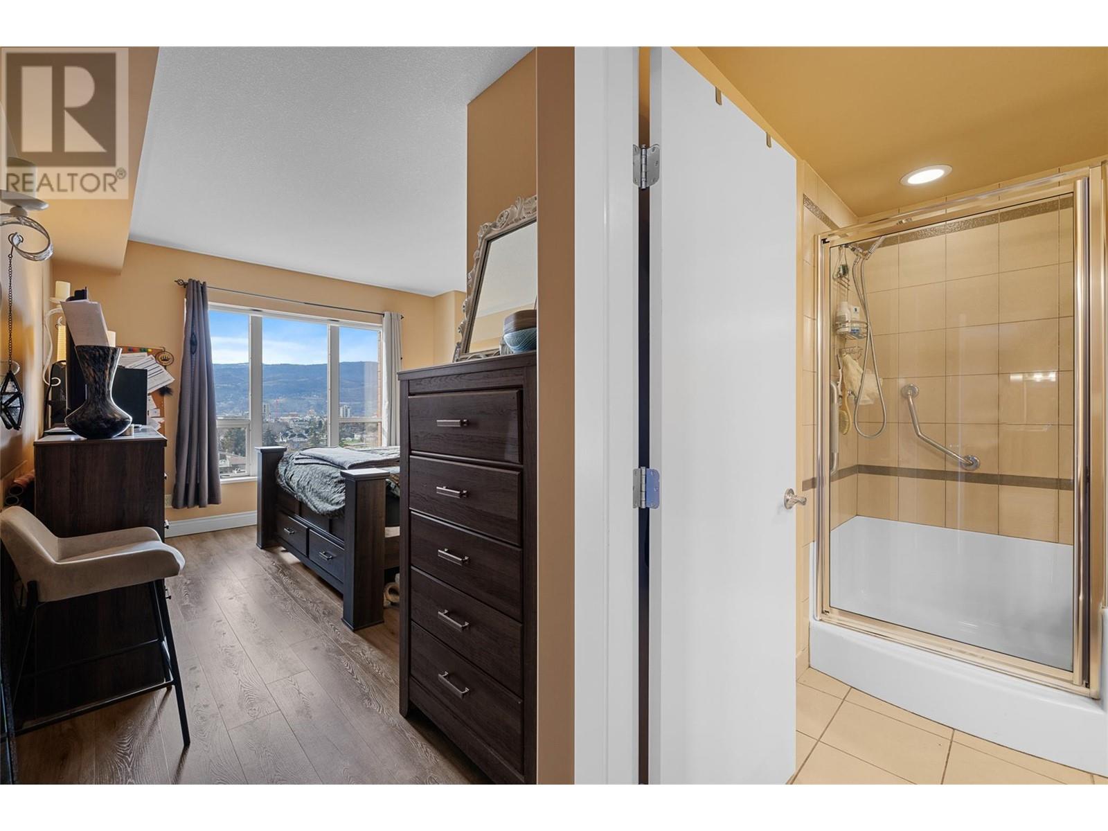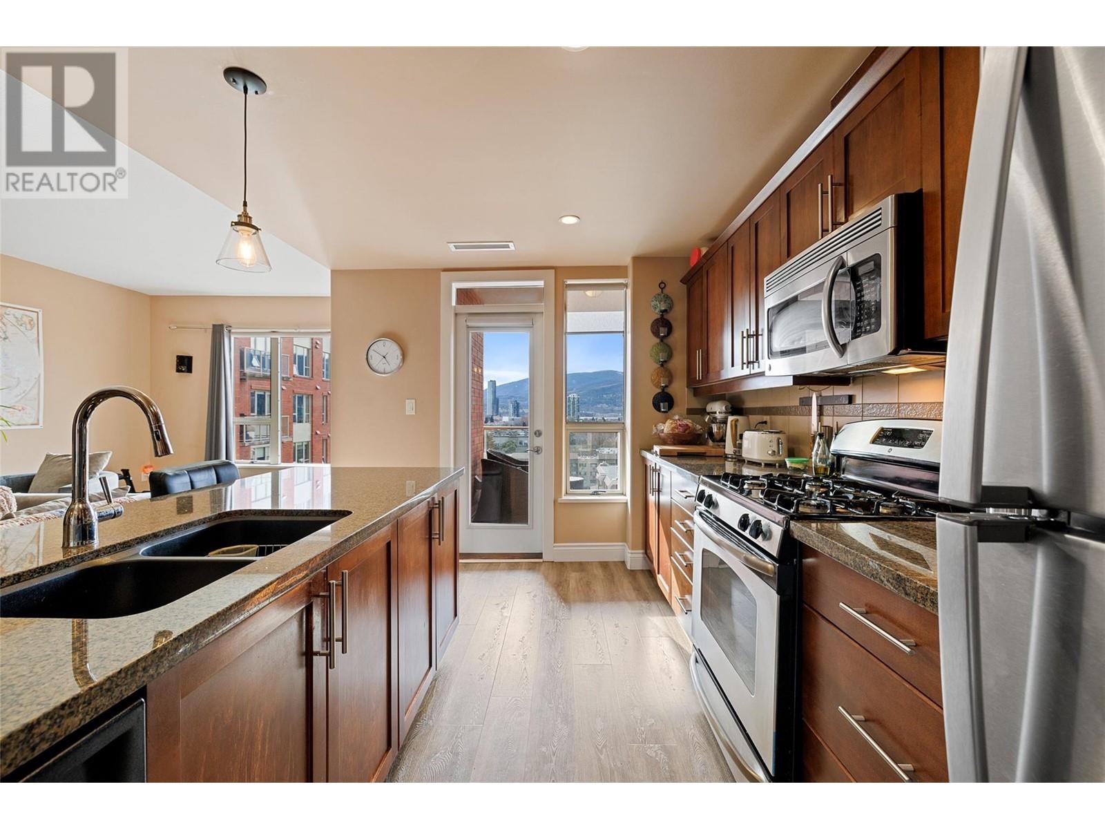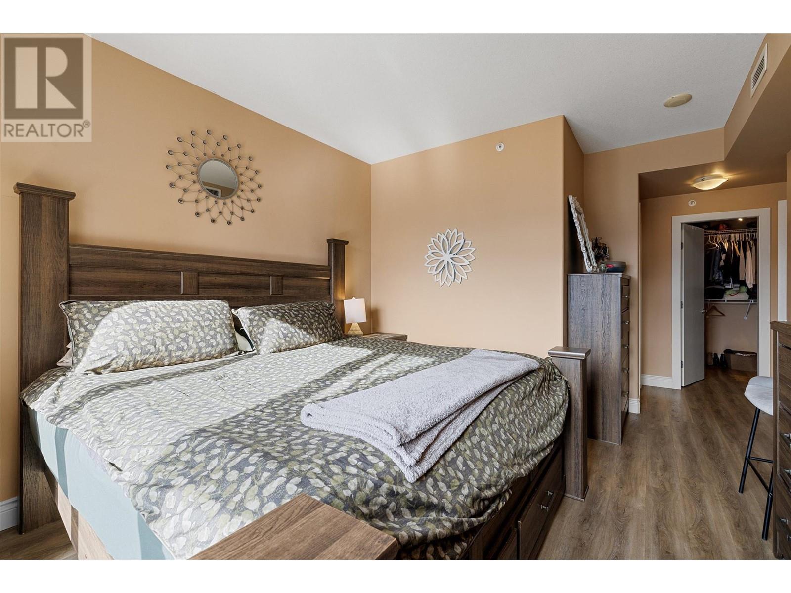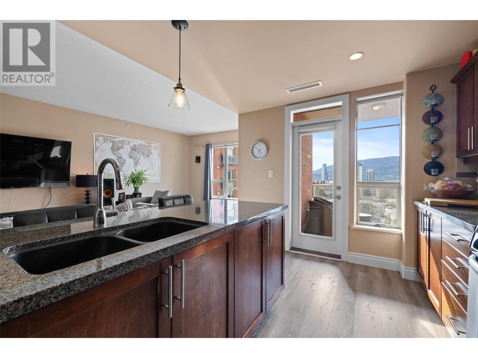 Experience vibrant urban living in this 2-bedroom residence featuring a split floor plan that includes a versatile open den, perfect for a home office. The spacious open-concept design includes a stylish kitchen with granite countertops, stainless steel appliances, and a gas stovetop. Enjoy lake and cityscape views from the generous living area, kitchen, and primary bedroom. The primary suite includes a walk-in closet and a 5-piece ensuite bathroom with a soaking tub, walk-in shower, and dual sinks. Step out onto your private covered balcony facing west, where you can bask in ample natural light. This exceptional unit also includes two secure underground parking spaces and a dedicated storage locker for additional storage needs. Discover the vibrant lifestyle at Centuria, which offers amenities such as an outdoor swimming pool, a hot tub, and a fully equipped fitness center. With grocery stores and various retail shops right at your doorstep and downtown just a leisurely bike ride or walk away, this location is perfect for those seeking both comfort and convenience. (id:58842)